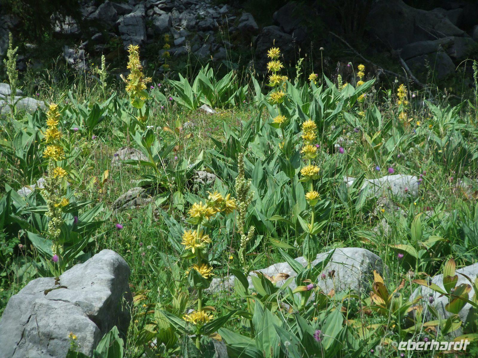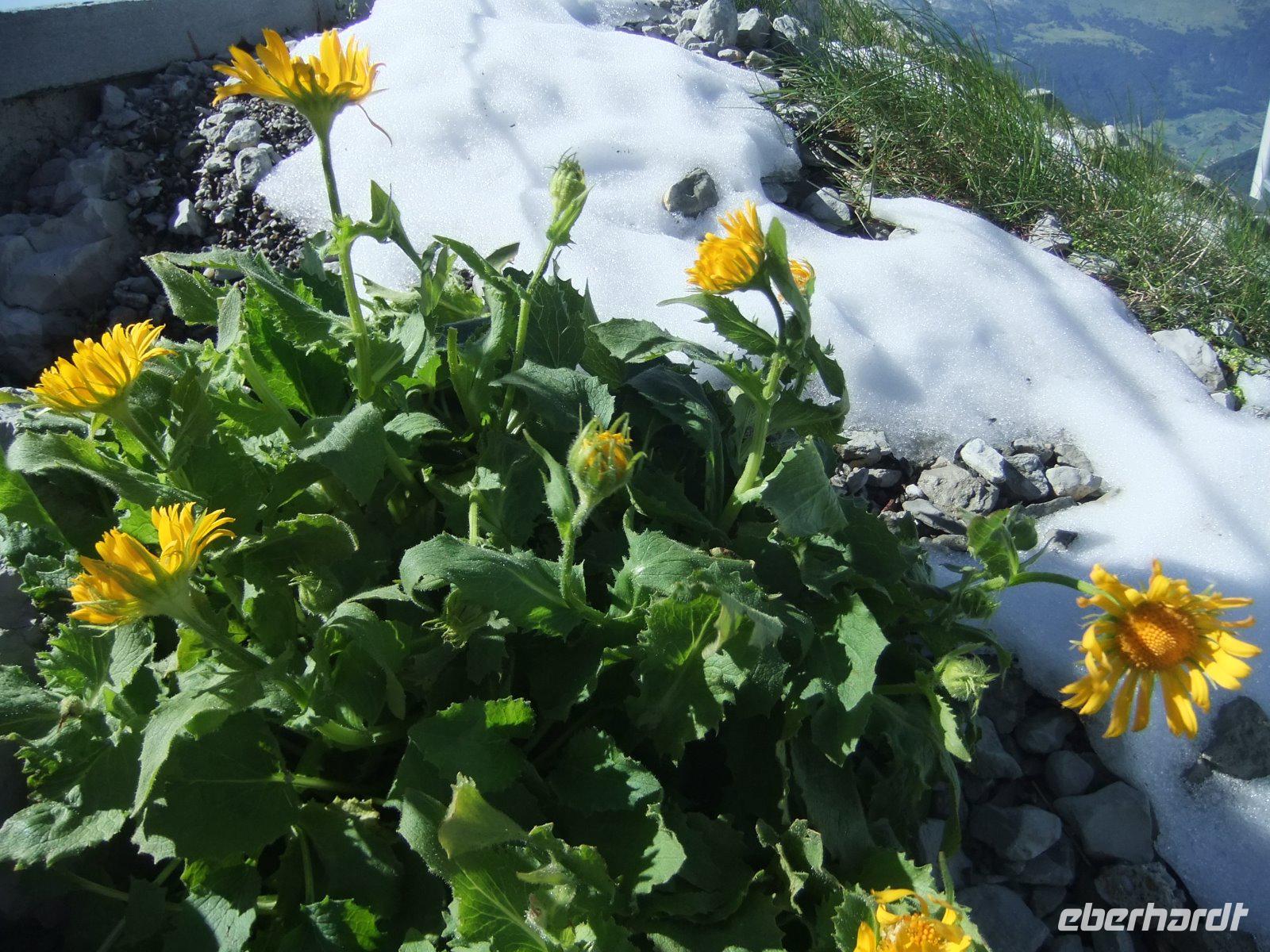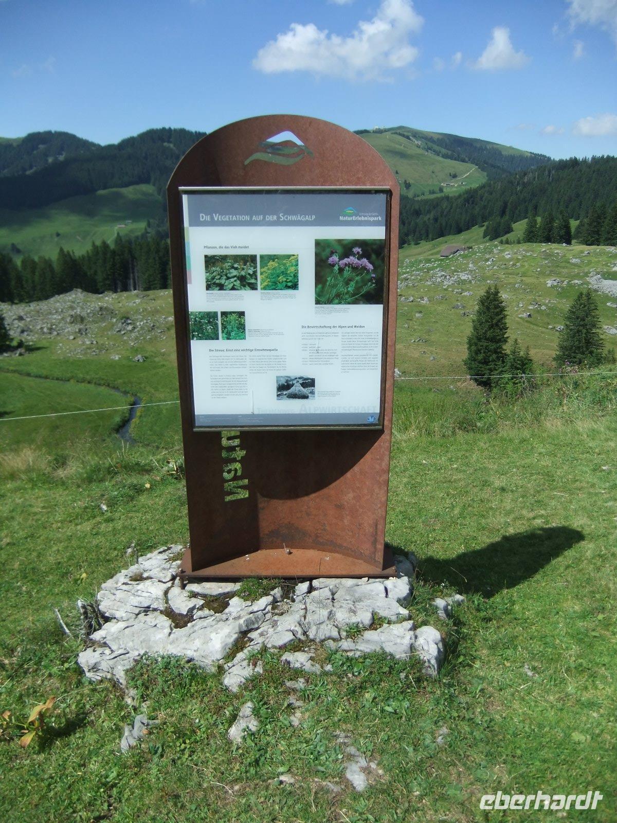 Zurück auf der Schwägalp bleibt Zeit für individuelle Erkundungen oder einen Besuch im Wellnessbereich des Hotels. 20 Gäste treffen sich jedoch zu einer kleinen Wanderung auf der Alp. Ein Rundweg führt durch das Naturschutzgebiet. Die Wiesen werden von Frühjahr bis Herbst als Weideland für Kühe, Ziegen und Schafe genutzt. Typisch für die Kühe ist hier ihre graue Farbe. Wir entdecken während der Tour zahlreiche Blumen und Kräuter und erfahren Interessantes zur Geologie.