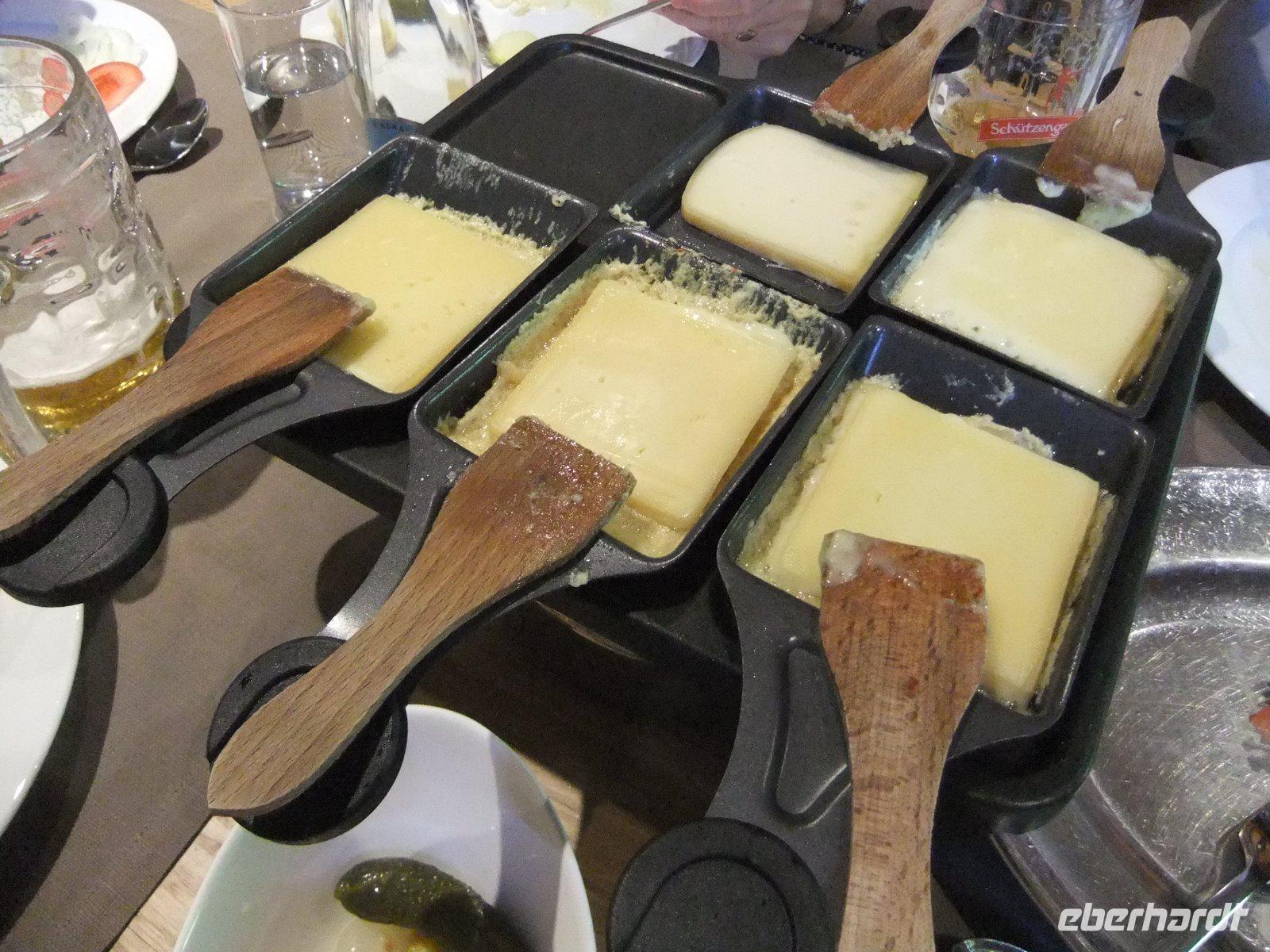 Am Abend erwartet uns ein typisch Schweizerisches Essen. Wir sind eingeladen zu einem Raclette. Spezieller Raclette-Käse wird dafür auf einem Tischgrill geschmolzen. Dazu gibt es Pellkartoffeln, Dürrfleisch und eingelegte Perlzwiebeln. Dann heißt es bald Koffer packen, denn morgen setzten wir unsere Rundreise fort.