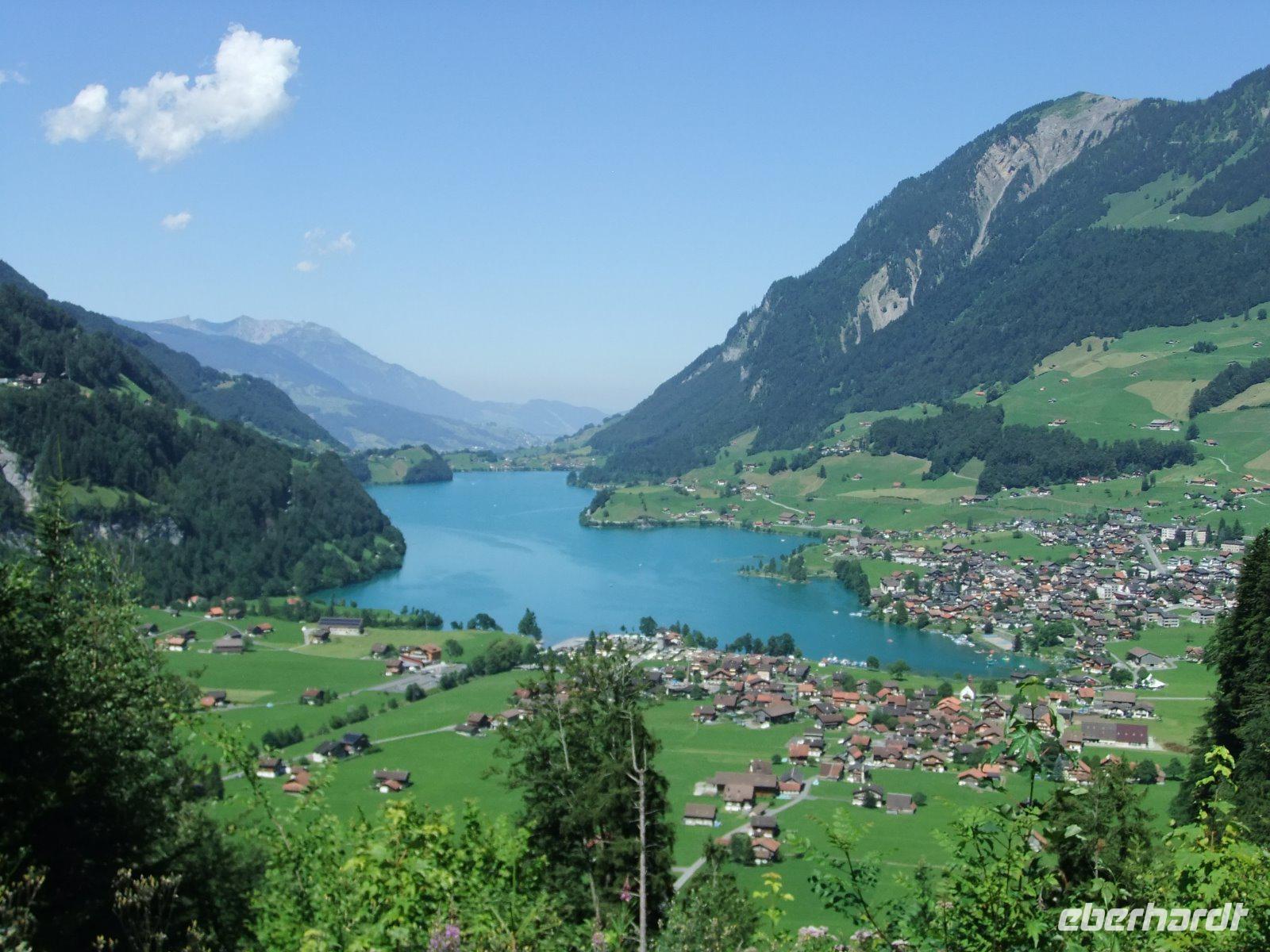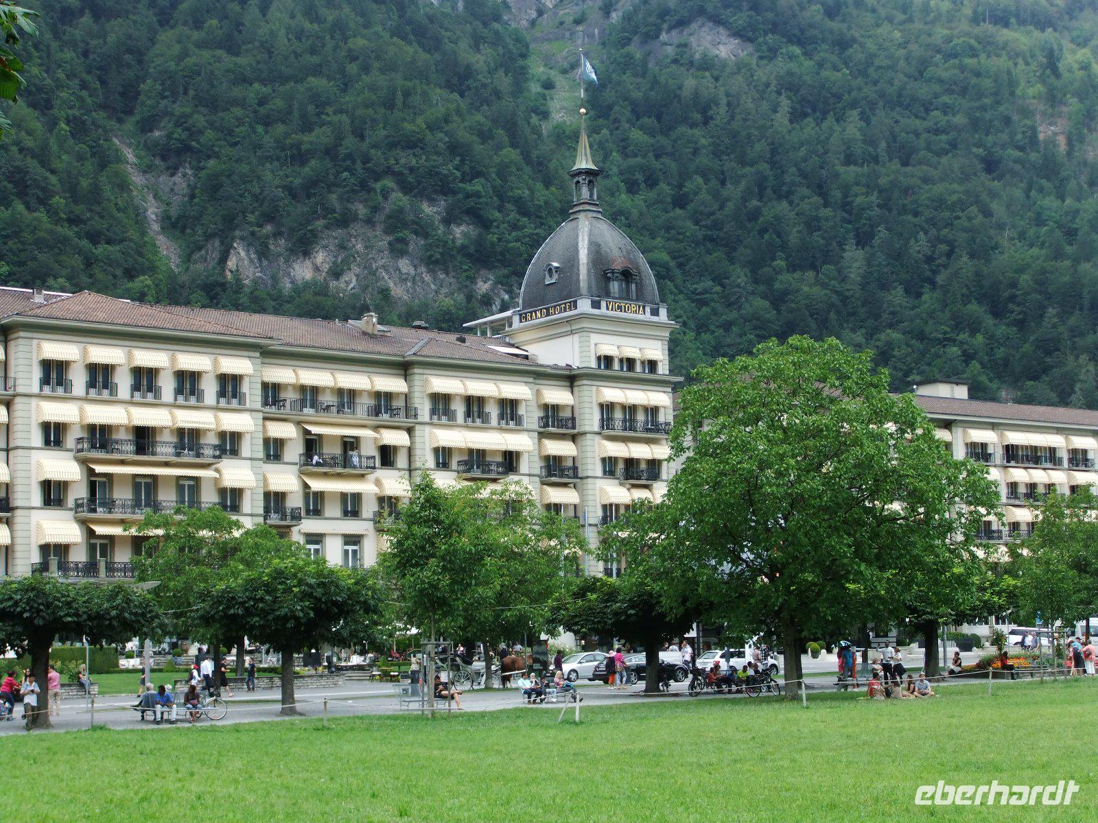 Am Nachmittag fahren wir dann vorbei am Sarner See und machen unsere Kaffeepause mit Blick auf den Lungernsee. Weiter geht es über den Brünigpass und wir erreichen das Berner Oberland. Durch das Holzschnitzerdorf Brienz und entlang des gleichnamigen Sees setzen wir die Fahrt fort. Unser Ziel, der bekannte Ort Interlaken, ist schon bald zu sehen. Im Hotel „Carlton-Europe" werden wir herzlich begrüßt. Das Haus kann auf eine über 100jährige Geschichte zurückblicken. Nach dem Abendessen auf der Terrasse spazieren die meisten Gäste noch entlang des Höhewegs.