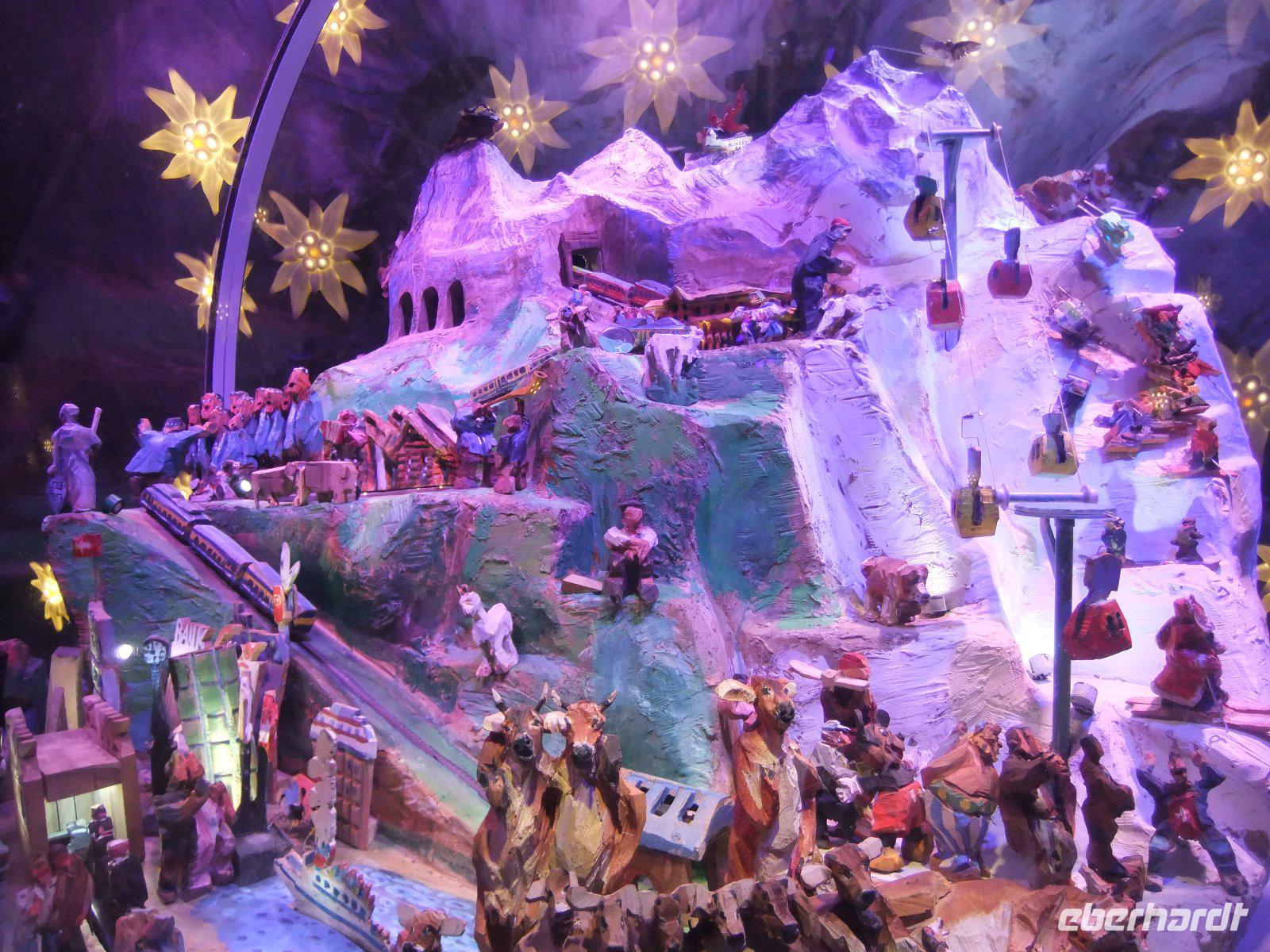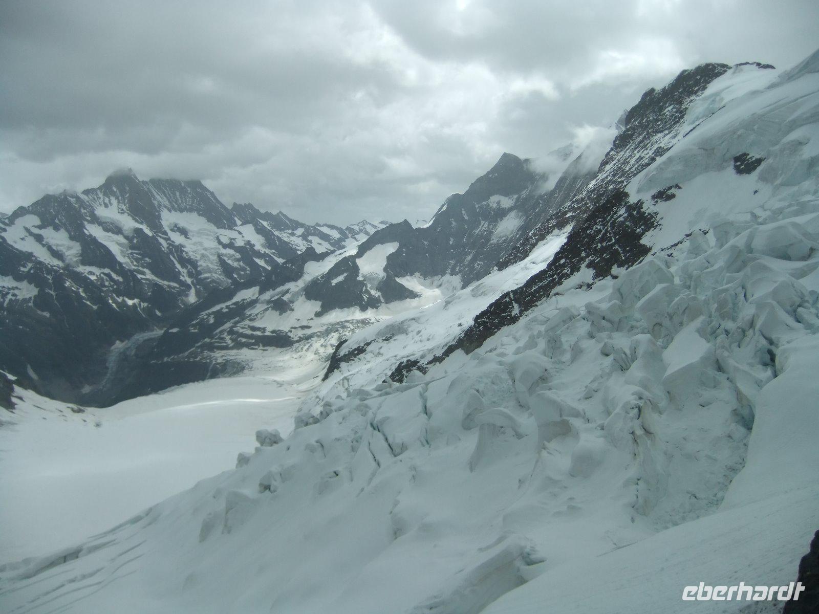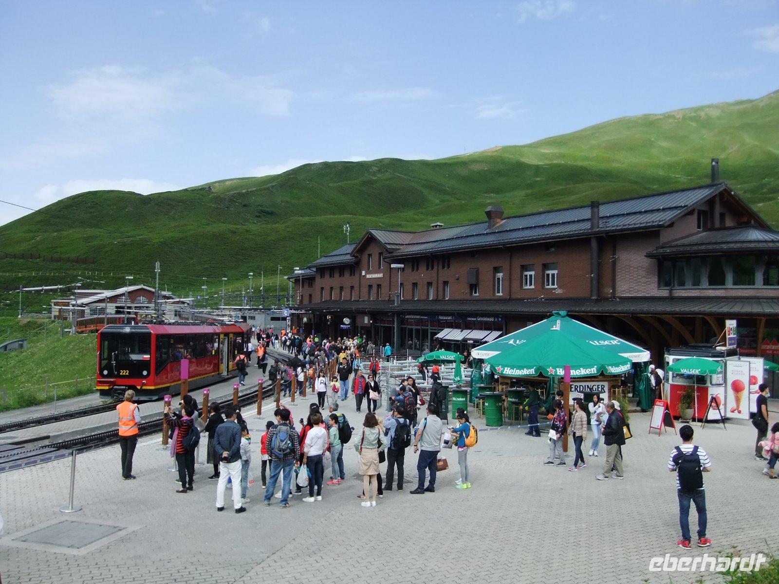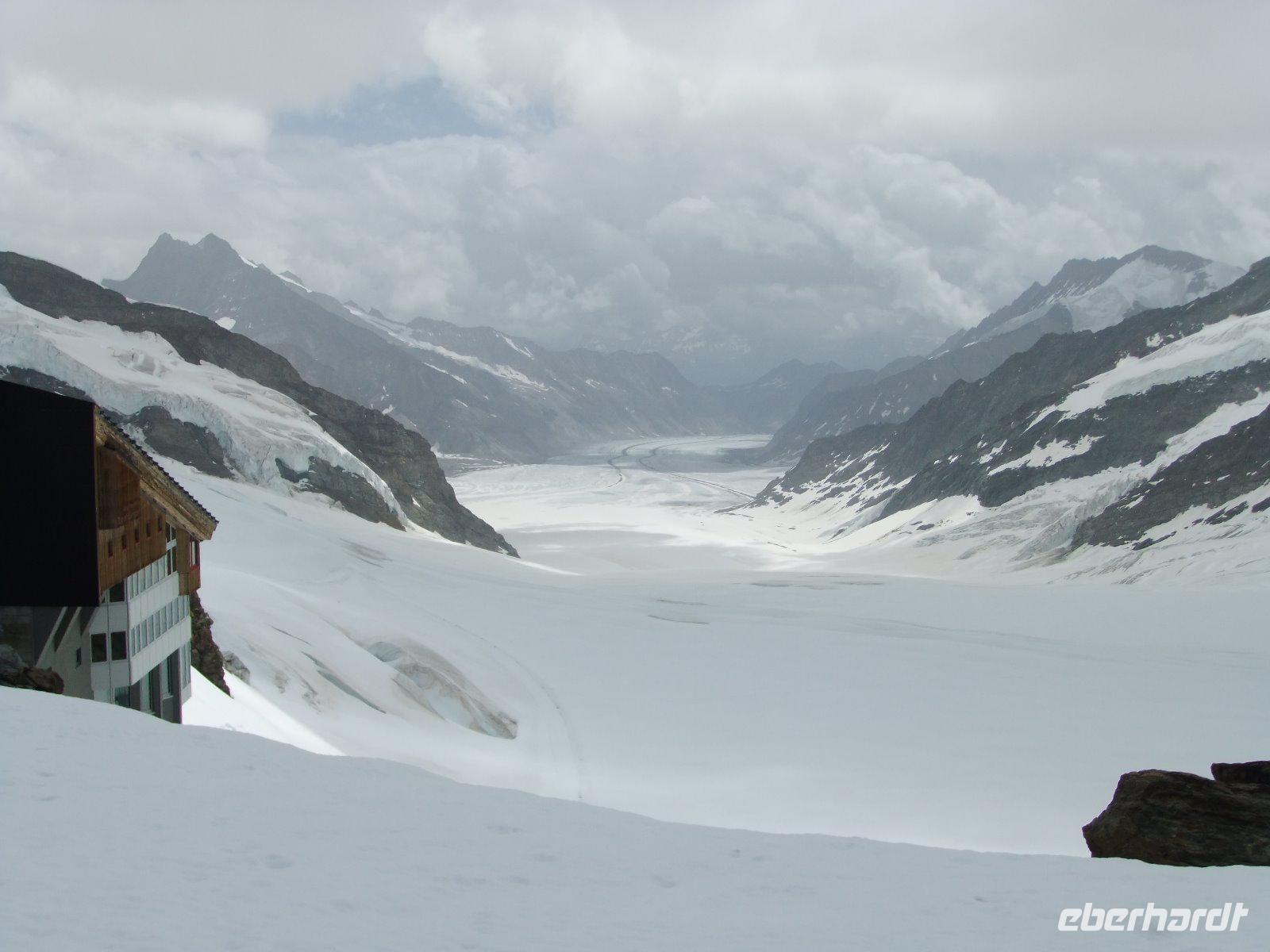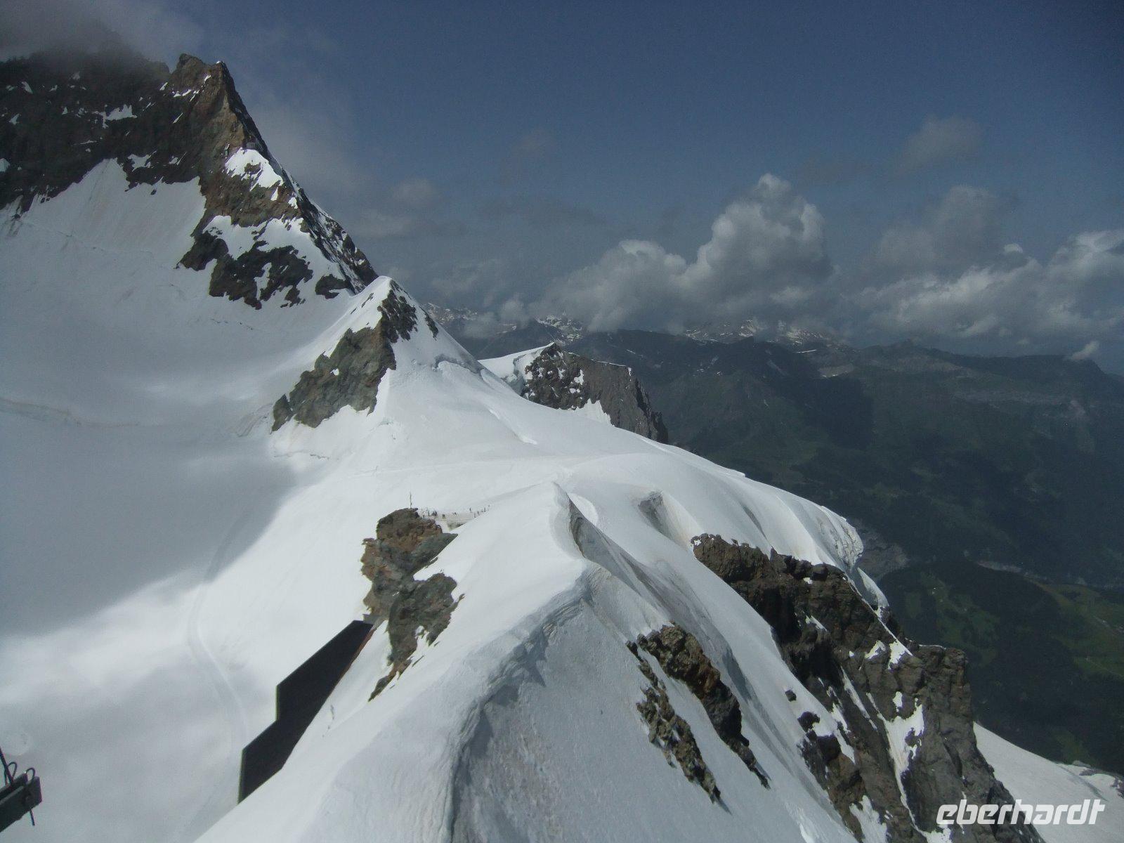 Bis jetzt war der Wettergott immer auf unsere Seite. Auch heute hoffen wir wieder auf seine Unterstützung, denn wir wollen ganz nach oben. Nach dem Frühstück gehen wir zum Bahnhof Interlaken-Ost. Von hier fahren wir nach Grindelwald, steigen dort in die Zahnradbahn zur Kleinen Scheidegg um. Das Dreigestirn Eiger, Mönch und Jungfrau präsentiert sich nun vor uns. Sehr gut einsehbar ist besonders die Eigernordwand. Weiter geht es mit der Jungfraubahn. An den Stationen Eigerwand und Eismeer legen wir Fotostopps ein. Nach 50 Minuten erreichen wir den mit 3454 m höchstgelegenen Bahnhof Europas. Von der Bahnhofshalle gelangen wir direkt ins Hauptgebäude, wo wir dem Symbol „Tour" folgen können. Die erste Attraktion ist das 360°-Kinoerlebnis „Jungfrau-Panorama". An der Station „Aletschgletscher" spazieren wir durch den Schnee. Aus dem Liegestuhl können wir beobachten, wie vor allem asiatische Touristen eine Rutschpartie im Gummireifen machen und Mutige am 250 Meter langen Stahlseil über die Gletscherwelt fliegen. In 27 Sekunden erreichen wir dann mit dem schnellsten Lift er Schweiz das Sphinx-Observatorium, das gleichzeitig das Wahrzeichen des Jungfraujochs ist. Die Aussichtsterrasse bietet eine wunderbare Sicht auf den Aletschgletscher und wir sind dem Mönch ganz nah. Weiter geht es zum Erlebnisrundgang „Alpine Sensation". Wir bestaunen das „Wunderland Schweiz in der Schneekugel", schauen auf die Anfänge des Tourismus in der Jungfrau-Region und in die Geschichte der Jungfraubahn. Dann wird es kalt, denn wir befinden uns im Eispalast. Hier treffen wir auf Pinguine und Eisbären. Unsere nächste Station ist das Gletscherplateau, wo seit der Einweihung der Jungfraubahn die Schweizer Fahne weht. Wir stehen zu Füßen der Jungfrau und auch von hier haben wir noch einmal einen atemberaubenden Blick auf den Aletschgletscher. Zum Schluss tauchen wir mit Lindt ein in die süße Welt der Schweizer Schokolade.