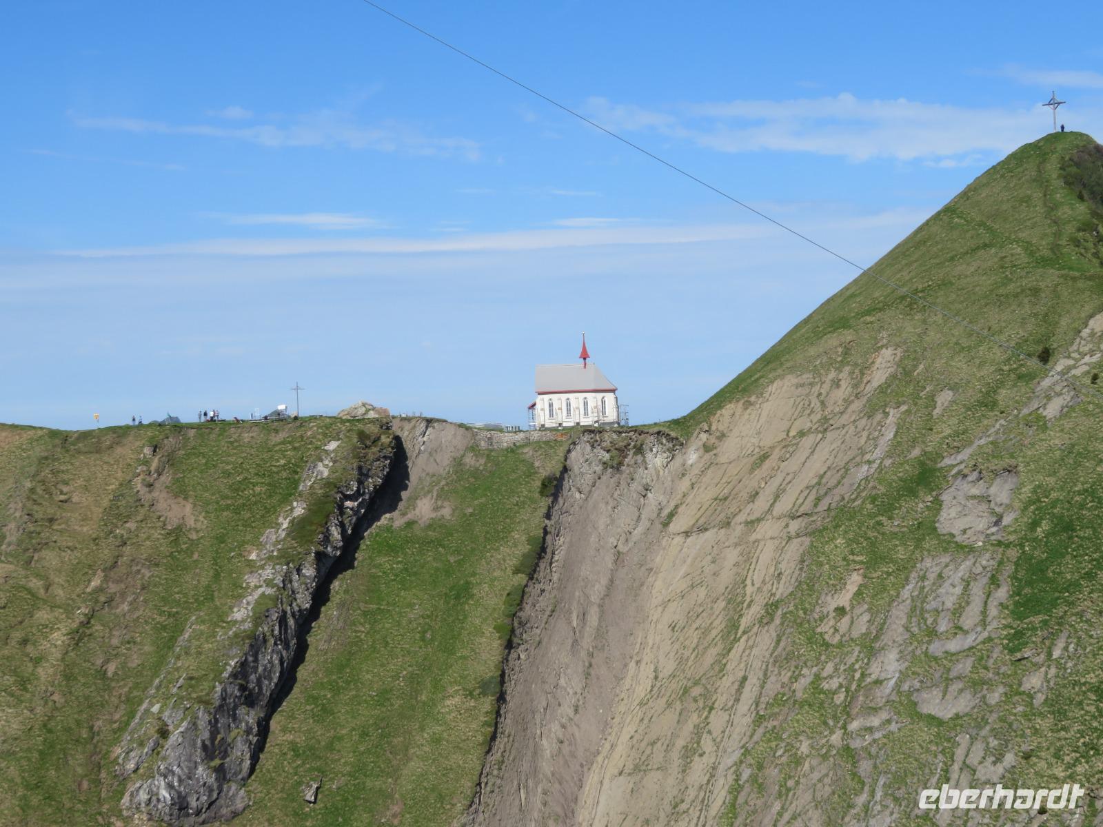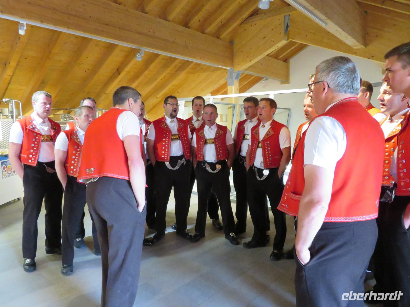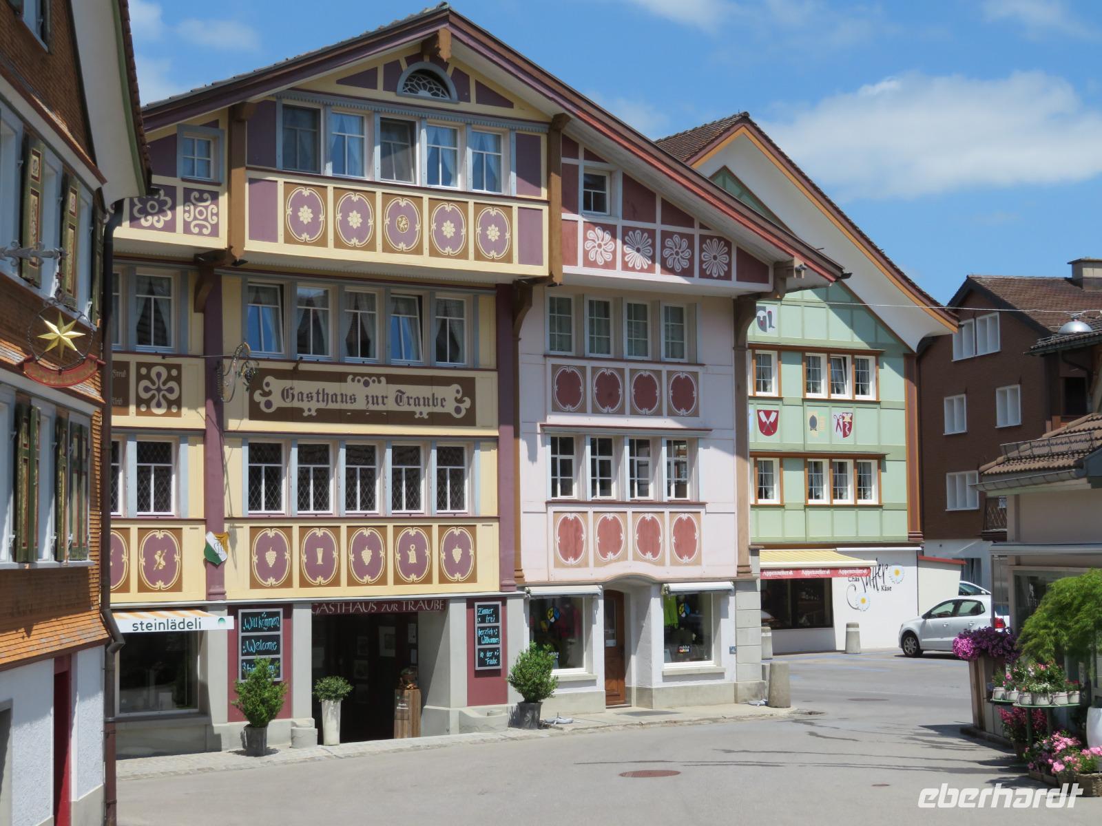 Bereits beim Aufstehen sehen wir, dass sich der Säntis in voller Schönheit bei Sonnenschein zeigt. Uns wecken wieder die Glocken der auf der Schwägalp weidenden Kühe. Wir fahren mit der ersten Seilbahn zeitig auf den Berg. Uns erwartet noch eine besondere Überraschung: Wir dürfen das neue Panorama-Restaurant einweihen. Es ist wunderschön mit viel Holz gestaltet und bietet eine herrliche Aussicht. Wir stärken uns an dem reichhaltigen Frühstücksbuffet, welches keine Wünsche offen lässt. Anschließend erwartet eine Mitarbeiter der Säntisbahn, zu einer sehr interessanten Führung durch die Anlagen des Säntis. Wir sehen in einem sehr interessanten Film, unter welch schwerer und mühevoller Arbeit die Säntis-Schwebebahn gebaut wurde. Anschließend dürfen wir einen Blick in den 123 Meter hohen Sendeturm der Swisscom werfen. Wir können die sehr schöne Aussicht bei strahlendem Sonnenschein genießen. Wir sehen die Berge der Zentralschweiz mit Rigi und Pilatus, die Berner Alpen mit Eiger, Mönch und Jungfrau und weiter die Glaner und die Bündner Alpen. Die Seilbahn bringt uns wieder zurück auf die Schwägalp. Nach einer kurzen Pause starteten wir nach Appenzell. Im Hauptort des Halbkantons Appenzell Innerrhoden. Zunächst besuchen wir die Appenzeller Alpenbitter Brennerei. Wir erfahren, wie der berühmte Alpenzeller Magenbitter in einem aufwendigen Verfahren aus 42 Kräutern hergestellt wird. Anschließend unternehmen wir einen kleinen Rundgang. Wir sehen die vielen wunderschön mit Bauernmalerei bemalten bunten Häuser am Landsgemeindeplatz und in der Hauptgasse. Auf dem Landsgemeindeplatz werden auch heute jedes Jahr am letzten Sonntag im April die Landsgemeinden abgehalten. Über kommunale Beschlüsse entscheiden die Einwohner des Kantons per Handerheben. Es bleibt Zeit, um gemütlich durch den kleinen Ort zu spazieren.