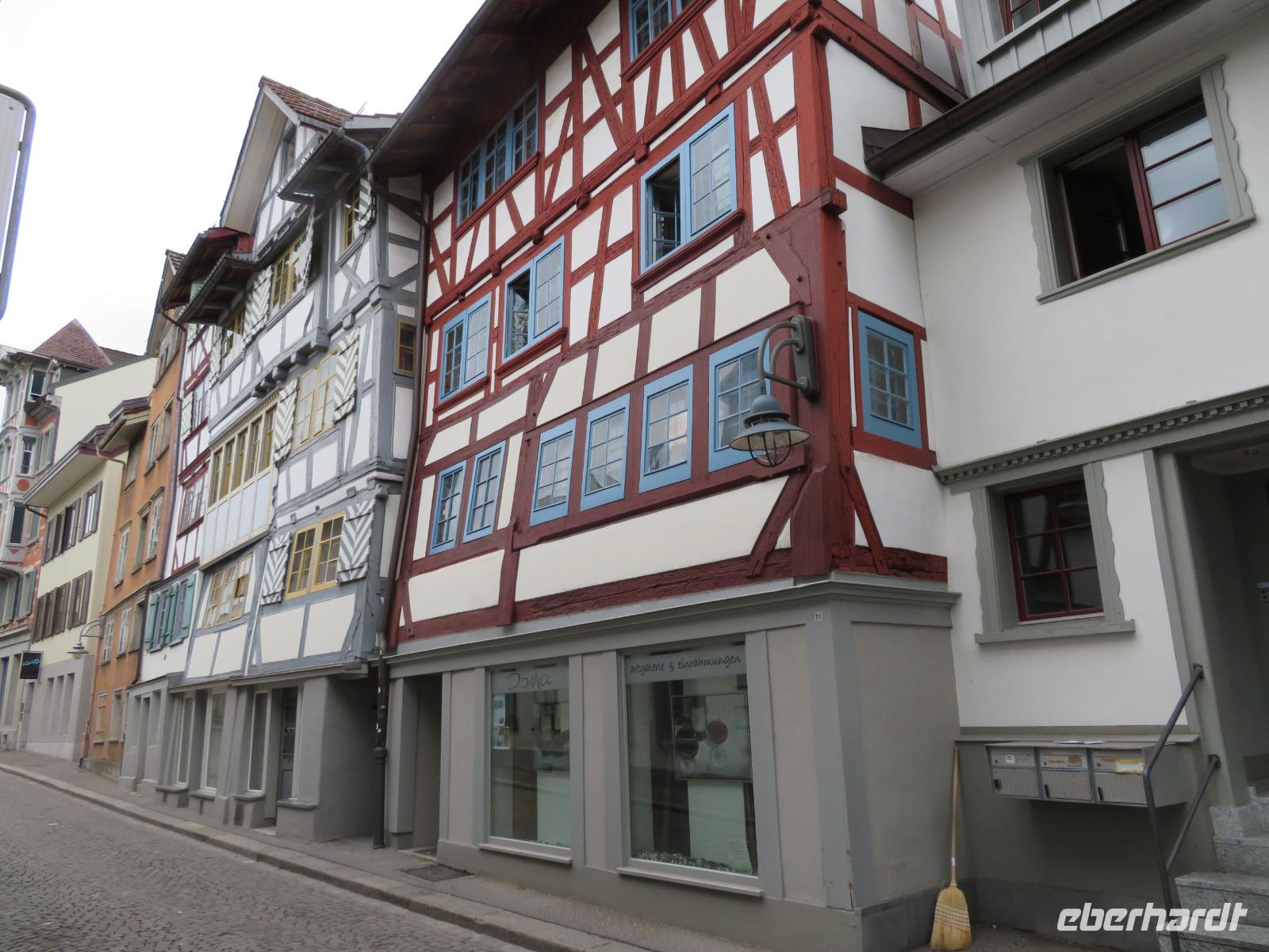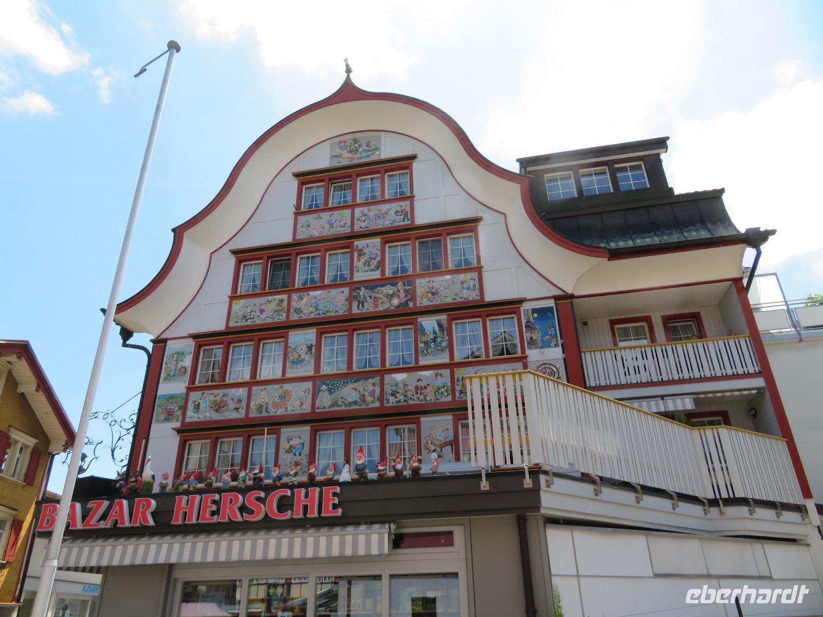 Nach der Stadtführung beleibt uns noch etwas Zeit für individuelle Entdeckungen in der hübschen Altstadt von St. Gallen. Am Mittag führt uns unsere Reise weiter nach Altenrhein. Wir schauen uns die Markthalle von Friedensreich Hundertwasser an. Diese ist ein typisches, kunterbuntes Werk des bekannten Architekten. Es ist kunterbunt und keine Wand ist gerade und kein Boden ist wirklich eben. Nun fahren wir entlang des Bodensees nach Rohrschach. Wir bummeln entlang der Uferpromenade am Bodensee bis zum Hafen und zum Kornhaus direkt am See. Das barocke Gebäude war ursprünglich ein Kornspeicher. Heute befindet sich in dem Haus das Museum der Stadt. Wir fahren durch die liebliche Landschaft des Appenzeller Landes zurück. Die Fahrt bringt uns vorbei an saftigen, herrlich blühenden Wiesen, durch hübsche Dörfer mit typisch Appenzeller Höfen und Häusern.