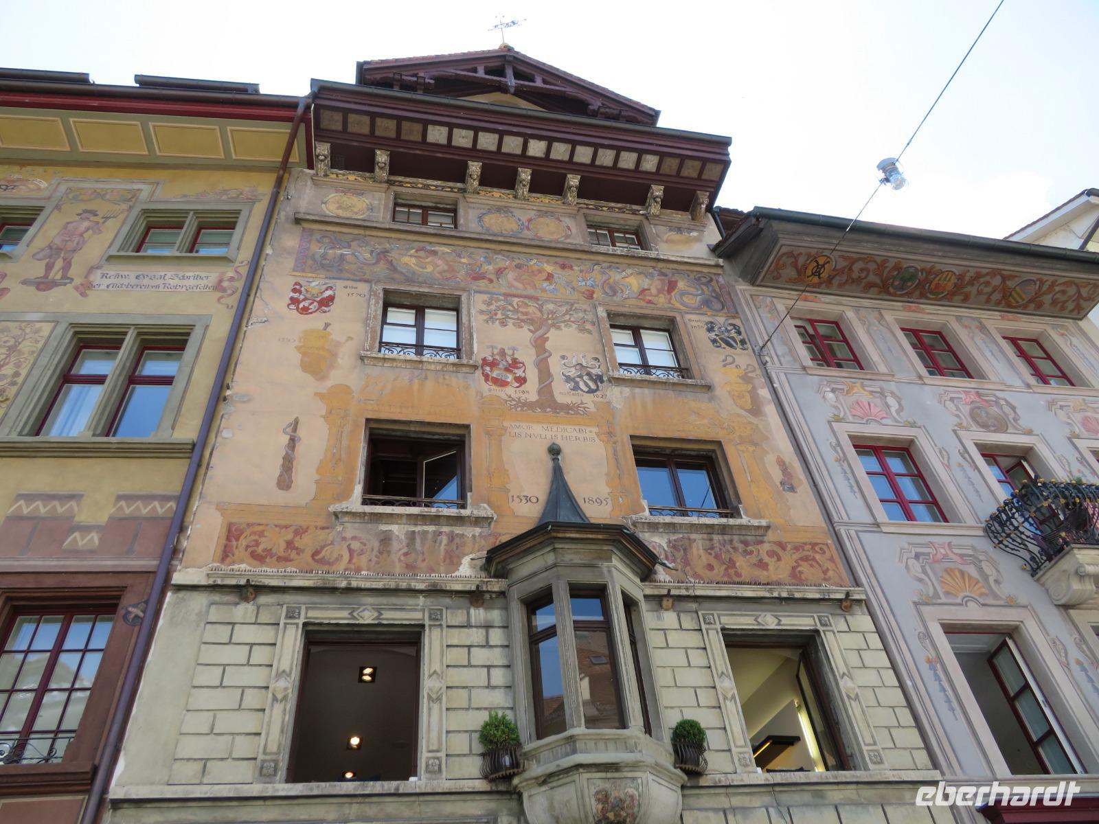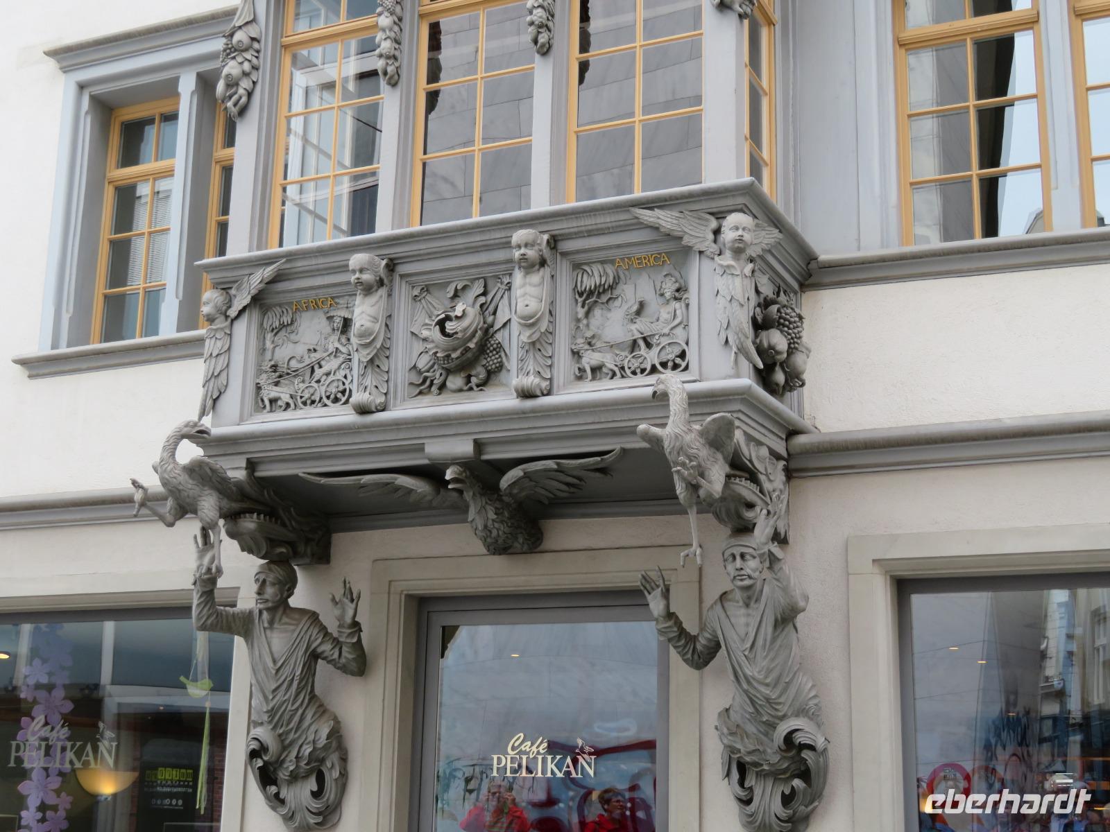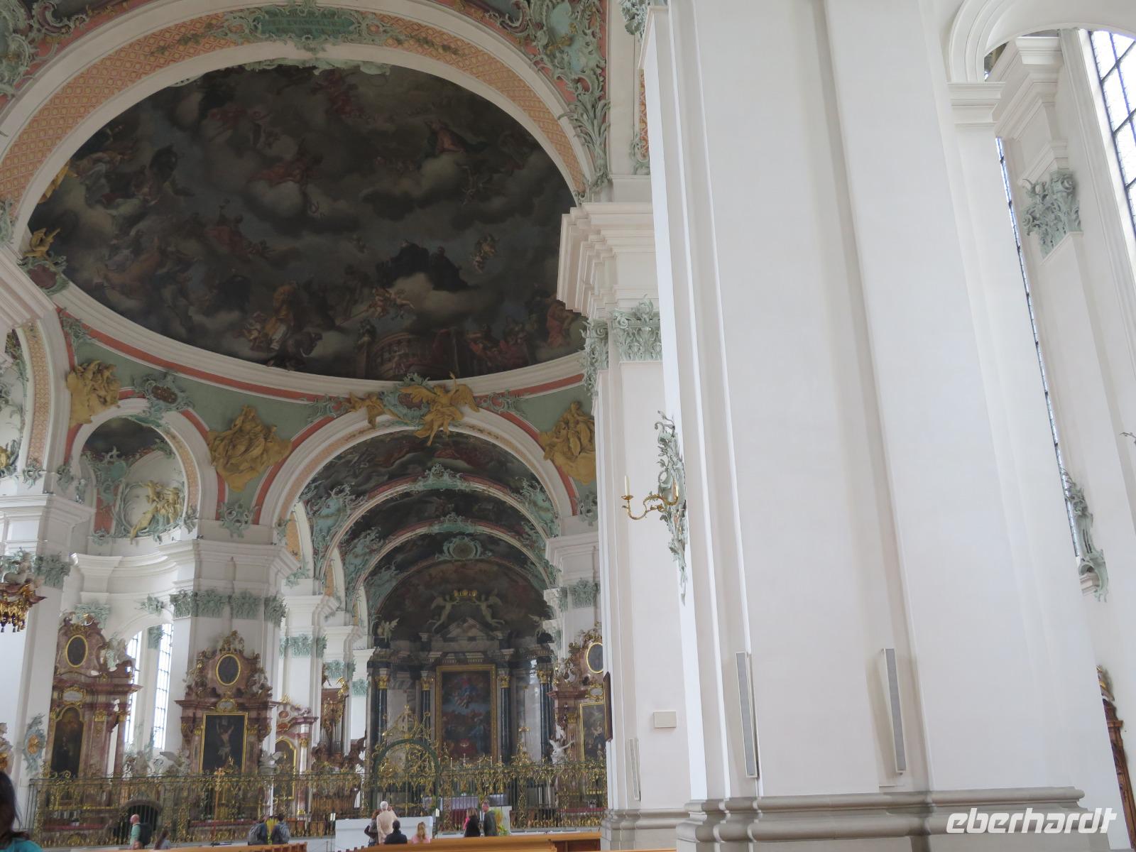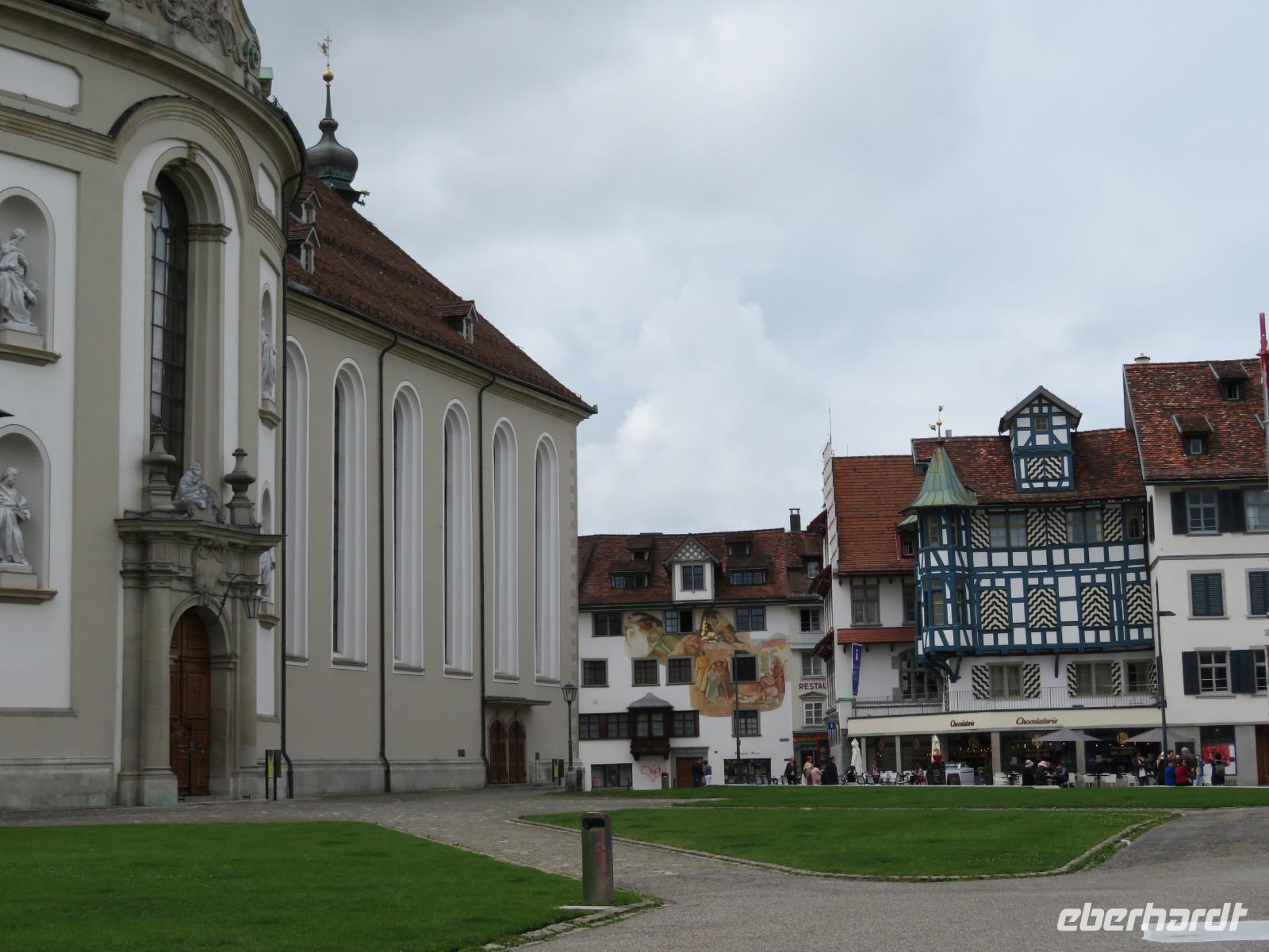 Wir stärken uns am reichhaltigen Frühstücksbuffet im Hotel. Anschließend reisen wir mit dem Bus nach St. Gallen. Wir kommen etwas zu früh an und spazieren noch durch den kleinen Park an der Museumsstraße. Dann kommt unsere Stadtführerin. Wir erleben einen sehr kurzweiligen und interessanten Rundgang. Dabei erfahren wir viele Details und Anekdoten aus der wechselvollen Geschichte der Stadt. Wir spazieren durch die engen Gassen der Altstadt mit ihren Bürgerhäusern. Uns begeistern die prächtigen Erker, welche Auskunft über die Vermögensverhältnisse der Erbauer der Häuser im 1600 bis 1800 Jahrhundert geben. Je prachtvoller diese verziert sind, desto wohlhabender waren die Bewohner. Ein Besuch des Stiftsbezirks gehört natürlich zu unserem Programm. Die Bibliothek und die Kathedrale gehören seit 1983 zum UNESCO-Weltkulturerbe. Als Höhepunkt unserer Stadtführung sehen wir einen ganz besonderen Schatz der Stadt: die Stiftsbibliothek. In dieser befinden sich über 160.000 Bücher. Darunter befinden sind ganz wertvolle Handschriften aus dem Mittelalter. Im prachtvollen, mit verschieden Hölzern und Stuckverzierungen ausgestatteten, Barocksaal der Bibliothek haben über 30.000 Bücher ihre Heimat gefunden. In Vitrinen sehen wir besonders interessante Bücher, die teilweise über Tausend Jahre alt sind. Unsere Stadtführerin erklärt uns die einzelnen Schätze und zum Abschluss sehen wir einen einzigartigen Erd- und Himmelsglobus aus dem 17. Jahrhundert. Nun besuchen wir die imposante Stiftskirche, ein beeindruckender Barockbau und Zentrum des ehemaligen Klosters von St. Gallen.