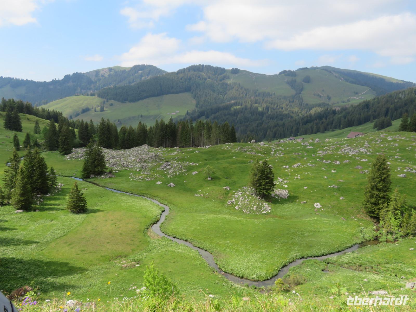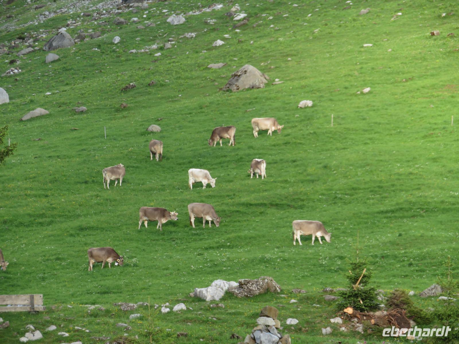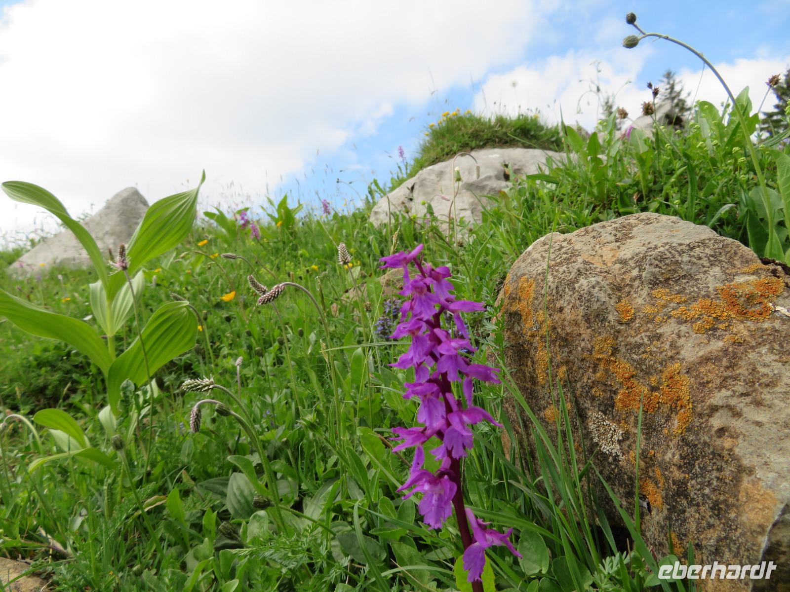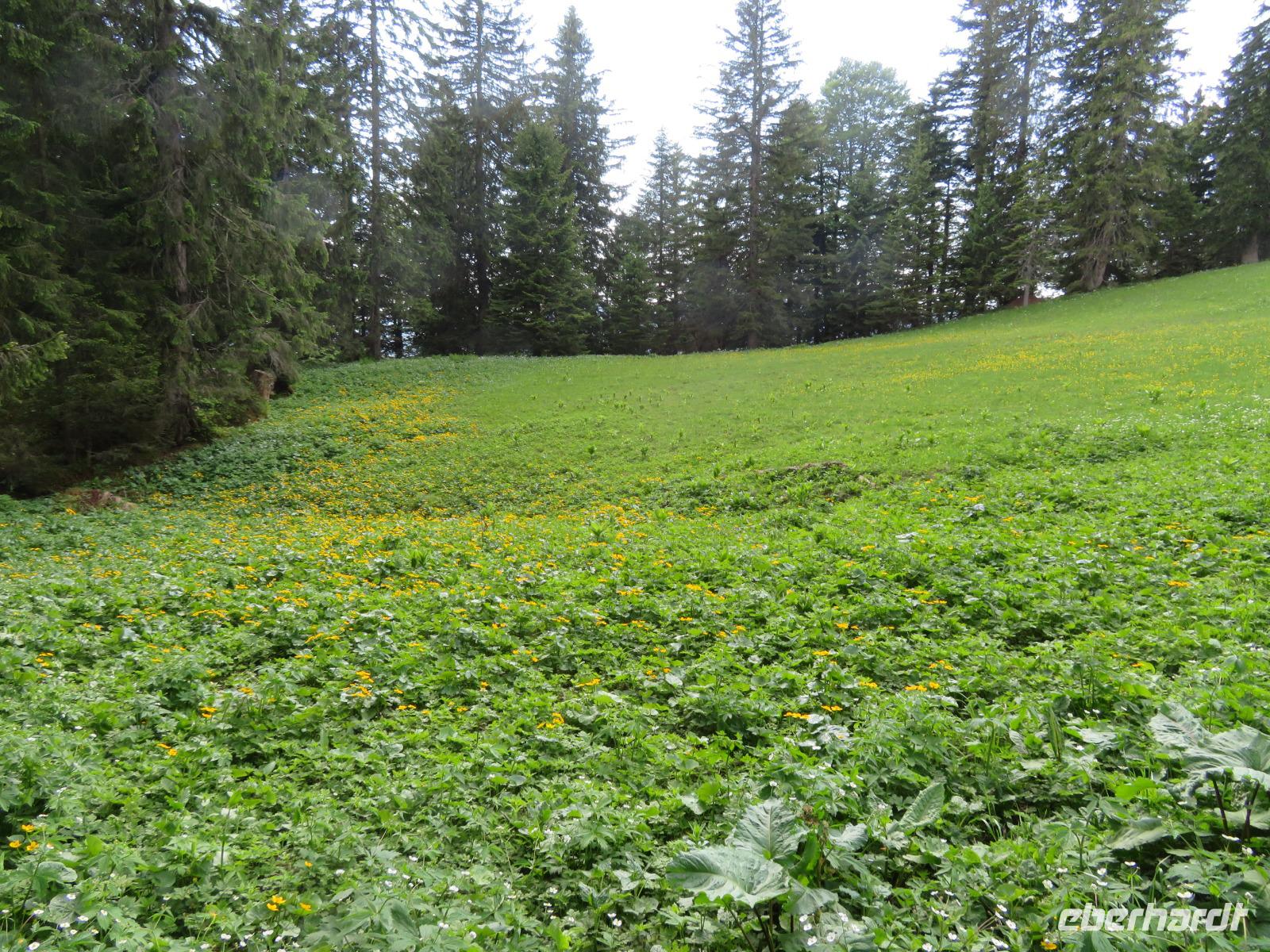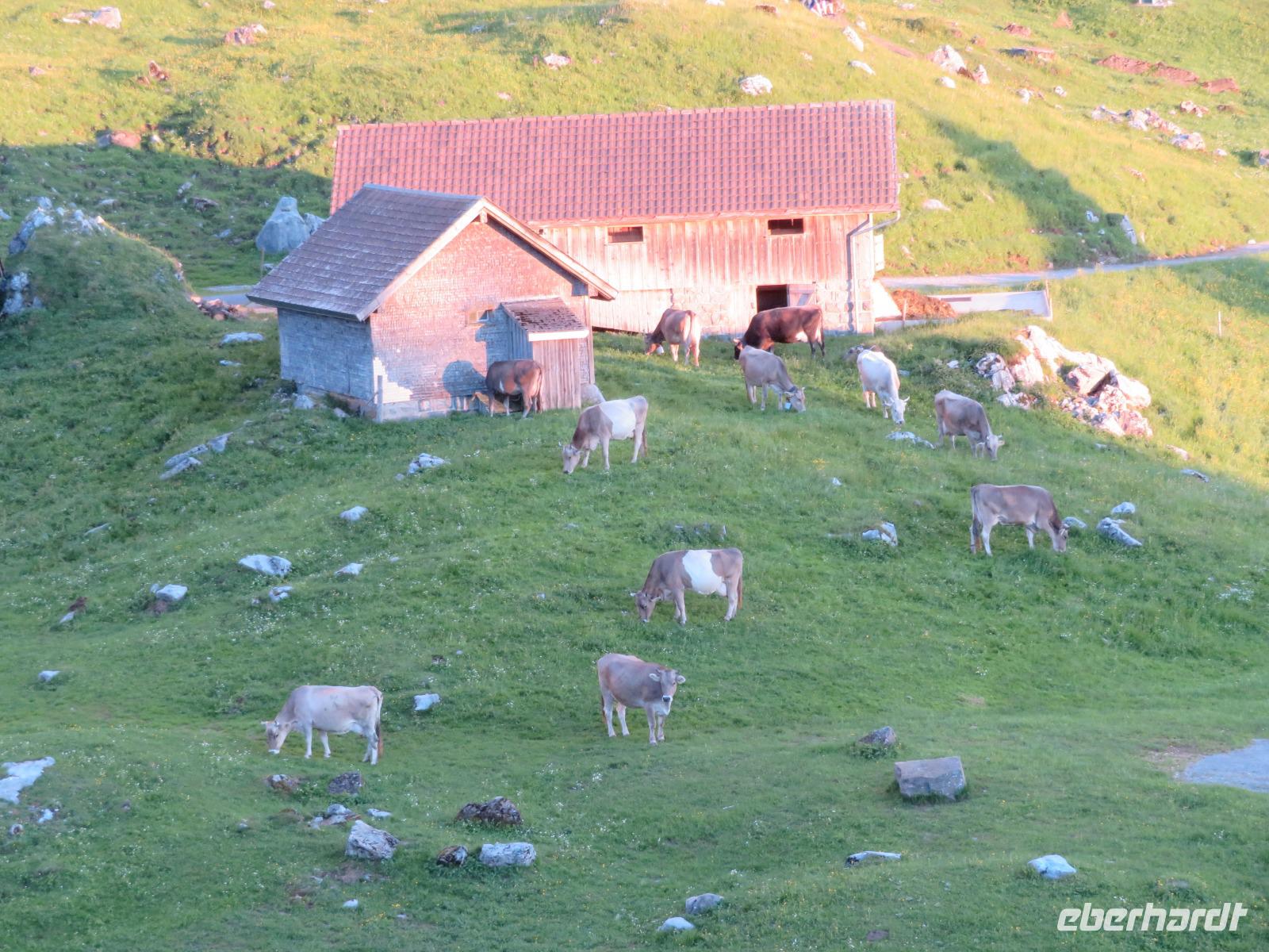 Auf der Schwägalp erwartete uns Albert, unser Wanderführer. Mit ihm unternehmen wir eine schöne Wanderung über die große Alm. Der urige Appenzeller erzählt uns dabei so manch Geschichte Wir bewundern die herrlichen Blumen. Es blühen die gelb leuchtende Supfdotterblumen, der Eisehutblättrige Hahnenfuß, derFrühlingsenzian mit seinen blauen sternförmigen Blüten. Wir entdecken sogar das Breitblättrige Knabenkraut - eine wilde Orchidee. Es ist ein schönes Erlebnis die einmalige Natur zu entdecken. Zum Abendessen gibt es ein typisches Schweizer Bergbauerngericht - das Raclette, Käse wird geschmolzen und mit Pellkartoffeln und sauer eingelegtem Gemüse serviert.