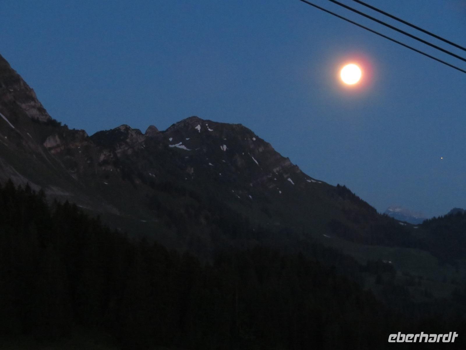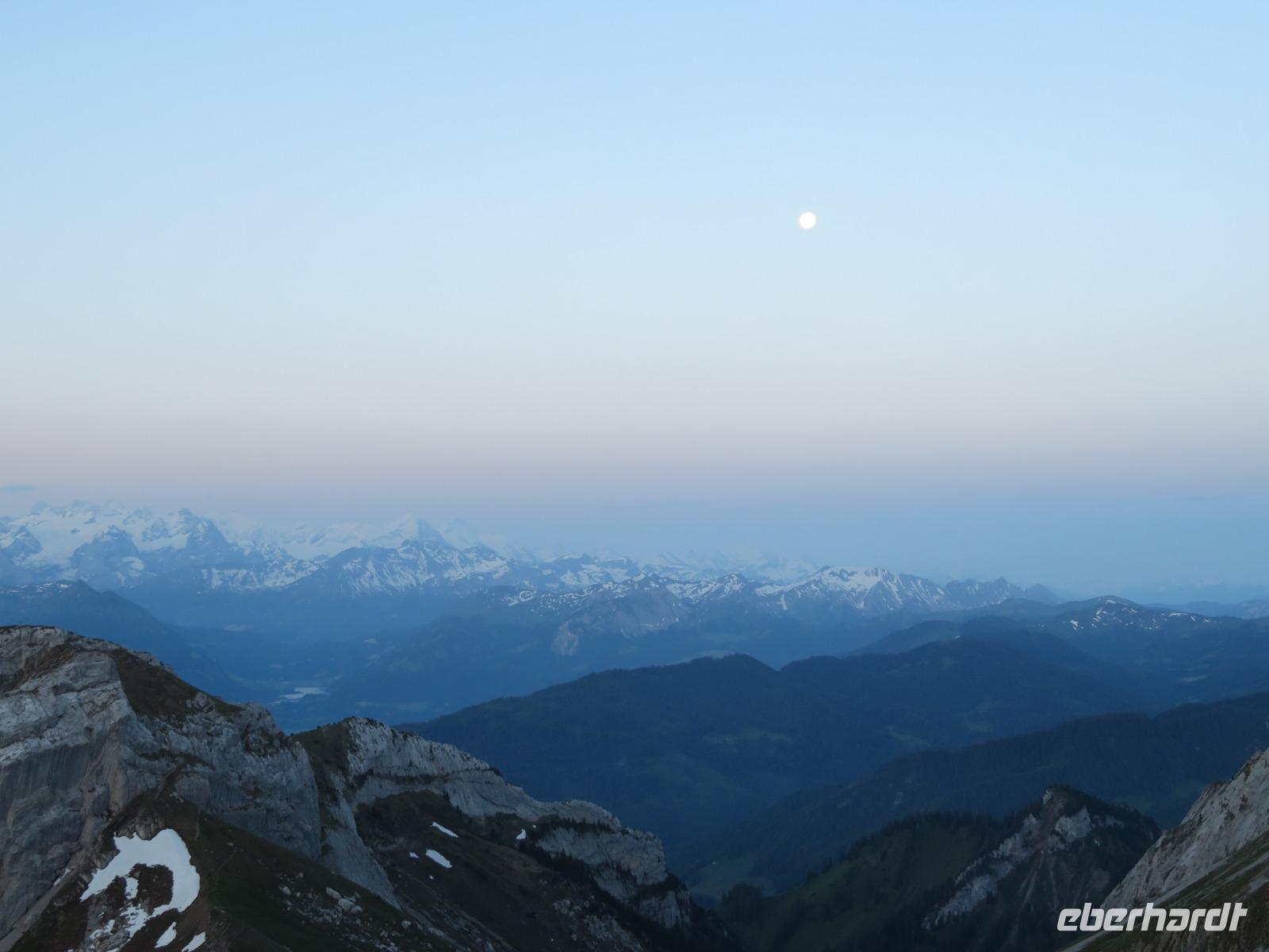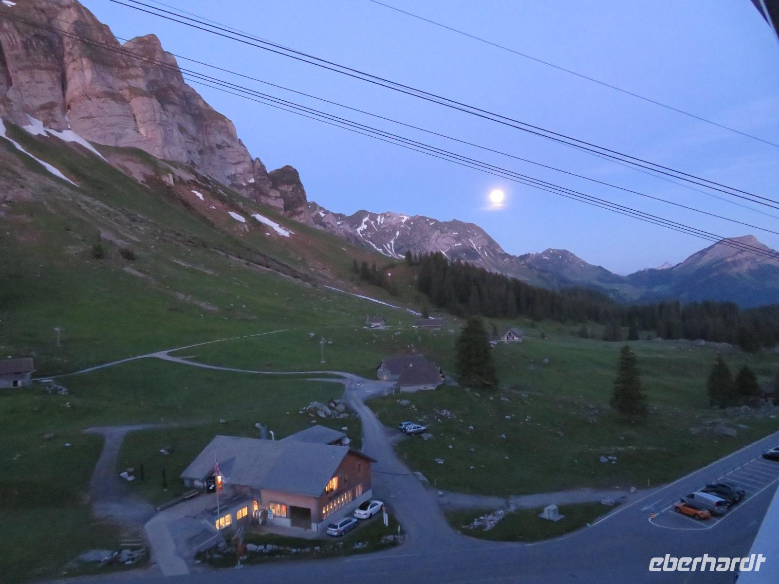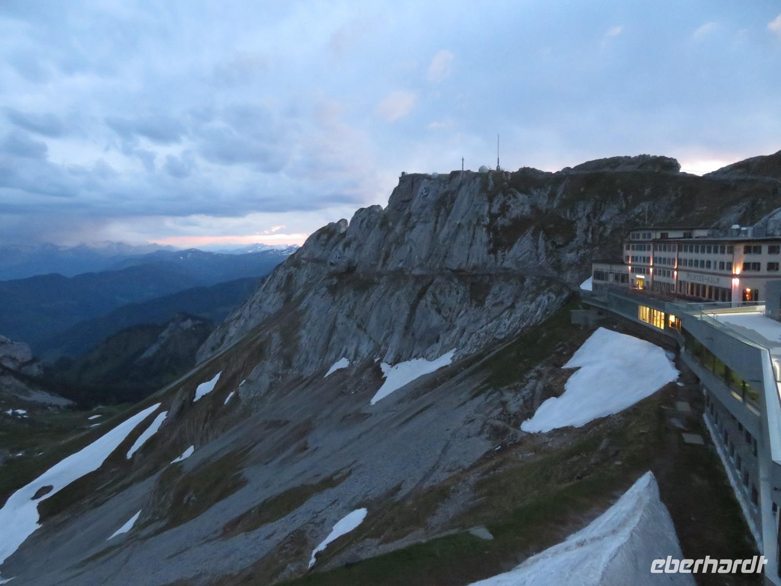 Pünktlich beginnt unsere Reise in die Schweiz in Dresden. Wir kommen einigermaßen zügig voran. Die Route führt uns vorbei am Bodensee durch Bregenz mit Blick auf die Seebühne. Durch das Appenzeller Land fahren wir am späten Nachmittag hinauf zur Schwägalp. Der Säntis steckt noch in Wolken. Wir wurden herzlich im Säntis-das Hotel begrüßt. Nachdem wir unsere schönen Zimmer bezogen hatten, genießen wir ein typisches Appenzeller Menü. Nach dem Abendessen unternehmen einige Gäste einen kleinen Spaziergang in der schönen Umgebung des Hotels. Auch der Säntis zeigt sich uns nun.