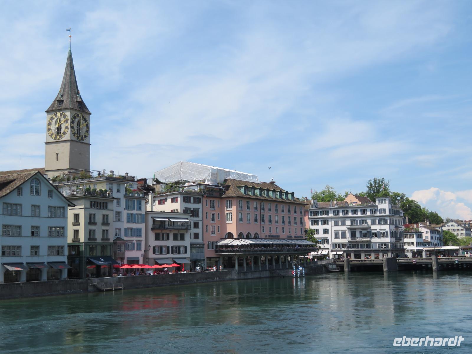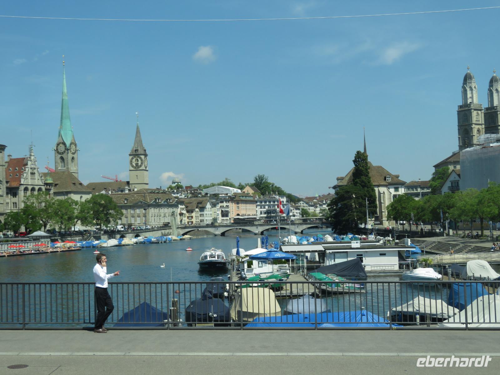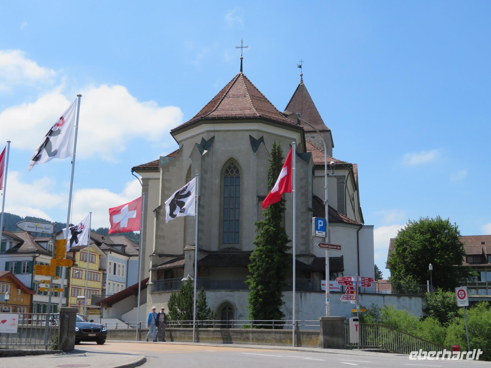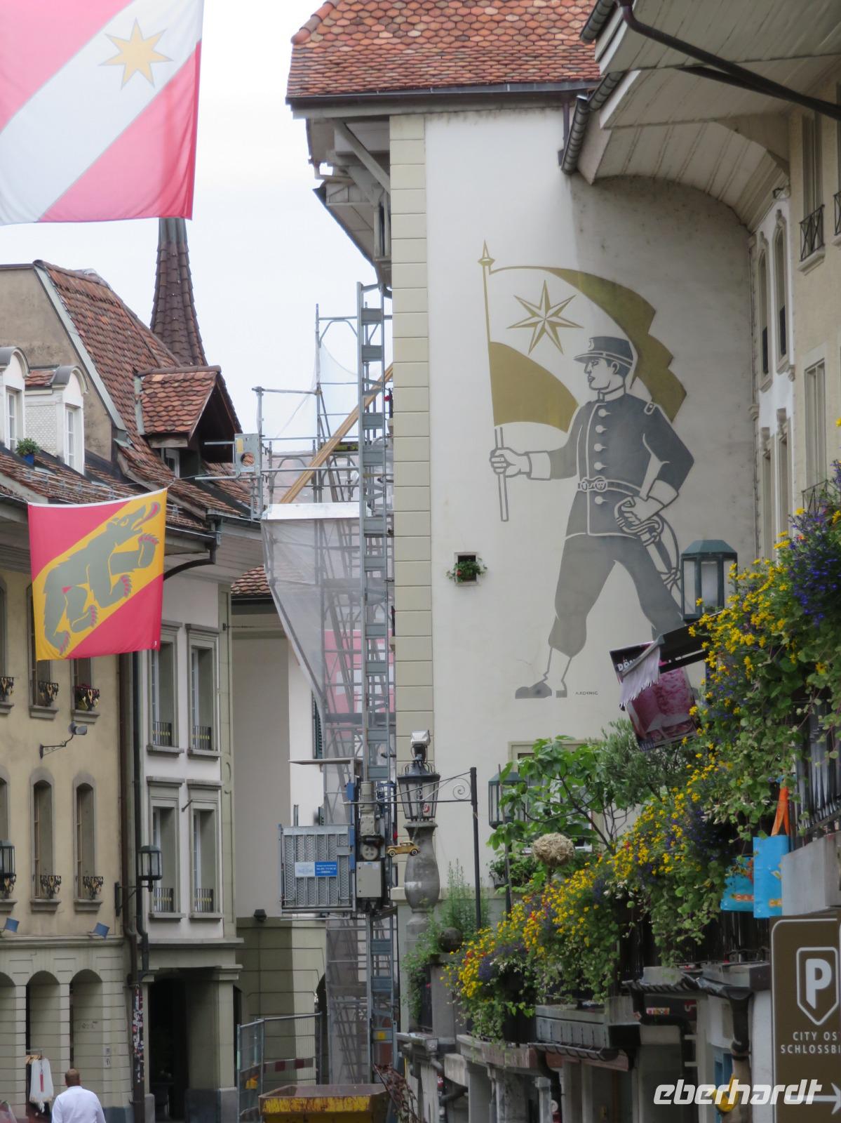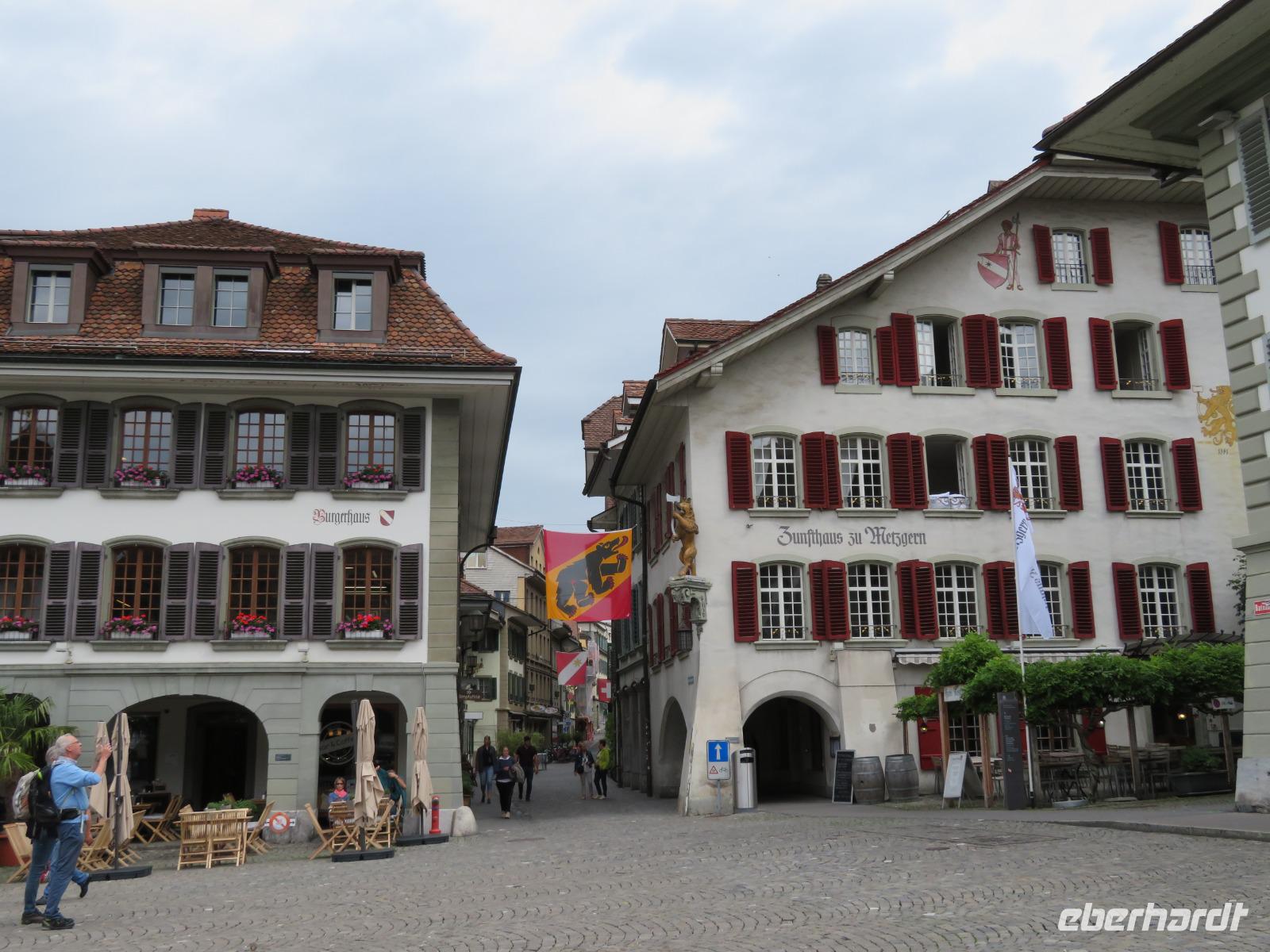 Heute zeigt sich das Wetter etwas durchwachsen. Nach dem Frühstück fahren wir über die Autobahn nach Thun. Mit unserer Stadtführerin Patricia unternehmen wir einen sehr interessanten Rundgang durch die Stadt. Wir sehen die Wehre in der Aare, die den Wasserstand des Thunersees regeln und die momentan fast offen sind, da die Schneeschmelze immer noch im vollen Gang ist und sehr viel Wasser in der Aare ankommt. Staunen können wir über eine wirkliche „Festgeld-Anlage" vor einer Bank AEK. Ein Künstler hat bei der Renovierung der Bank in einem Asphaltstück vor dem Eingang 1826 Frankenstücke mit unterschiedlichen Nennwerten im Gesmatwert 1826 Franken eingelassen. Er verweist damit auf das Gründungsjahr der Bank. Die Münzen sind so fest eingelassen, dass es unmöglich ist, sie wieder herauszulösen. Wir steigen zum Schlossberg hinauf und besuchen die Evangelische Stadtkirche und den Schlosshof. Von der Terrasse eröffnet sich uns ein schöner Blick über die Stadt. In der Hauptgasse sehen wir die alten Stadthäuser und auf dem Rathausplatz erfahren wir die Geschichte des Rathauses, der Zunfthäuser der Mertzger und Pfister, wie die Bäcker früher hießen. Am Mühlenplatz hören wir die Geschichte der Mühle und des Platze. Nun haben wir noch Zeit, um durch die Stadt zu schlendern. Am Mittag fahren wir entlang des Nordufers des Thunersees nach Interlaken zurück. Dabei zeigen sich uns einige Berge, wie der Niesen oder das Stockhorn. Es ist ein grandioser Anblick: der türkisblaue See und dahinter die herrlichen, schneebedeckten Berge. Den Nachmittag verbringen wir ganz individuell in Interlaken.