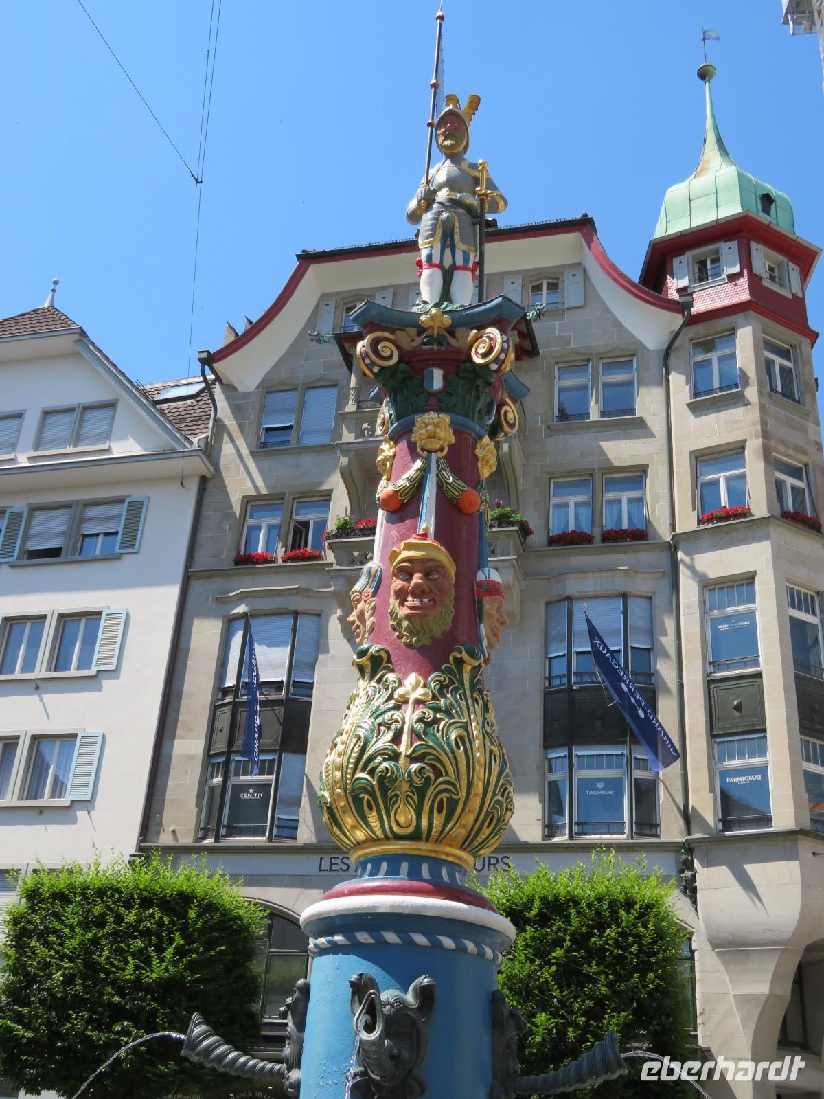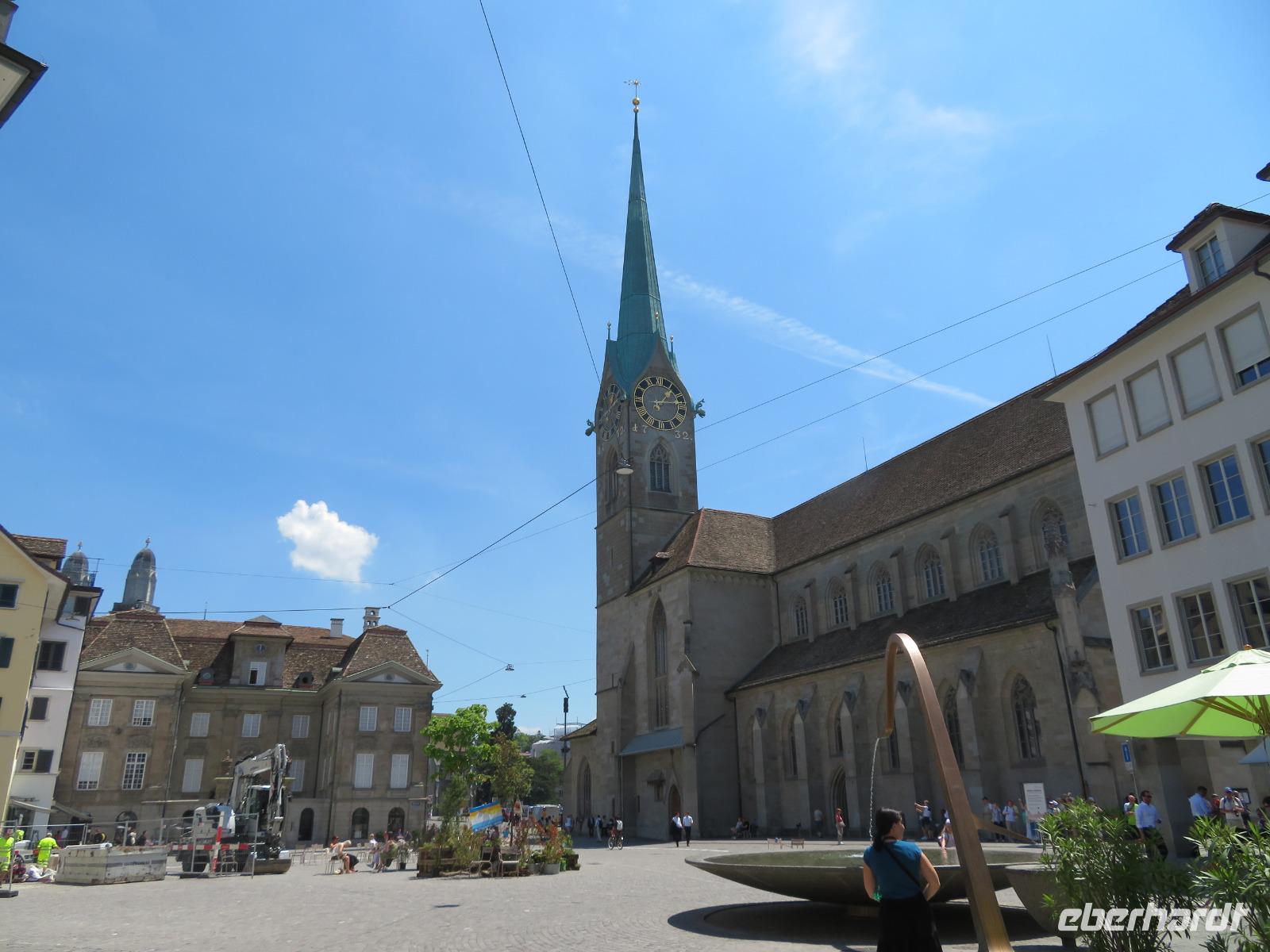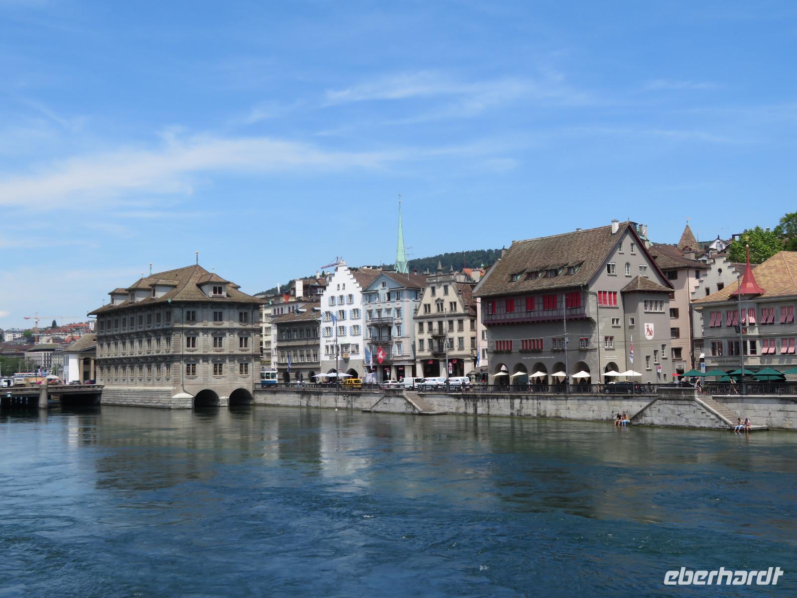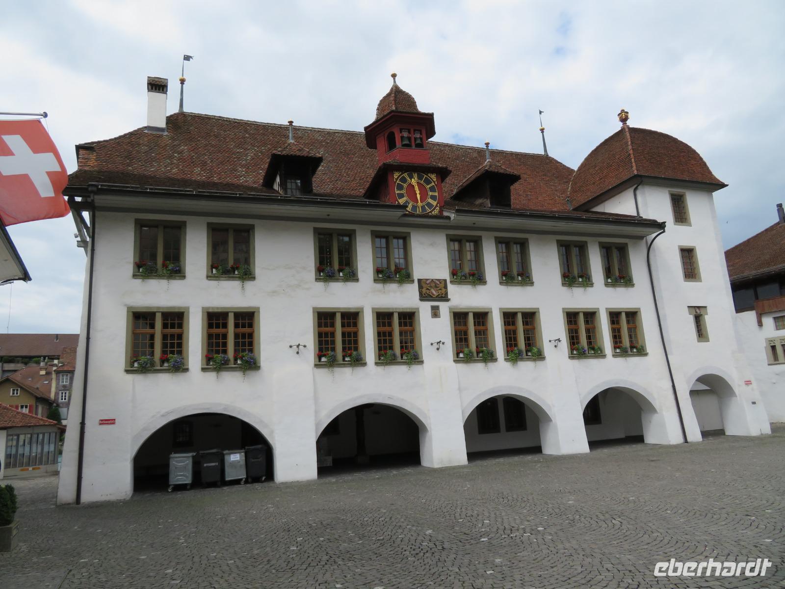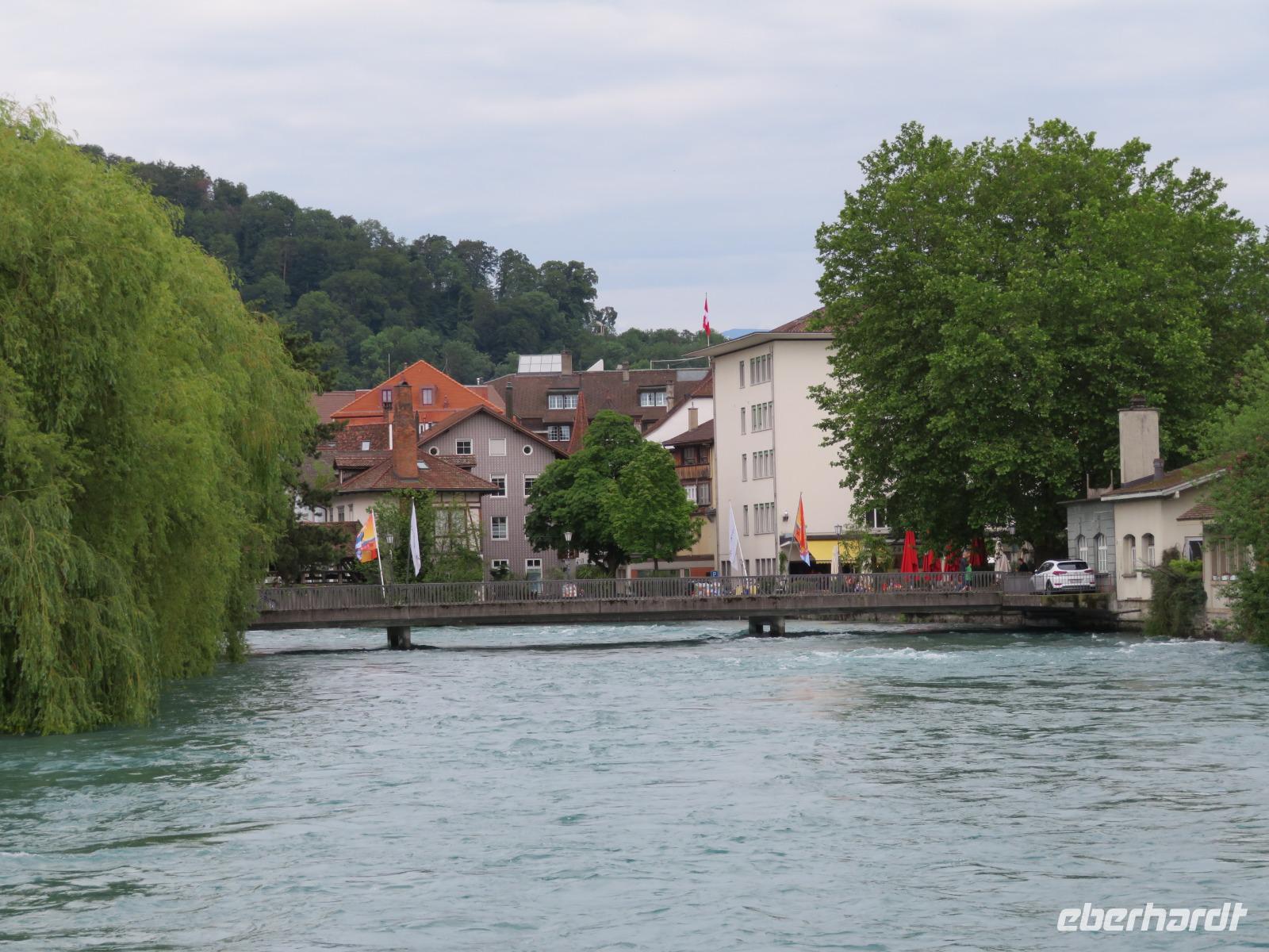 Heute zeigt sich das Wetter etwas durchwachsen. Nach dem Frühstück fahren wir über die Autobahn nach Thun. Mit unserer Stadtführerin Patricia unternehmen wir einen sehr interessanten Rundgang durch die Stadt. Wir sehen die Wehre in der Aare, die den Wasserstand des Thunersees regeln und die momentan fast offen sind, da die Schneeschmelze immer noch im vollen Gang ist und sehr viel Wasser in der Aare ankommt. Staunen können wir über eine wirkliche „Festgeld-Anlage" vor einer Bank AEK. Ein Künstler hat bei der Renovierung der Bank in einem Asphaltstück vor dem Eingang 1826 Frankenstücke mit unterschiedlichen Nennwerten im Gesmatwert 1826 Franken eingelassen. Er verweist damit auf das Gründungsjahr der Bank. Die Münzen sind so fest eingelassen, dass es unmöglich ist, sie wieder herauszulösen. Wir steigen zum Schlossberg hinauf und besuchen die Evangelische Stadtkirche und den Schlosshof. Von der Terrasse eröffnet sich uns ein schöner Blick über die Stadt. In der Hauptgasse sehen wir die alten Stadthäuser und auf dem Rathausplatz erfahren wir die Geschichte des Rathauses, der Zunfthäuser der Mertzger und Pfister, wie die Bäcker früher hießen. Am Mühlenplatz hören wir die Geschichte der Mühle und des Platze. Nun haben wir noch Zeit, um durch die Stadt zu schlendern. Am Mittag fahren wir entlang des Nordufers des Thunersees nach Interlaken zurück. Dabei zeigen sich uns einige Berge, wie der Niesen oder das Stockhorn. Es ist ein grandioser Anblick: der türkisblaue See und dahinter die herrlichen, schneebedeckten Berge. Den Nachmittag verbringen wir ganz individuell in Interlaken.