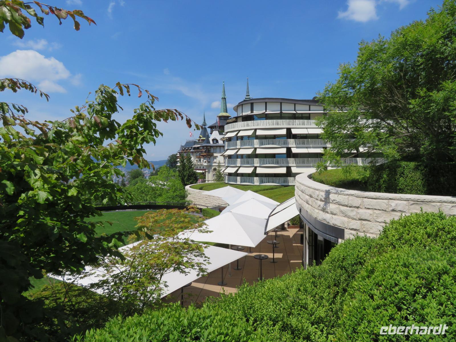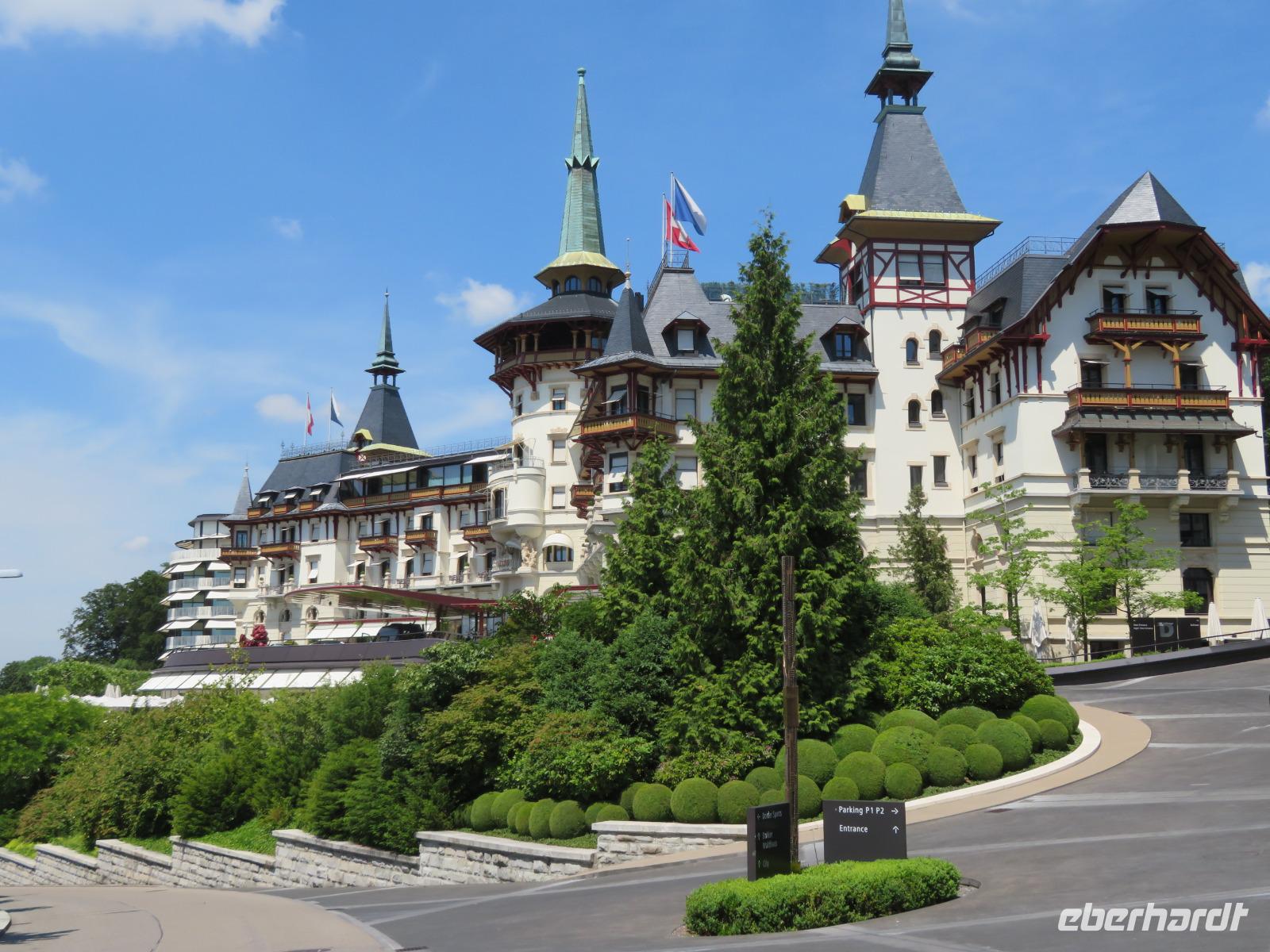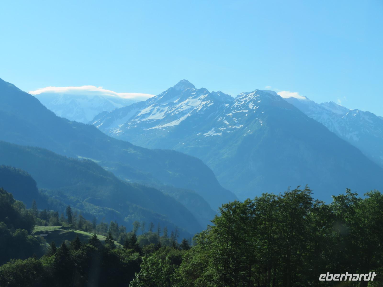 Den heutigen Tag gestalten alle nach ihren Wünschen. Das Wetter zeigt sich von seiner durchwachsenen Seite. Am Vormittag verabreden sich einige Gäste mit mir zur gemeinsamen Fahrt mit der Bödeli-Bahn einem kleinen Zug, der durch Interlaken fährt. Wir fahren zunächst durch den Ort und nach Unterseen. Dann geht es in den Jungfrau-Park. Hier sehen wir einen wunderschönen Film über das Berner Oberland. Die herrliche Landschaft wird im Lauf der vier Jahreszeiten gezeigt und sowohl auf eine normale Leinwand, aber auch auf eine Leinwand unter unseren Sitzen projiziert. So haben wir das Gefühl, wir fliegen über das Berner Oberland mit seinen landschaftlichen Schönheiten. Uns hat der Film sehr gut gefallen. Am Nachmittag nutzen wir ganz unterschiedlich die Ziet. Einige fahren auf den Harder Kulm, den Hausberg von Interlaken. Die Standseilbahn bringt die Gäste in nur 8 Minuten auf 1.323 Meter Höhe. Die Strecke der Standseilbahn ist auch spektakulär mit bis zu 68% Steigung. Auf dem Hader Kulm bietet sich eine gute Sicht von der Aussichtsplattform über den Thunersee und den Brienzer See und nach Interlaken. Die hohen Berge verstecken sich leider immer wieder in den Wolken, aber ab und zu lugt die Sonne hervor. Einige nutzen die Zeit zum Einkaufen von Mitbringseln und andere erkundeten die Umgebung von Interlaken mit dem Bus oder dem Zug. Ein schöner Tag ging wieder mit einem vorzüglichen Abendmenü zu Ende.