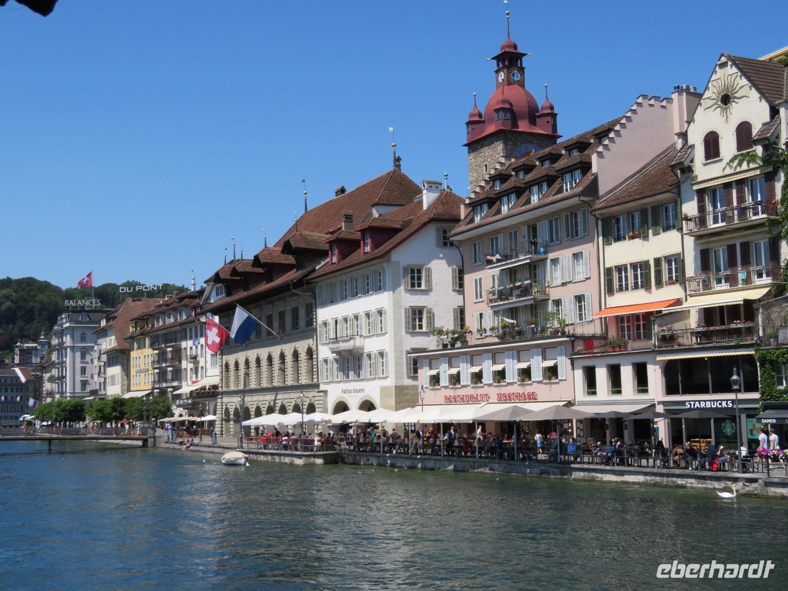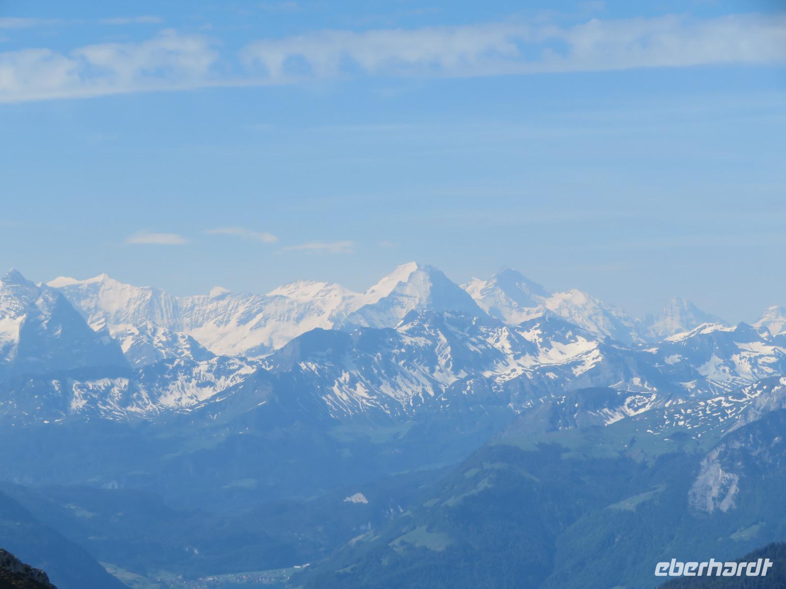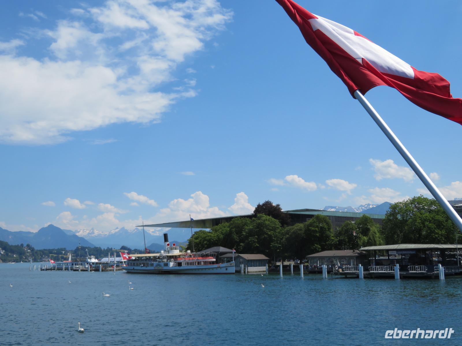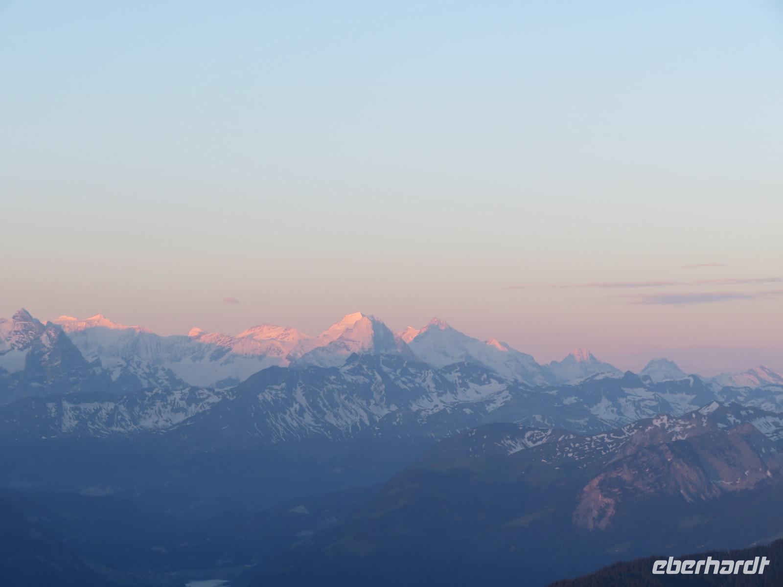 Am Morgen begrüßt uns ein fast klarer Himmel. Einige treibt es schon kurz nach 05.00 Uhr aus den Betten und den Zimmern, denn wir wollen den Sonnenaufgang erleben. Die Berge zeigen sich nun in ihrer ganzen Schönheit. Die Sonne versteckt sich zwar etwas in dünnen Wolken, dennoch ist es ein faszinierender Anblick, das Panorama vom Säntis über den Titlis bis hin zu den Berner Alpen mit Eiger, Mönch und Jungfrau, Schreckhorn und Blümlisalp im ersten Morgenlicht zu sehen. Wir sehen sogar ganz nah am Hotel Steinböcke, die auch die ersten Sonnenstrahlen des Tages genießen und friedlich grasen. Nach dem ausgezeichneten Frühstück heißt es Abschied nehmen vom Pilatus. Die Kabinen- und Gondelbahn bringen uns nach Kriens. Wir besteigen den Bus und fahren nach Luzern. Die Stadt am Nordufer des Sees erleben wir bei einer kurzweiligen Stadtführung. Dabei weiß Susy, unsere Stadtfüherin, so manch interessante Geschichte zu erzählen. Wir sehen das Löwendenkmal und die Museggmauer, die alte Stadtmauer mit ihren trutzigen Türmen. Anschließend spazieren wir über das Wahrzeichen der Stadt, die Kapellbrücke, die einst Teil der Stadtbefestigung war. Wir hören die Geschichte des großen Brandes der Brücke im Jahr 1993. Durch die engen Gassen und über kleine Plätze mit den hübschen, oft bunt bemalten Bürgerhäusern und Brunnen geht es durch die Altstadt. Uns begeistert die Schönheit Luzerns. Anschließend bleibt genügend Zeit zum Bummeln durch die Stadt und für eigene Entdeckungen. Wir treffen uns am Bahnhof und nun beginnt die Fahrt mit dem Luzern-Interlaken-Express, welche wir mal testen. Unsere Tour führt uns vorbei am Sarnersee und am Lungernsee über den Brünigpass ins Haslital. Wir fuahren durch Brienz am Brienzer See nach Interlaken. Es ist eine sehr schöne Reise durch die herrliche Landschaft der Zentralscheiz und des Berner Oberlandes. Im „Carlton Europe Vintage Hotel" werden wir bereits erwartet. Mit einem sehr schmackhaften Abendessen endet unser erlebnisreicher Tag.