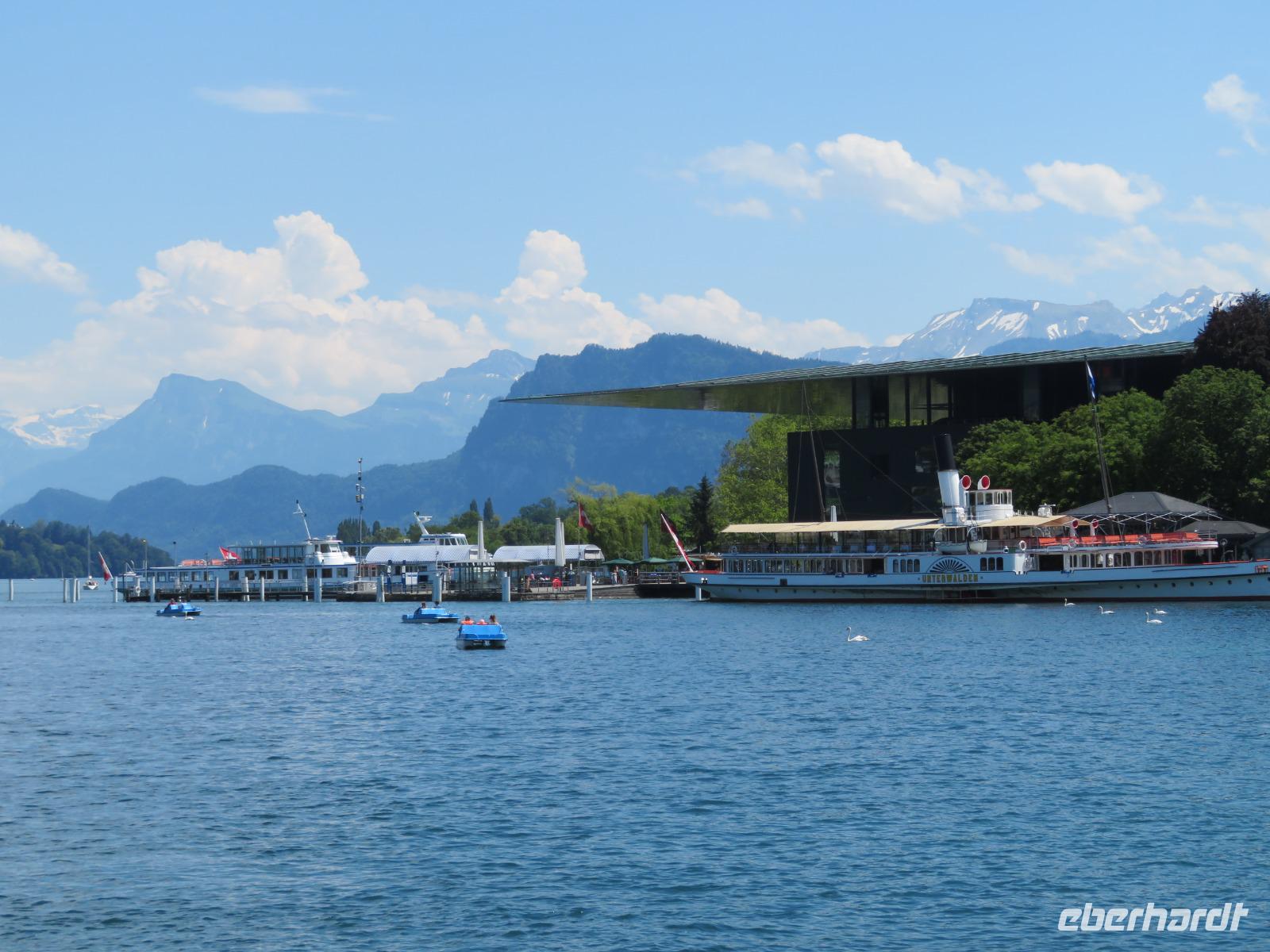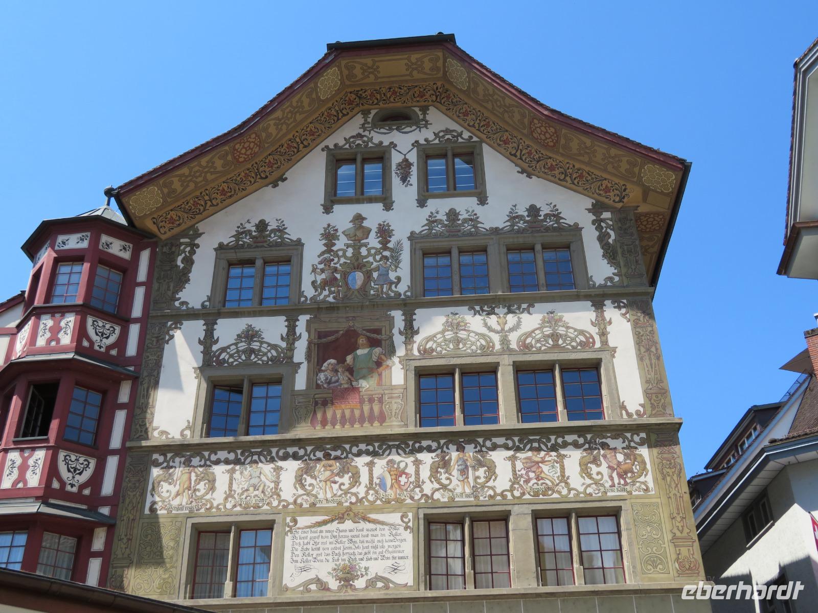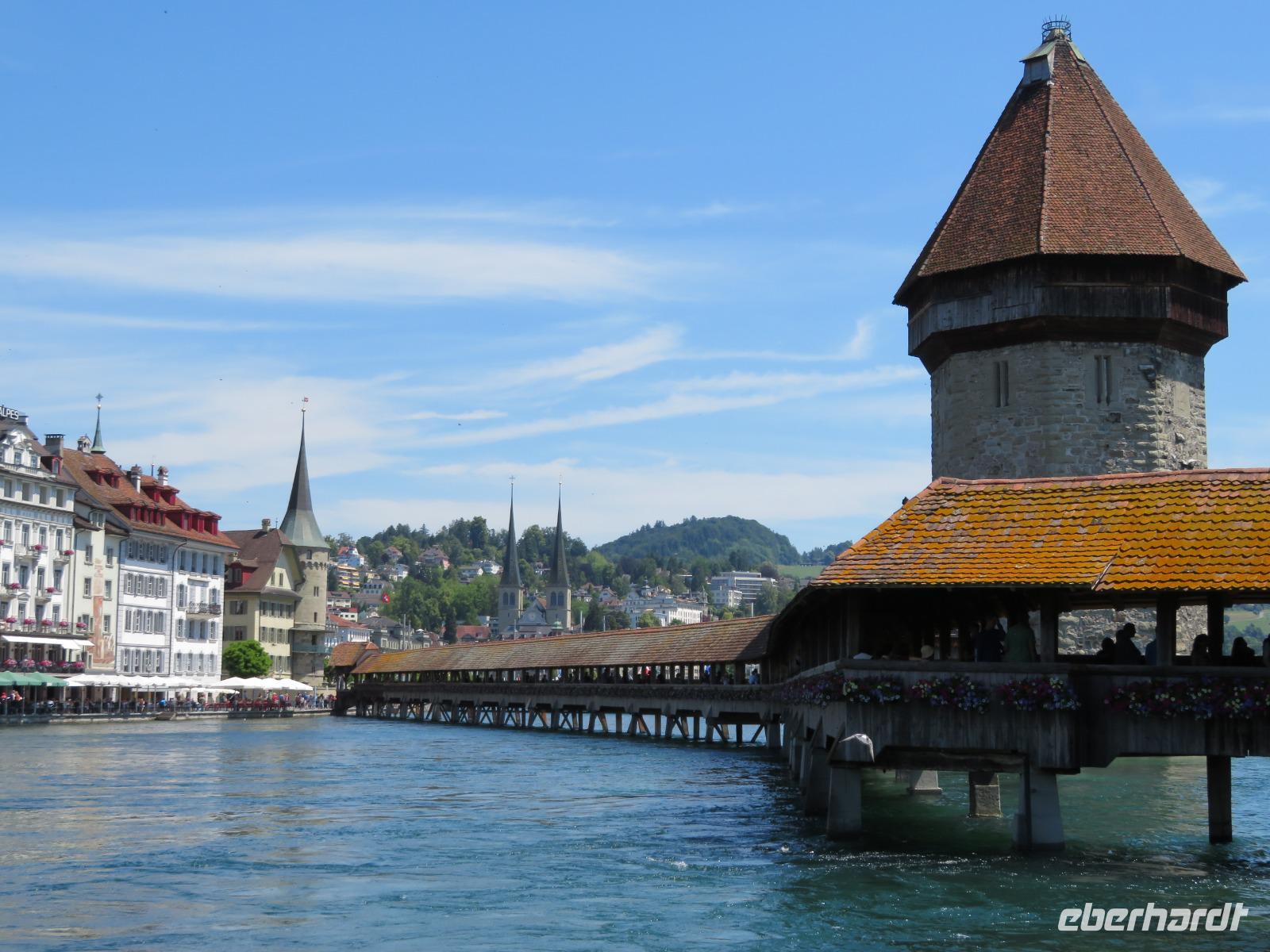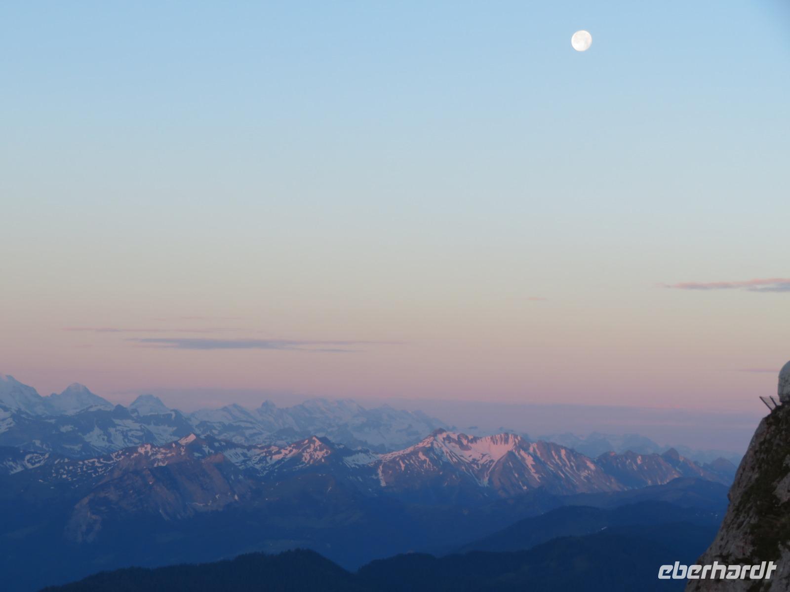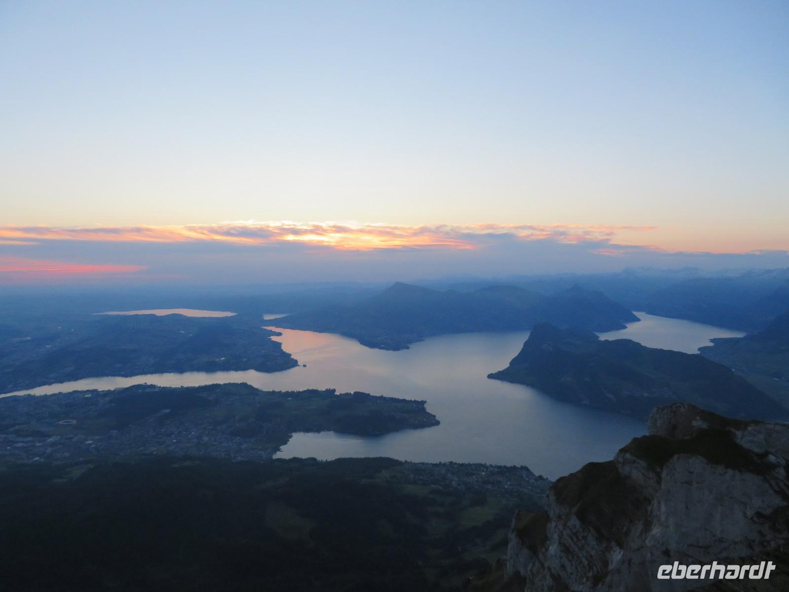 Am Morgen begrüßt uns ein fast klarer Himmel. Einige treibt es schon kurz nach 05.00 Uhr aus den Betten und den Zimmern, denn wir wollen den Sonnenaufgang erleben. Die Berge zeigen sich nun in ihrer ganzen Schönheit. Die Sonne versteckt sich zwar etwas in dünnen Wolken, dennoch ist es ein faszinierender Anblick, das Panorama vom Säntis über den Titlis bis hin zu den Berner Alpen mit Eiger, Mönch und Jungfrau, Schreckhorn und Blümlisalp im ersten Morgenlicht zu sehen. Wir sehen sogar ganz nah am Hotel Steinböcke, die auch die ersten Sonnenstrahlen des Tages genießen und friedlich grasen. Nach dem ausgezeichneten Frühstück heißt es Abschied nehmen vom Pilatus. Die Kabinen- und Gondelbahn bringen uns nach Kriens. Wir besteigen den Bus und fahren nach Luzern. Die Stadt am Nordufer des Sees erleben wir bei einer kurzweiligen Stadtführung. Dabei weiß Susy, unsere Stadtfüherin, so manch interessante Geschichte zu erzählen. Wir sehen das Löwendenkmal und die Museggmauer, die alte Stadtmauer mit ihren trutzigen Türmen. Anschließend spazieren wir über das Wahrzeichen der Stadt, die Kapellbrücke, die einst Teil der Stadtbefestigung war. Wir hören die Geschichte des großen Brandes der Brücke im Jahr 1993. Durch die engen Gassen und über kleine Plätze mit den hübschen, oft bunt bemalten Bürgerhäusern und Brunnen geht es durch die Altstadt. Uns begeistert die Schönheit Luzerns. Anschließend bleibt genügend Zeit zum Bummeln durch die Stadt und für eigene Entdeckungen. Wir treffen uns am Bahnhof und nun beginnt die Fahrt mit dem Luzern-Interlaken-Express, welche wir mal testen. Unsere Tour führt uns vorbei am Sarnersee und am Lungernsee über den Brünigpass ins Haslital. Wir fuahren durch Brienz am Brienzer See nach Interlaken. Es ist eine sehr schöne Reise durch die herrliche Landschaft der Zentralscheiz und des Berner Oberlandes. Im „Carlton Europe Vintage Hotel" werden wir bereits erwartet. Mit einem sehr schmackhaften Abendessen endet unser erlebnisreicher Tag.