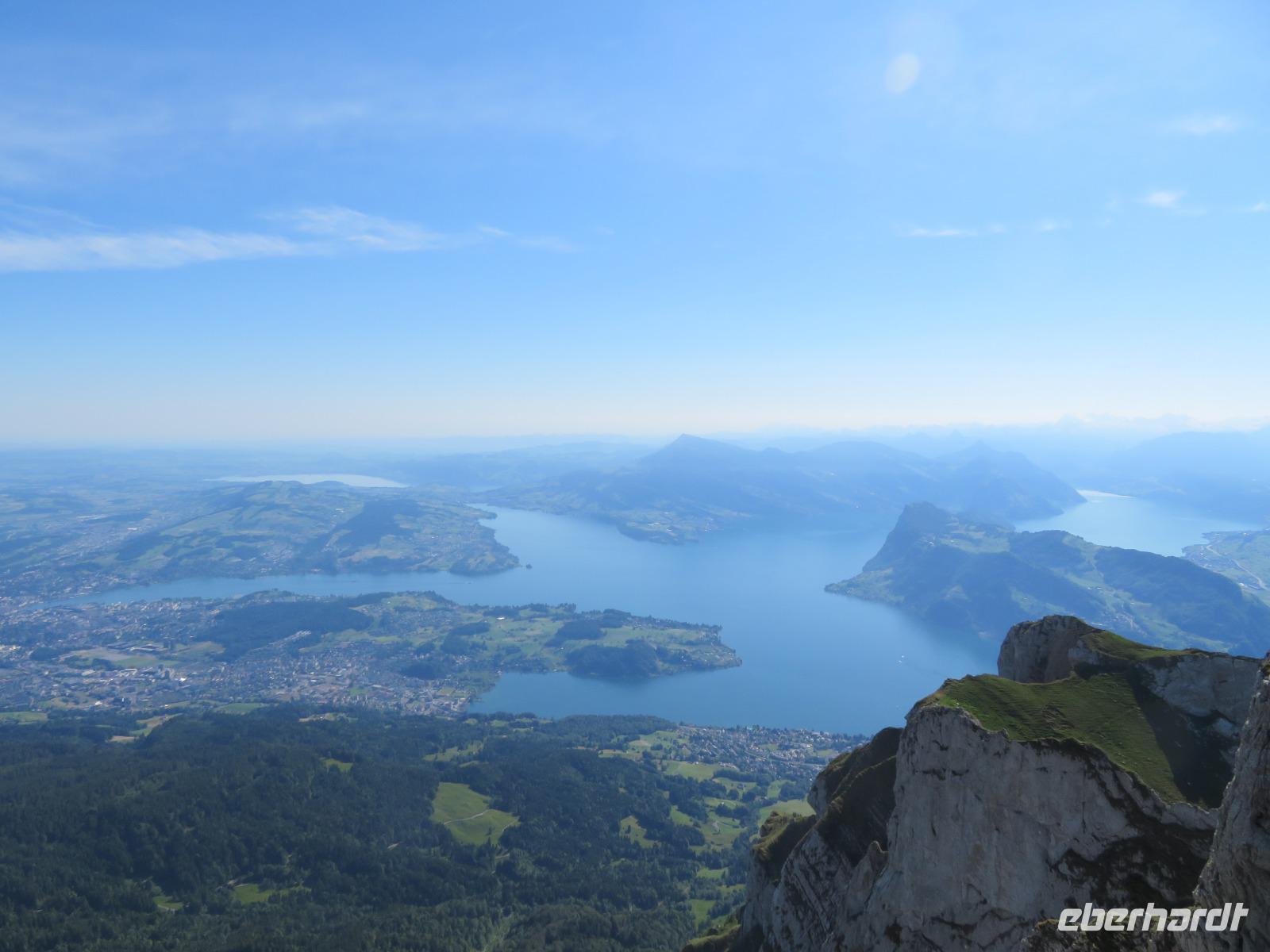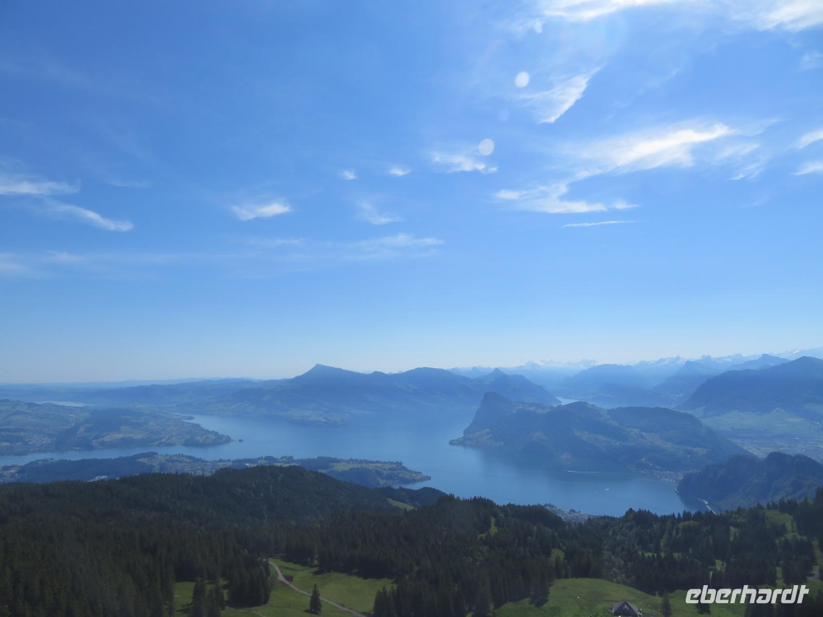 Am Morgen zeigt sich die Schwägalp wieder bei strahlendem Sonnenschein. Die vorwitzige Ziege, die sich bereits die letzten Tage immer wieder in der Nähe des Hotels aufhielt, weckt uns auch heute mit ihrem Gemeckere. Die Kühe kommen aus Ihren Ställen und grasen friedlich mit Glockengebimmel auf den Weiden. Für uns heißt es nun Abschied nehmen von der heilen Welt auf der Schwägalp. Mit dem Bus fahren wir durch das Appenzeller Land zum Zürichsee und weiter nach Zürich. Die größte Stadt der Schweiz bildet gleichzeitig das Finanzzentrum des Landes. Während unserer Stadtrundfahrt lernen wir die bedeutendsten Sehenswürdigkeiten kennen. Einen ersten Stopp legen wir am See e ein und sehen die Fontaine, die die Credit Suisse der Stadt geschenkt hatte. Die Tour führt uns auf den Zürichberg mit dem berühmten Hotel Dolder und dem Hauptsitz des Fussball-Weltverbandes FIFA. Durch die noblen Villenviertel geht es zurück in die Stadt. Wir sehen den beeindruckenden Bau von Gottfried Semper, den er für die Universität Zürichs bauen lies. Anschließend bleib Zeit zu eigenen Unternehmungen. Wir sehen das Fraumünster und spazieren durch die engen Gassen der Altstadt oder über die berühmte Bahnhofstraße mit den vielen Nobelboutiquen. Am Nachmittag setzen wir unsere Fahrt in die Zentralschweiz fort. Vorbei an Luzern bringt uns der Bus nach Alpnachstad. Wir bestiegen die steilste Zahnradbahn der Welt und fahren auf einer spektakulären Strecke mit bis zu 48% Steigung auf den Pilatus. Diese einzigartige Bahn wurde bereits 1889 nach nur zwei Jahren Bauzeit eröffnet. Einige technische Anlagen stammen noch aus der Zeit der Erbauer und funktionieren, wie am ersten Tag. Im Hotel „Bellevue" beziehen wir unsere Zimmer. Leider zieht ein Gewitter über die Berge und es regnet stark. Dennoch geniessen wir den Aufenthalt auf dem 2.132 Meter hohen Berg. Den Blick zum Vierwaldstättersee mit Luzern können wir noch am Abend erleben. Die Berge der Berner Alpen stecken jedoch in dicken Wolken. Im Queen Viktoria Saal werden wir mit einem ausgezeichneten Abendessen verwöhnt.