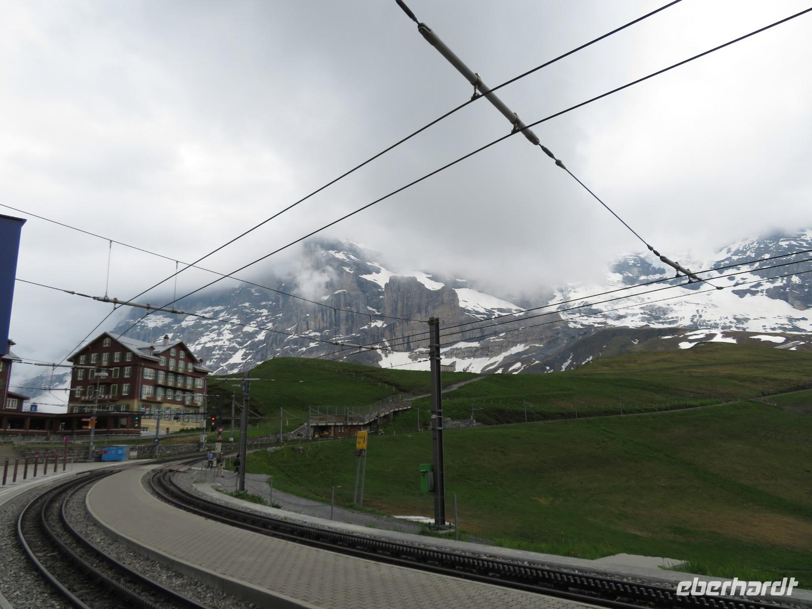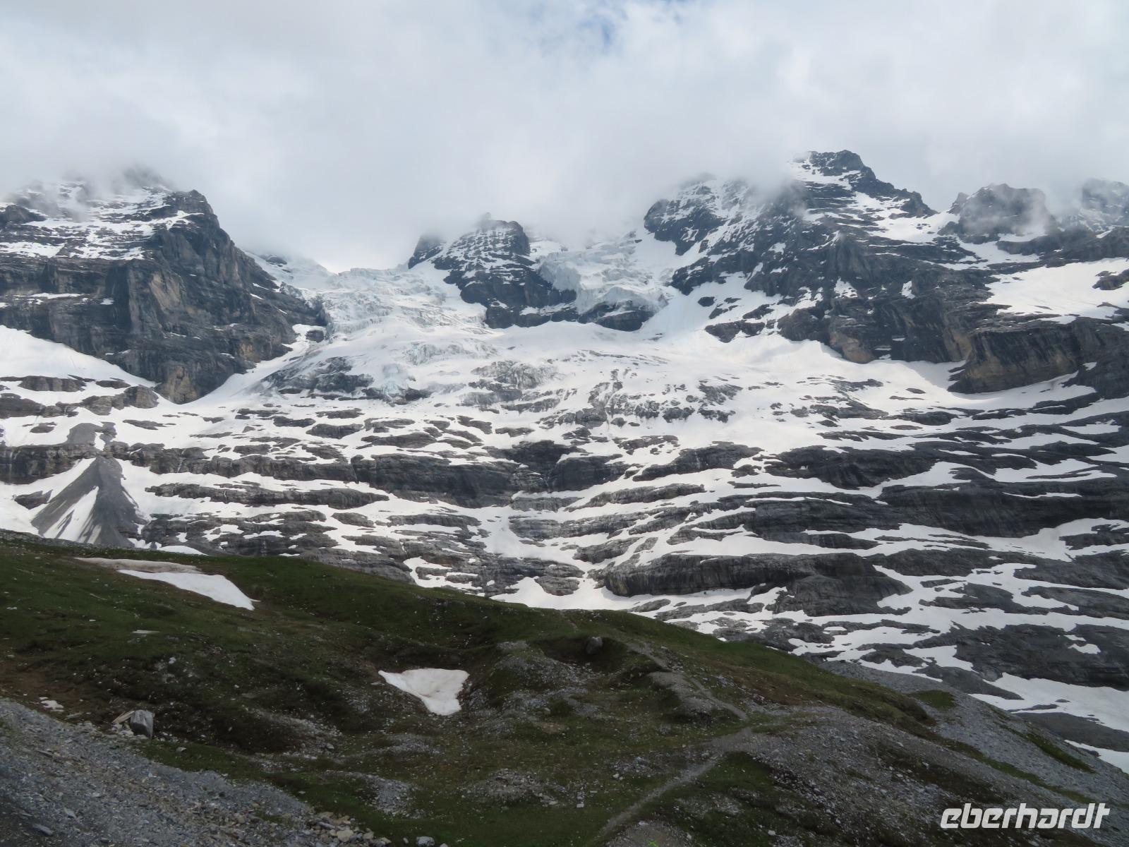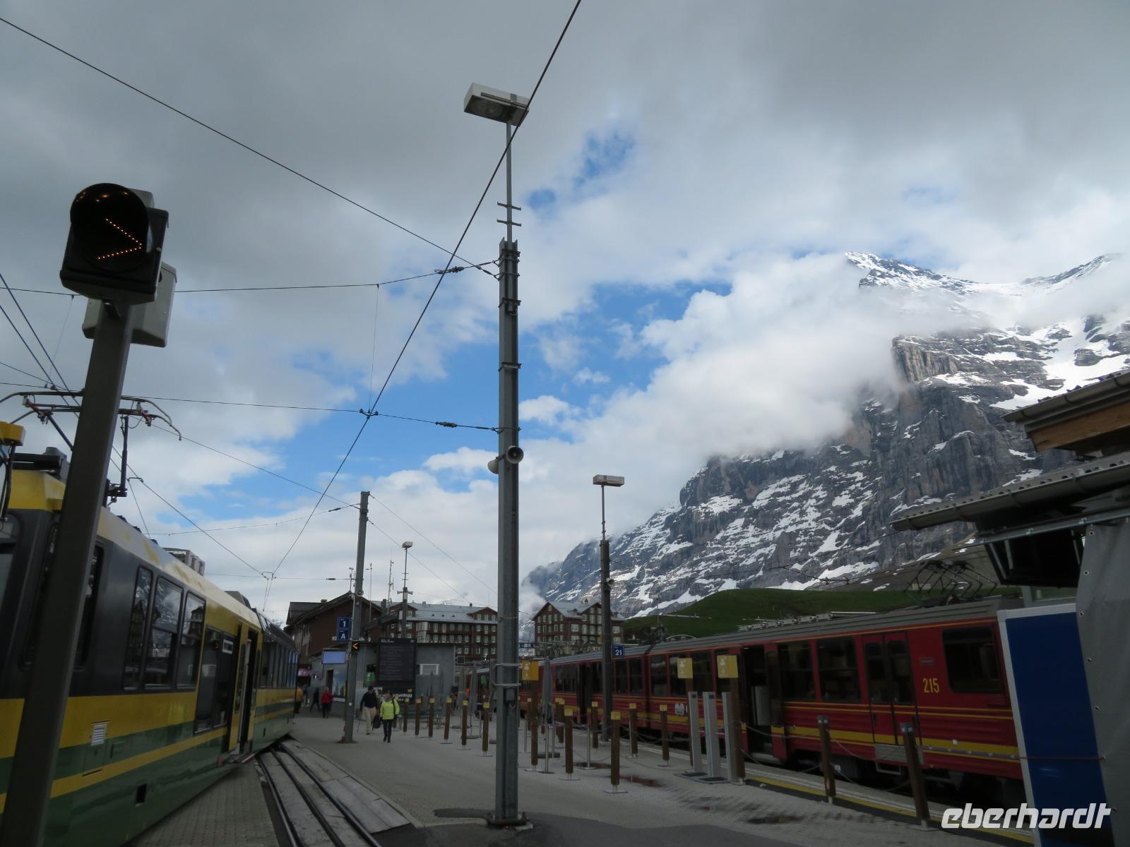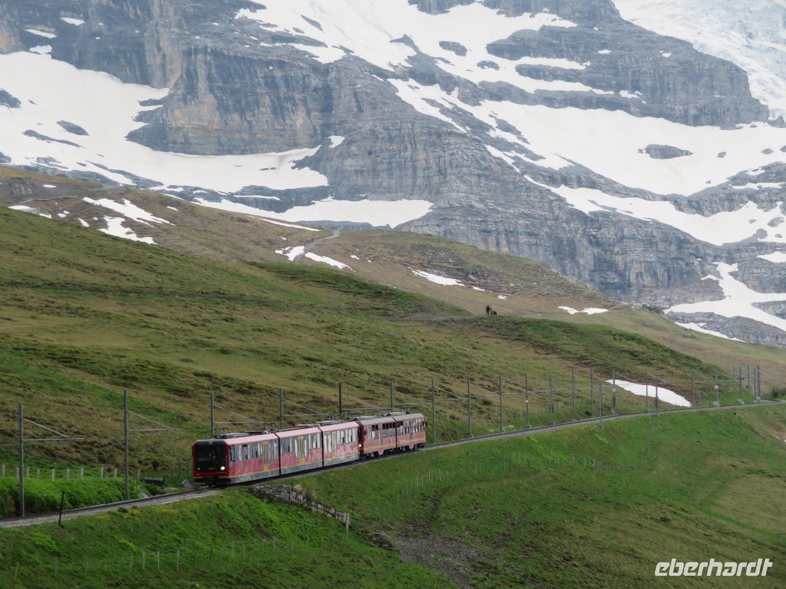 Am heutigen Tag stecken die Berge in dicken Wolken. Das tut aber unserer guten Laune keinen Abbruch und wir sind gespannt auf das Erlebnis auf dem Jungfraujoch. Mit dem Zug fahren wir zunächst nach Grindelwald. Weiter geht es mit der Wengeralp-Bahn zur Kleinen Scheidegg. Schon während der Fahrt sehen wir die dicken Wolken in der Bergwelt des Berner Oberlandes. Angekommen auf der Kleinen Scheidegg können wir nur einen kleinen Teil der Eigernordwand sehen. Nach einem kurzen Aufenthalt fahren wir mit der Jungfraubahn durch den Eiger und den Mönch. Am Eismeer, einem riesigen Gletscherabbruch, legt die Bahn einen kurzen Stopp ein. Doch leider ist auch hier der Gletscher nur zu erahnen. Auf dem Jungfraujoch haben wir genug Zeit während des Rundganges die einmaligen Erlebnisse zu genießen. Auf dem höchsten Aussichtspunkt, der Sphinx erwartetet uns Schneefall und leider keine Sicht. Es gibt jedoch noch viel mehr zu entdecken. Im Berg gehen wir durch die Galerie, die sich mit der Geschichte der Jungfraubahn befasst. Im Eispalast befinden wir uns mitten im Gletschereis ca. 40 Meter unter dem Eis und können schöne Eisplastiken bewundern. Außerdem sehen wir eine Schicht Sägespäne, welche im Jahr 1947 auf den Gletscher aufgebracht wurde, um ihn vor großer Hitze zu schützen. Diese Späne kommen nun im Eispalast wieder zum Vorschein. Auf das Plateau und auf dem Aletschgletscher stehen wir im ewigen Schnee. Wir können nun auch etwas über den Gletscher sehen und der Mönch zeigt sich uns. Nach einem schönen Aufenthalt verlassen wir das Jungfraujoch mit der Bahn wieder Richtung Kleine Scheidegg. Hier wechseln wir nochmals die Bahn und fahren nach Lauterbrunnen. Wir sehen den Männlichen, Wengen und die Loophörner. Ganz beeindruckend sind die vielen Wasserfälle im Lauterbrunnental. Der Staubachfall mit deiner über 300 Meter Fallhöhe ist in seiner vollen Wucht zu sehen. Unmengen von Wasser stürzen auf Grund der immer noch anhaltenden Schneeschmelze in die Tiefe. Von Lauterbrunnen aus bringt uns der Zug der Berner Oberland-Bahn zurück nach Interlaken.