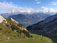 Leider müssen wir aber weiter nach Alpnachstad wo wir mit der steilsten Zahnradbahn der Welt auf den Pilatus fahren, ein Bergmassiv südlich von Luzern gelegen, im Grenzbereich der Kantone Luzern, Nidwalden und Obwalden. Die Fahrt dorthin ist eine richtig tolles Erlebnis !!! Die Zahnradbahn, 1889 in Betrieb genommen, überwindet spielend die 1.635 Meter Höhendifferenz von Alpnachstad auf den Pilatus mit einer maximalen Steigung von 48% und einer Spurweite von 80 cm. Bei schönstem Wetter und klarer Sicht wie im Bilderbuch fahren wir durch Schluchten und erreichen so nach nur 30 Minuten unser Ziel auf über 2000 Meter Meereshöhe. Viele der 22 Reisegäste sind schlichtweg nur ergriffen und beeindruckt während dieser Bergfahrt. Bei anderen habe ich fast das Gefühl sie würden Fliegen jagen, wenn sie von einer Fensterseite auf die andere springen und immer wieder mit der Kamera in die Luft halten - und staunen. Ich lehne mich zurück und schmunzle, es macht mir Spaß zu sehen, wie viel Freude und Begeisterung doch die Gäste bei dieser Fahrt haben. Bei Ankunft in unserem Hotel Bellevue, hoch auf dem Berg bleibt uns bis zum Abendessen noch Zeit, um die Umgebung ein wenig zu erkunden und die fantastischen Blicke auf die anderen Berggipfel und das Flachland zu genießen. Für die meisten der heute auf dem Pilatus Reisenden war die Fahrt mit der Pilatusbahn der absolute Höhepunkt dieser Reise, bislang jedenfalls. Im benachbarten Hotel Pilatus Kulm erwartet uns ein sehr feines 3 Gang Menü, das durch außerordentlich guten Service gekrönt wird. So lassen wir den Abend in einer sehr lustigen Runde ausklingen.