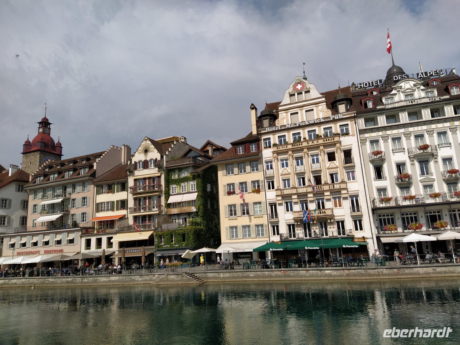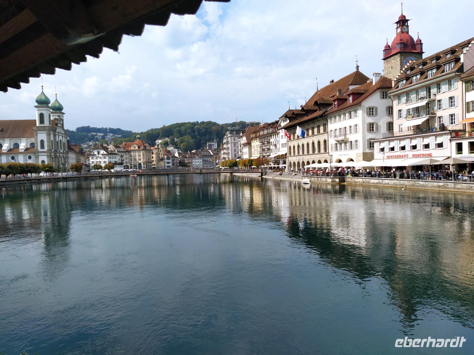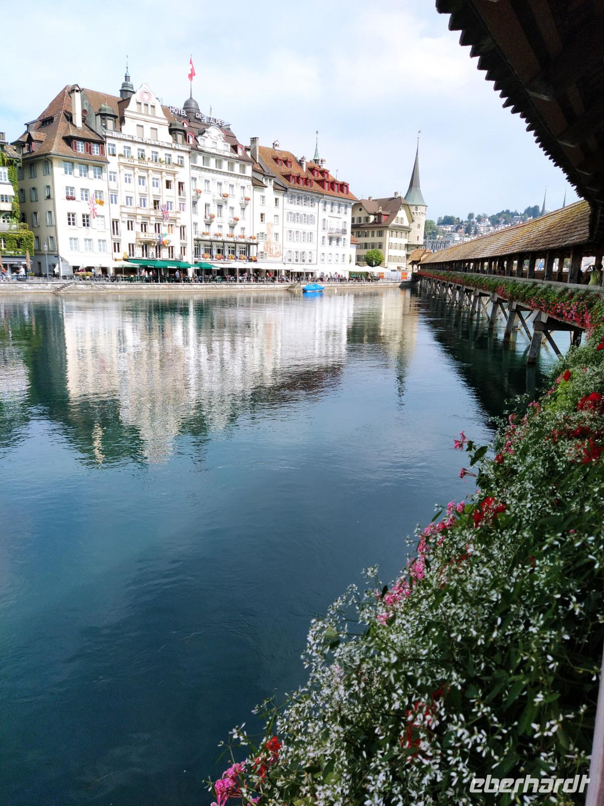 Auf dem Inseliparkplatz treffen wir unsere Reiseführerin Susy. Sie scheint hier in Luzern wirklich jede Ecke zu kennen, mit Charme und Humor führt sie uns zwei Stunden durch die Stadt und zeigt uns die schönsten Plätze und Sehenswürdigkeiten. Im Anschluß haben wir sich nochmals Zeit zum "freien Auslaufen". Die Hitze ist nicht mehr so groß wie gestern in Zürich, aber es ist warm genug, um einen Kaffee an den Ufern der Reuss zu genießen oder gar noch selbst in den Vierwaldstättersee zu springen. Wir genießen den Tag und jede Stunde jedenfalls in vollen Zügen.