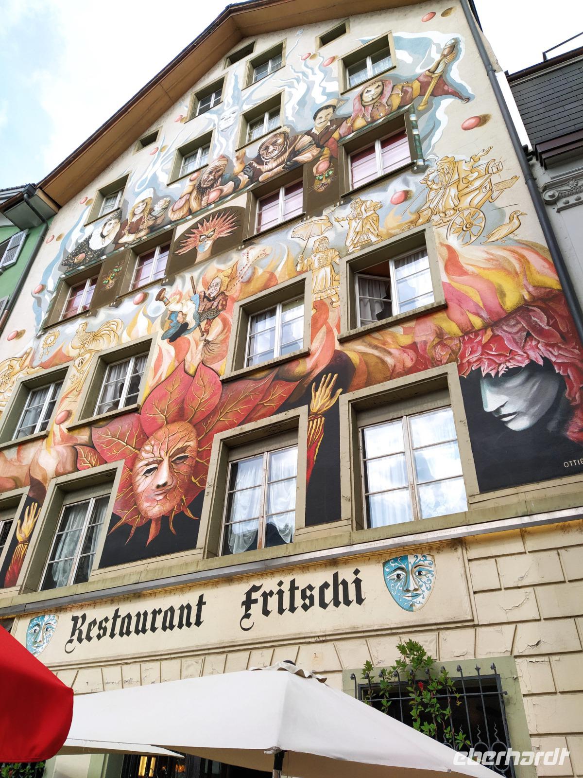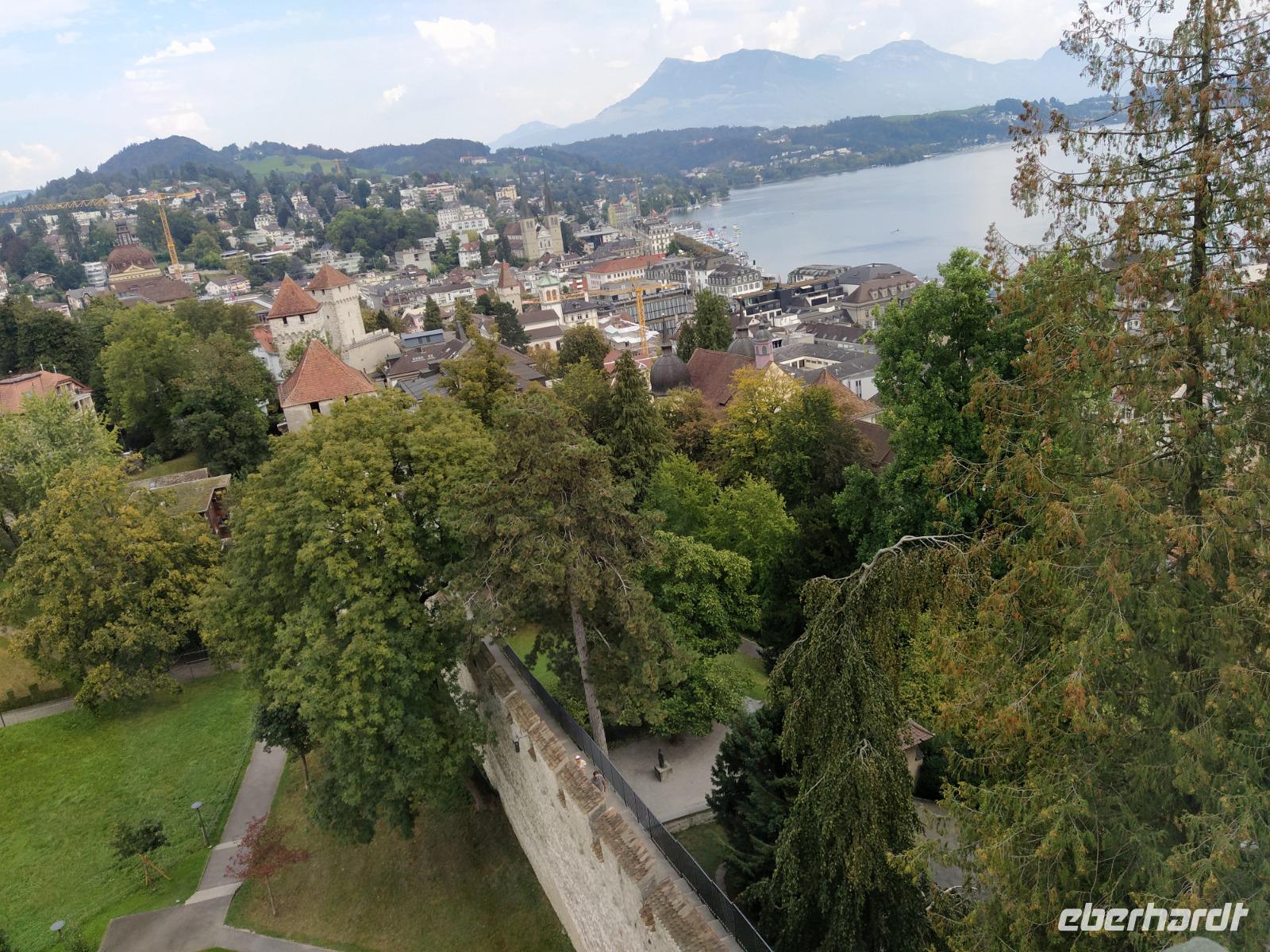 Nach einem genauso leckeren wie reichhaltigen Frühstück nehmen wir heute die Bahn auf der anderen Seite des Pilatus Bergmassivs. Mit der Luftseilbahn "Dragon Ride", mit extra bodentiefen Panoramafenstern schweben wir wieder vom Berg. Auf Fräkmüntegg steigen wir in die Gondelumlaufbahn um und fahren ins Tal. Nach kurzer Fahrzeit in unserem Reisebus, der sich bereits gestern Nachmittag auf dieser Seite des Pilatus, in Kriens platziert hatte, erreichen wir Luzern, Kantonshauptstadt.