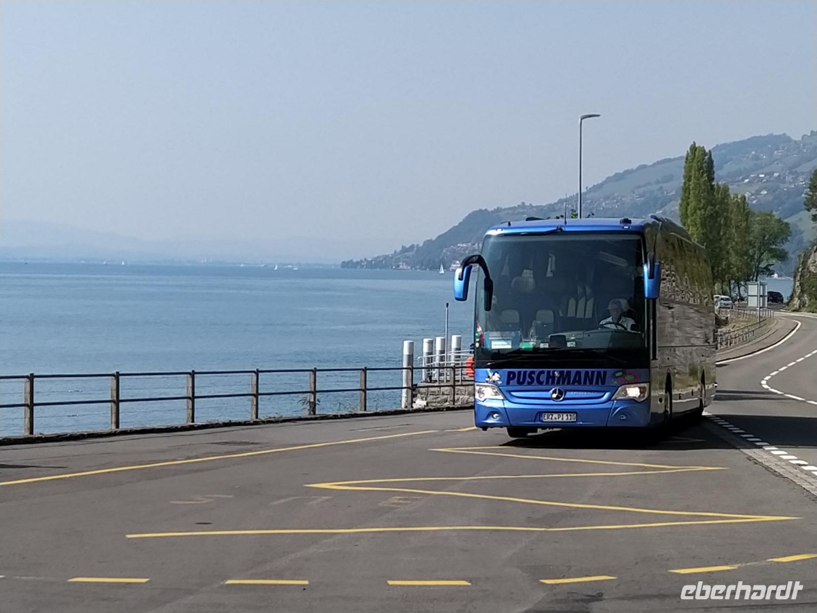Falk, unser Busfahrer, hat morgens schon bei schönstem Sonnenschein den Bus geholt und steht pünktlich vor dem Hotel. Heute führt uns unser gemeinsamer Ausflug entlang des Thunersees nach Thun führen.
