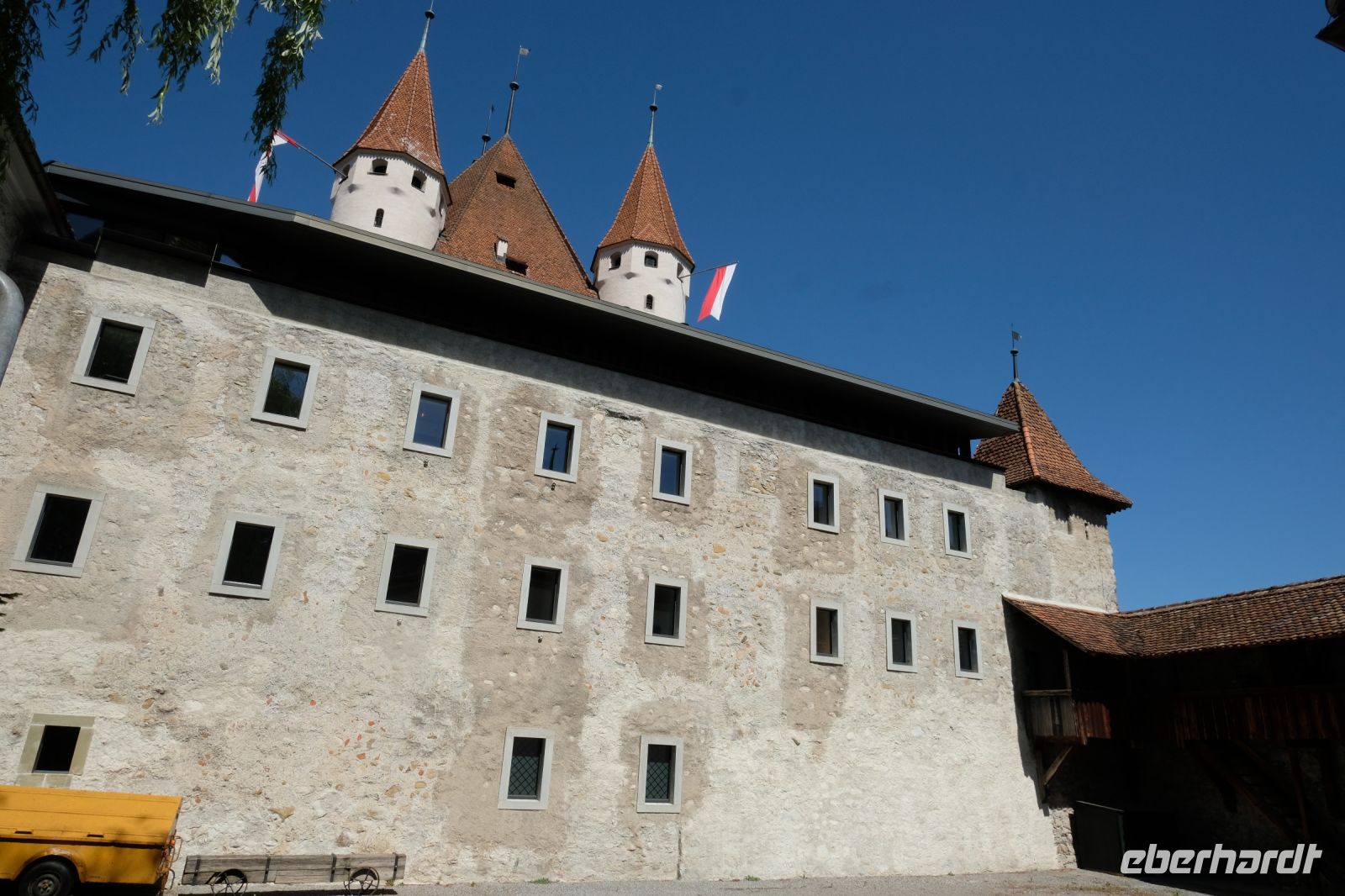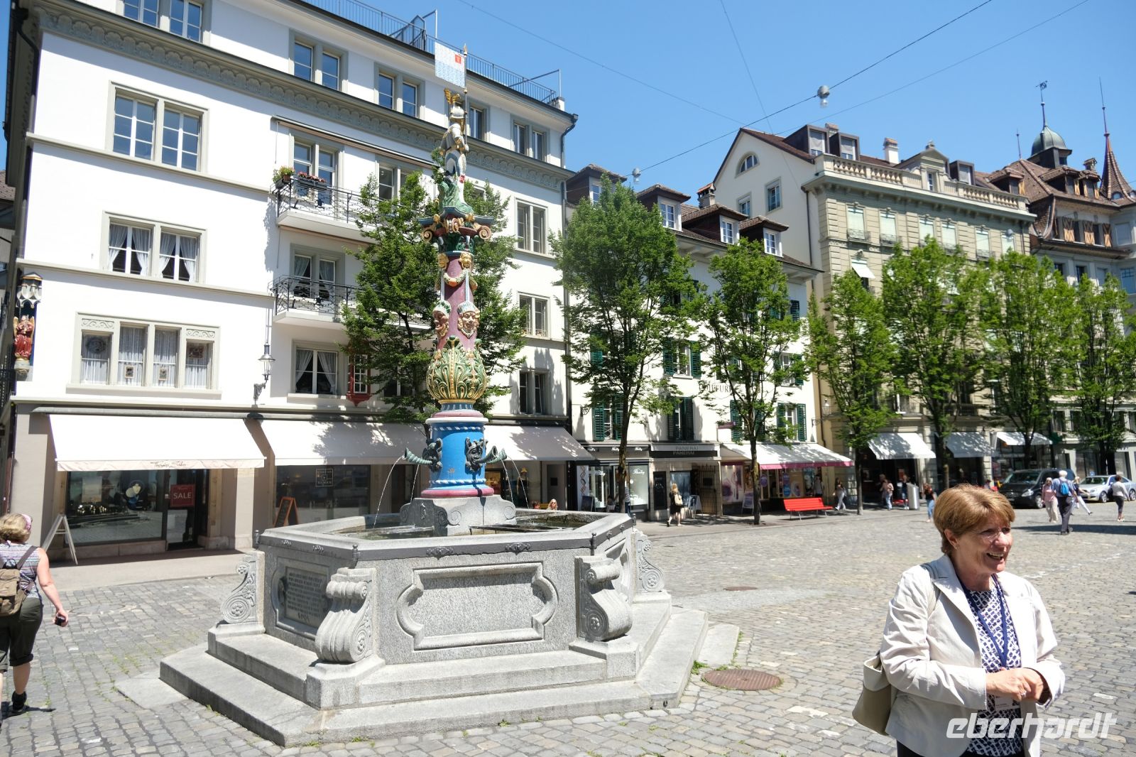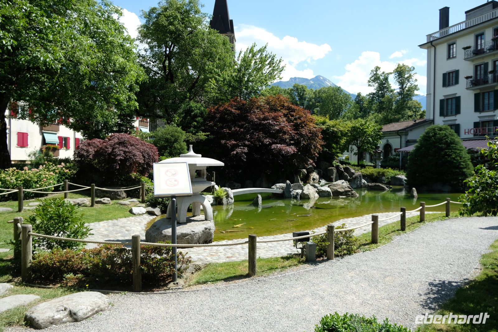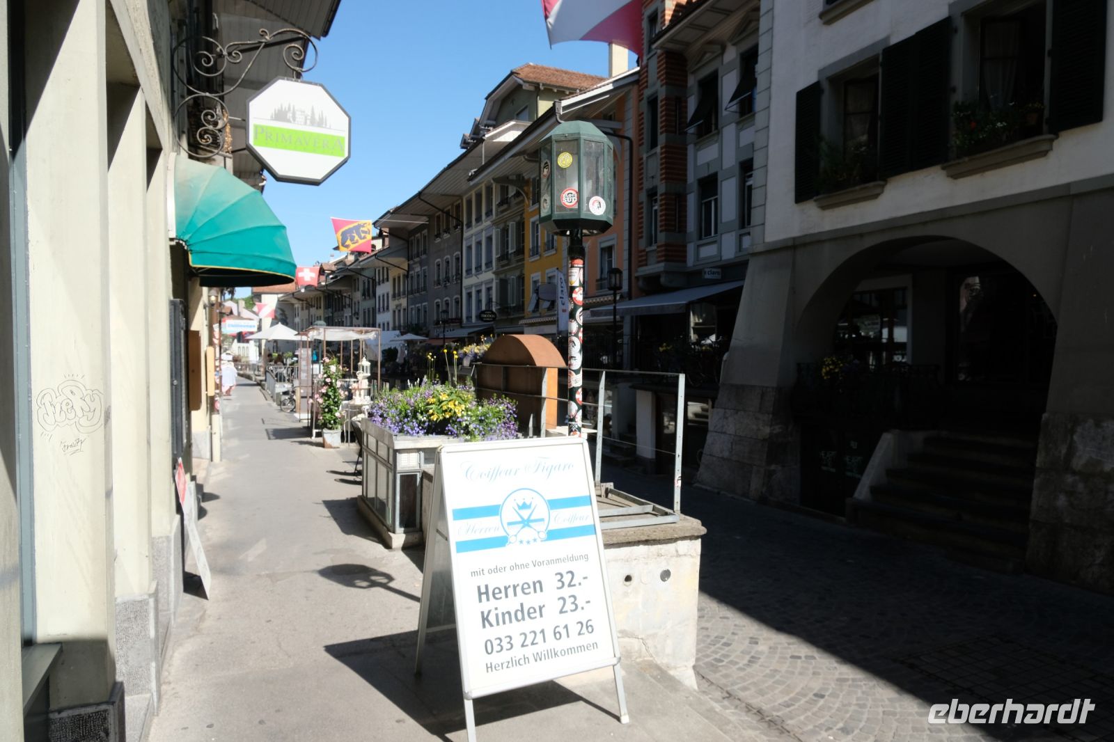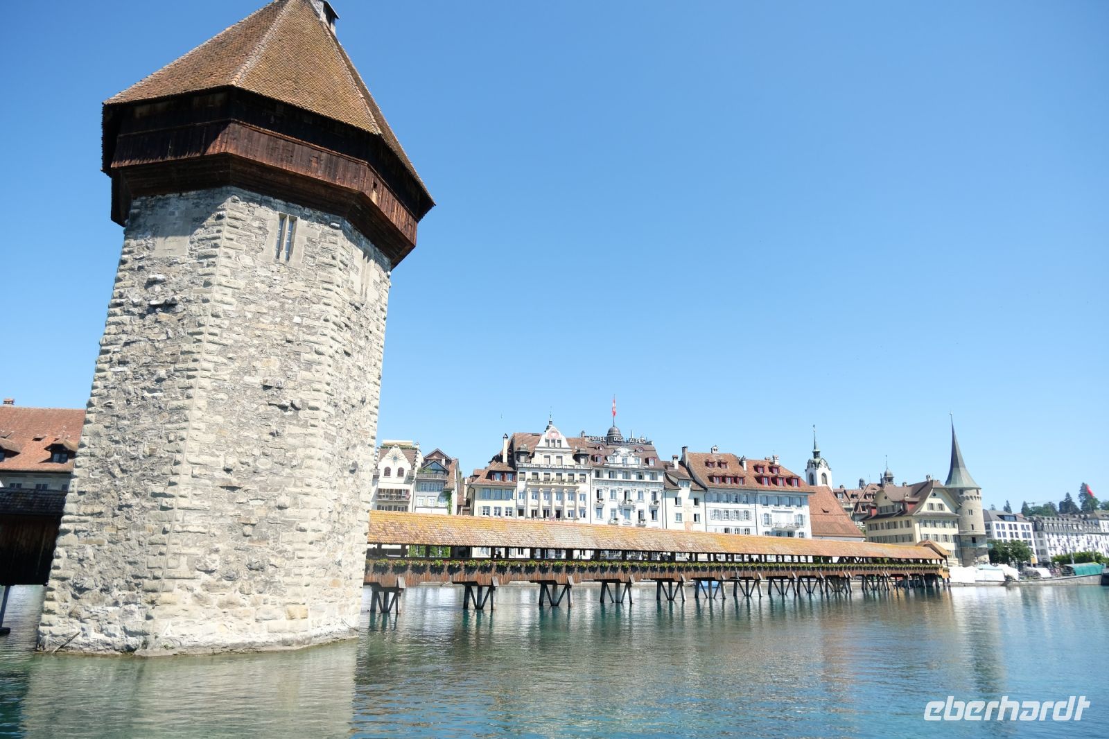 Der heutige Tag stand ganz im Zeichen von Interlaken und dessen schöner Umgebung. Die meisten unserer Gäste unternahmen an diesem herrlichen Sommertag einen Ausflug auf den Harder Kulm, den Hausberg Interlakens. Die Talstation der modernen Standseilbahn war immerhin nur einen kurzen Fußweg von unserem Hotel entfernt und durch die Vorlage unserer Gästekarte konnten wir zu einem ermäßigten Preis in nur etwa 10 Minuten hinauffahren. Hätte Interlaken einen König, dann würde dieser mit großer Sicherheit hier auf dem Kulm residieren, denn von der Aussichtsplattform auf 1.322 m ü. d. M. sähe er gnädig auf Brienzer- und Thunersee hinunter oder würde Eiger, Mönch und Jungfrau betrachten. Das Panorama-Restaurant auf dem Harder Kulm erinnert nämlich tatsächlich an ein Schloss und um dieses zu besuchen, braucht man allerdings kein König zu sein. Es war einfach traumhaft und einmalig schön! Am Nachmittag konnten wir dann das städtische Flair Interlakens erleben und nach Herzenslust durch den Ort bummeln.