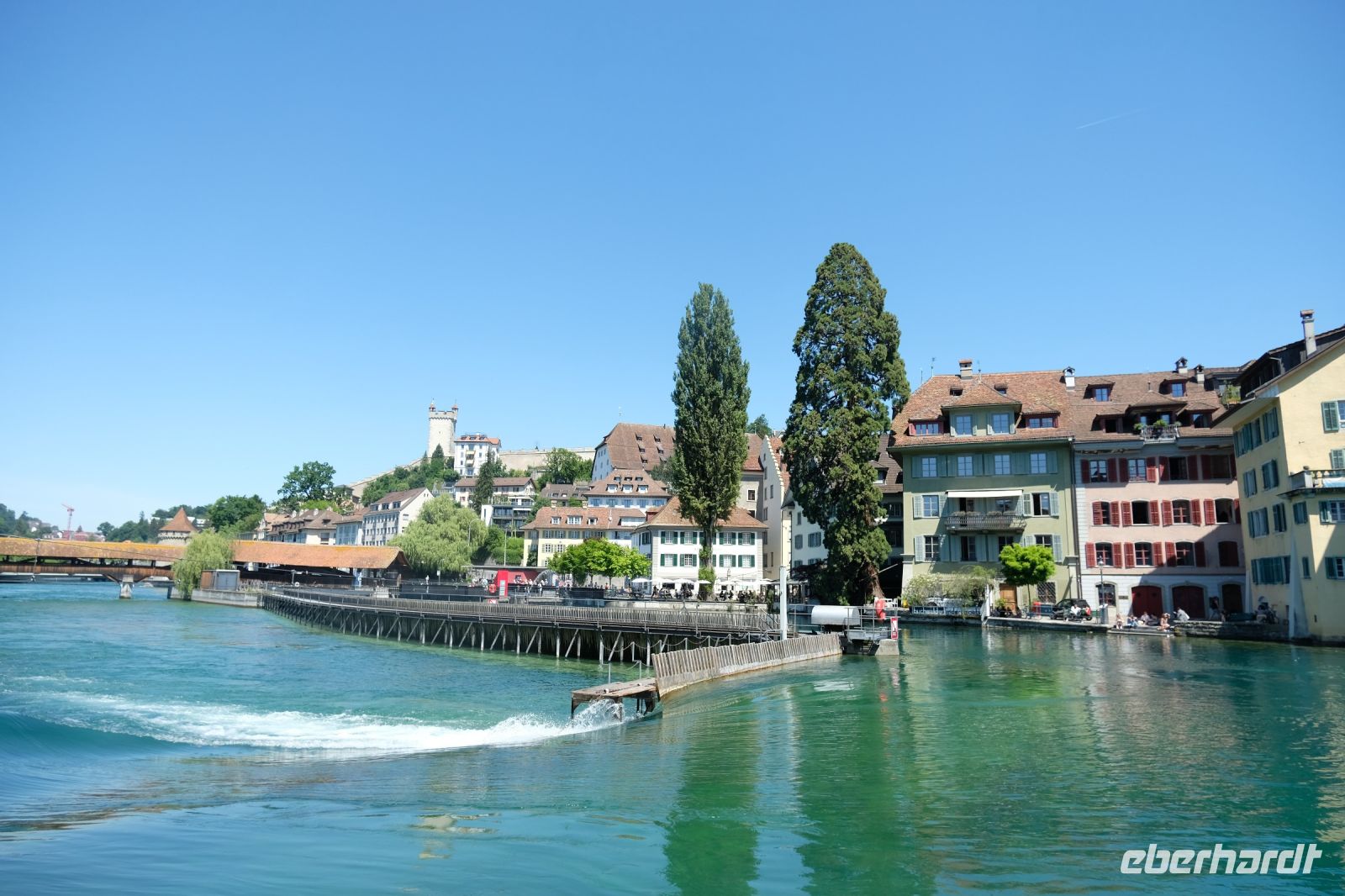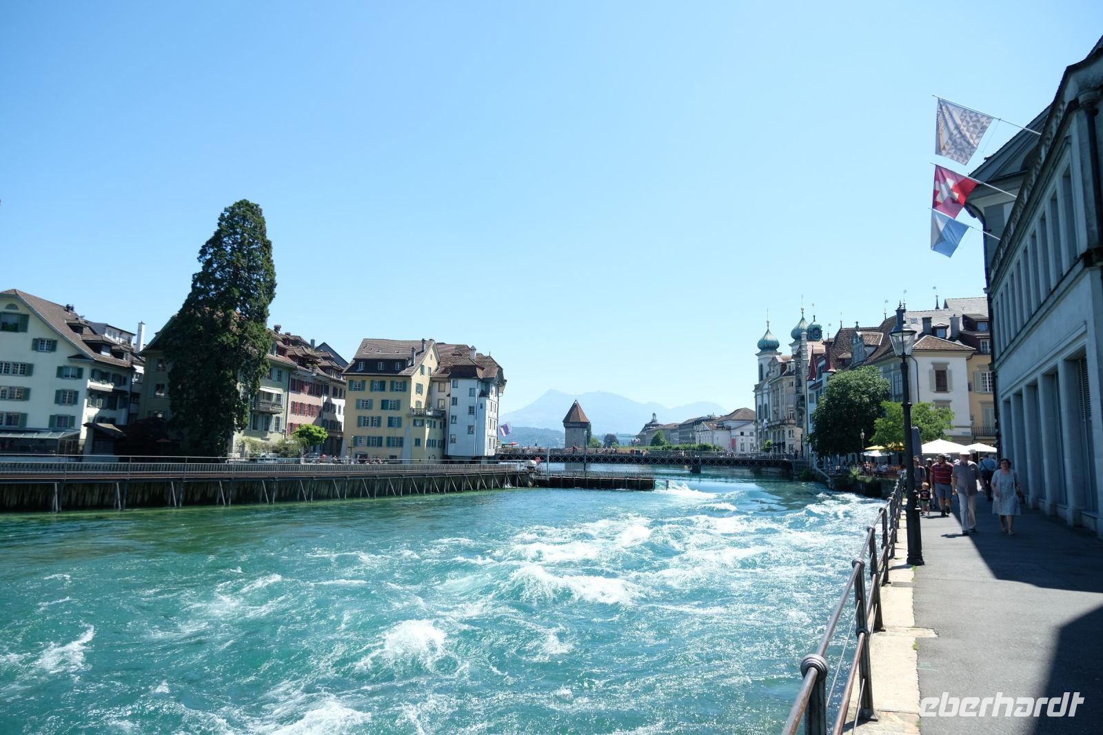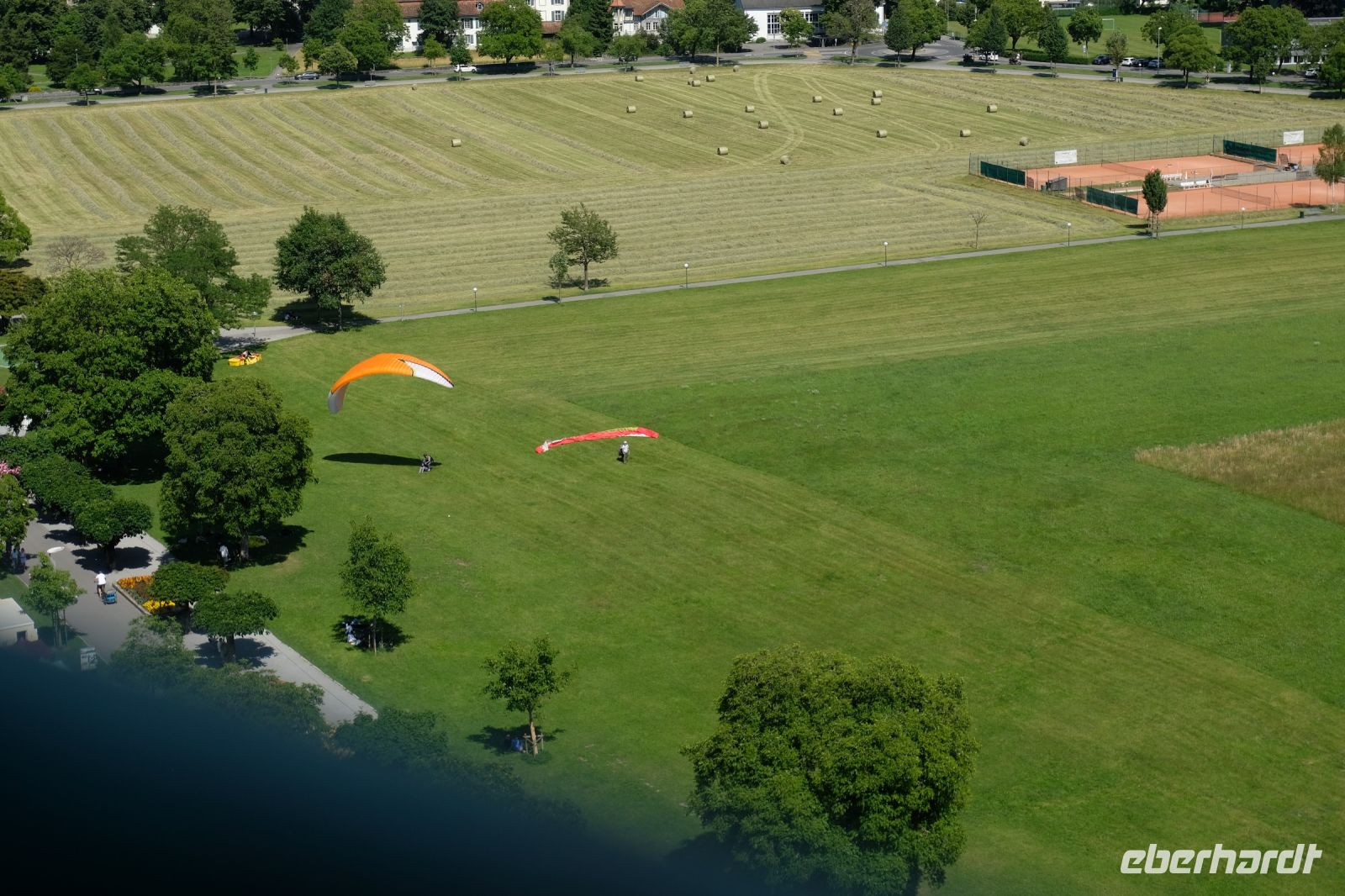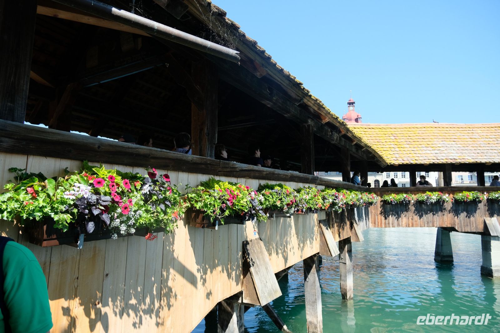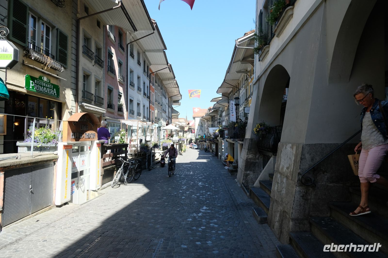 Der heutige Tag stand ganz im Zeichen von Interlaken und dessen schöner Umgebung. Die meisten unserer Gäste unternahmen an diesem herrlichen Sommertag einen Ausflug auf den Harder Kulm, den Hausberg Interlakens. Die Talstation der modernen Standseilbahn war immerhin nur einen kurzen Fußweg von unserem Hotel entfernt und durch die Vorlage unserer Gästekarte konnten wir zu einem ermäßigten Preis in nur etwa 10 Minuten hinauffahren. Hätte Interlaken einen König, dann würde dieser mit großer Sicherheit hier auf dem Kulm residieren, denn von der Aussichtsplattform auf 1.322 m ü. d. M. sähe er gnädig auf Brienzer- und Thunersee hinunter oder würde Eiger, Mönch und Jungfrau betrachten. Das Panorama-Restaurant auf dem Harder Kulm erinnert nämlich tatsächlich an ein Schloss und um dieses zu besuchen, braucht man allerdings kein König zu sein. Es war einfach traumhaft und einmalig schön! Am Nachmittag konnten wir dann das städtische Flair Interlakens erleben und nach Herzenslust durch den Ort bummeln.