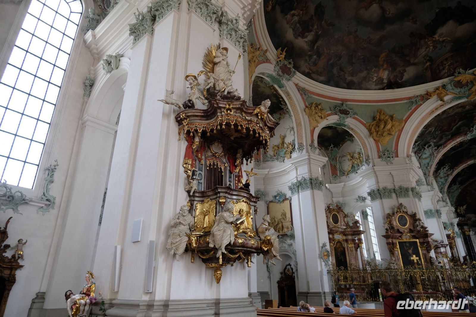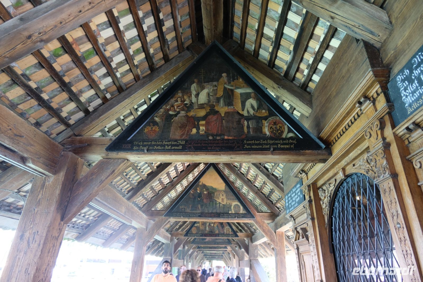 Nach einer erholsamen Nacht auf der Schwägalp und einem sehr reichhaltigen Frühstück unternahmen wir unseren heutigen Tagesausflug. Am Vormittag ging es zunächst erst einmal in das nur etwa 35 Kilometer entfernte St. Gallen. Im 7. Jahrhundert gründete hier der irische Wandermönch Gallus eine Einsiedelei. Aus dieser entstand dann Anfang des 8. Jahrhunderts ein Kloster und bald darauf unter dem Abt Otmar die Benediktinerabtei, die vom 9. bis zum 11. Jahrhundert eine Hochblüte erlebte und durch Schule und Bibliothek zu einem der kulturellen Höhepunkte nördlich der Alpen wurde. Aus einer um das Kloster entstandenen Handwerkersiedlung entwickelte sich letztendlich die Stadt. Wir erlebten auch hier eine informative Stadtführung und erfuhren natürlich viel über die Stadtgeschichte. Besonders beeindruckend waren die meisten von uns vom Besuch der berühmten Stiftsbibliothek, die eine bemerkenswerte Innenarchitektur und überaus reichhaltige Bücherbestände aufweist. Am frühen Nachmittag erreichten wir dann die Gegend nördlich von St. Gallen, den Bodensee. Unseren ersten Stopp legten wir in der Nähe von Altenrhein ein. Dort befindet sich die herrliche Hundertwasser-Markthalle, die wir selbstverständlich sehen mussten. Am südlichen Bodensee-Ufer entlang ging es weiter nach Rorschach. Diese alte Hafenstadt war einst ein bedeutender Güterumschlagplatz für die Stadt St. Gallen. Hier schlenderten wir die Promenade entlang und genossen ganz einfach das Flair des Bodensees. Nach einem erlebnisreichen Tag kehrten wir zur Schwägalp zurück.