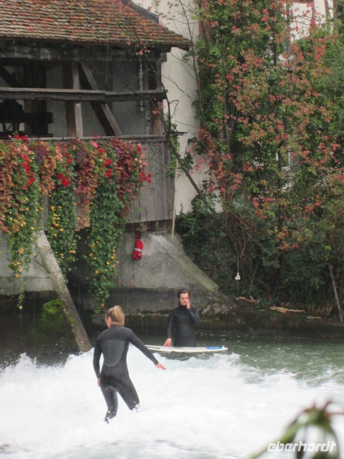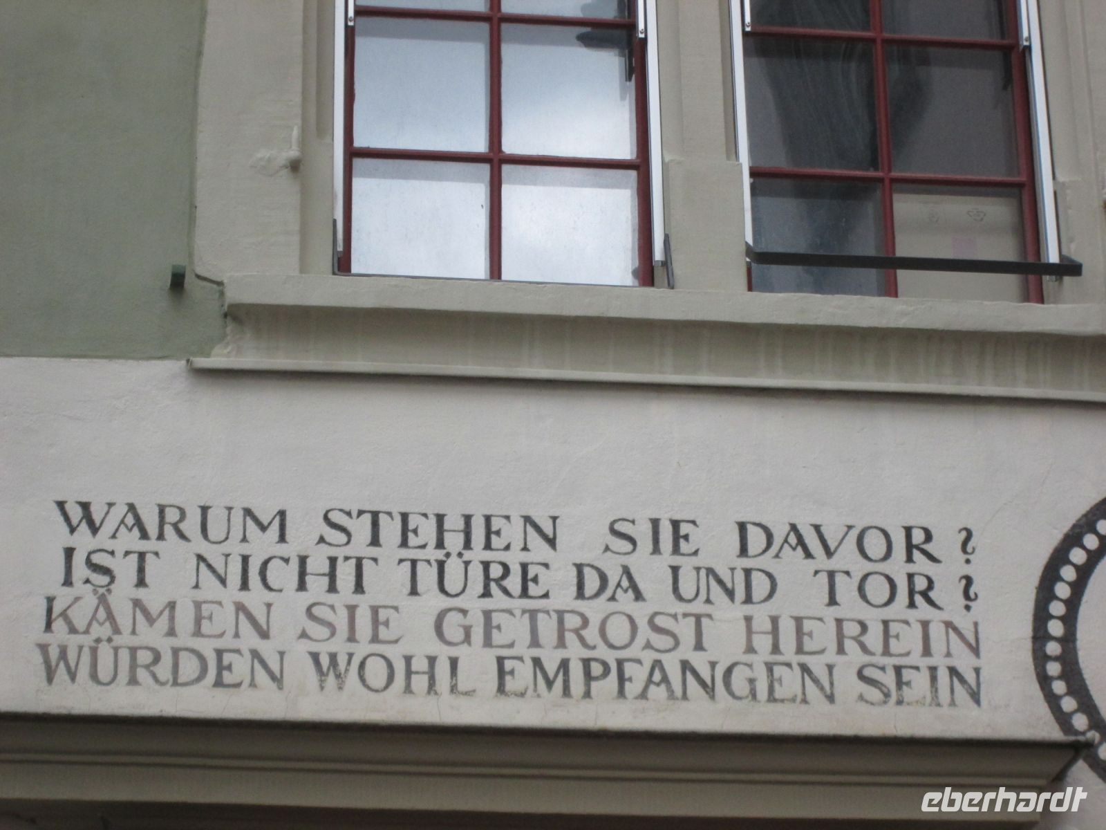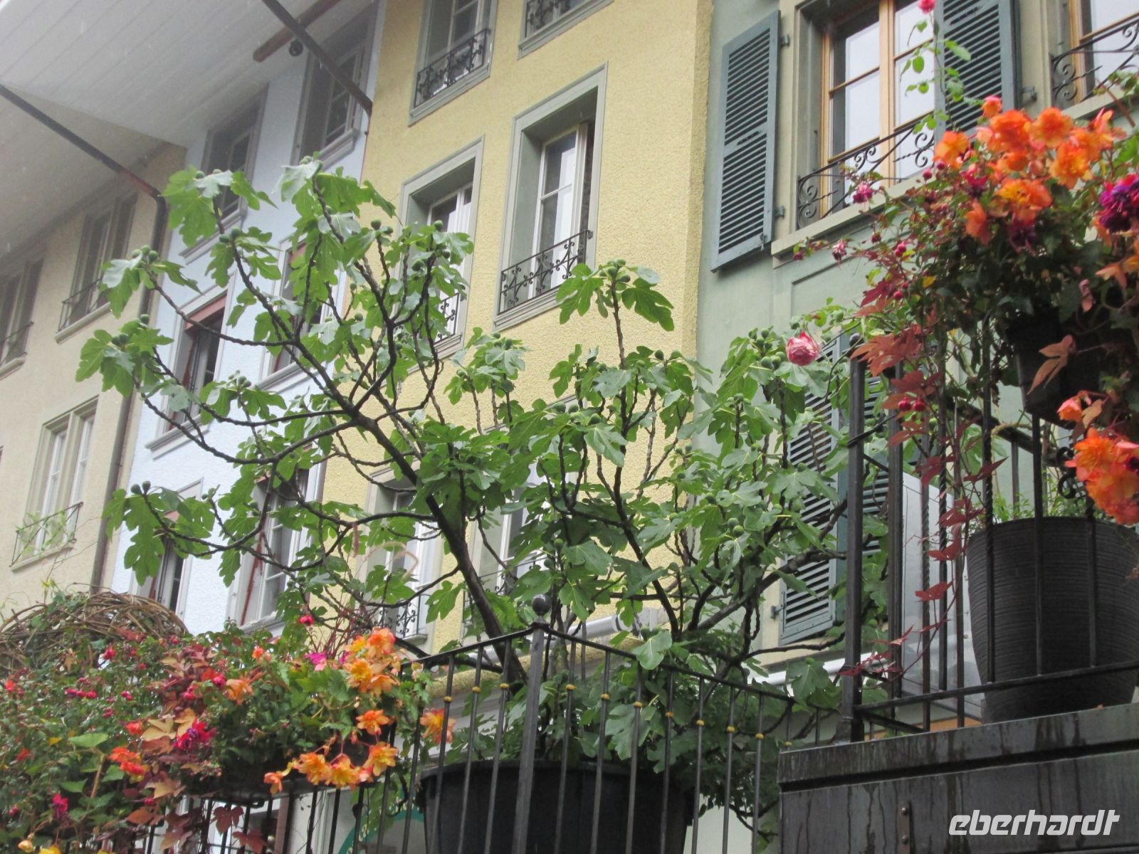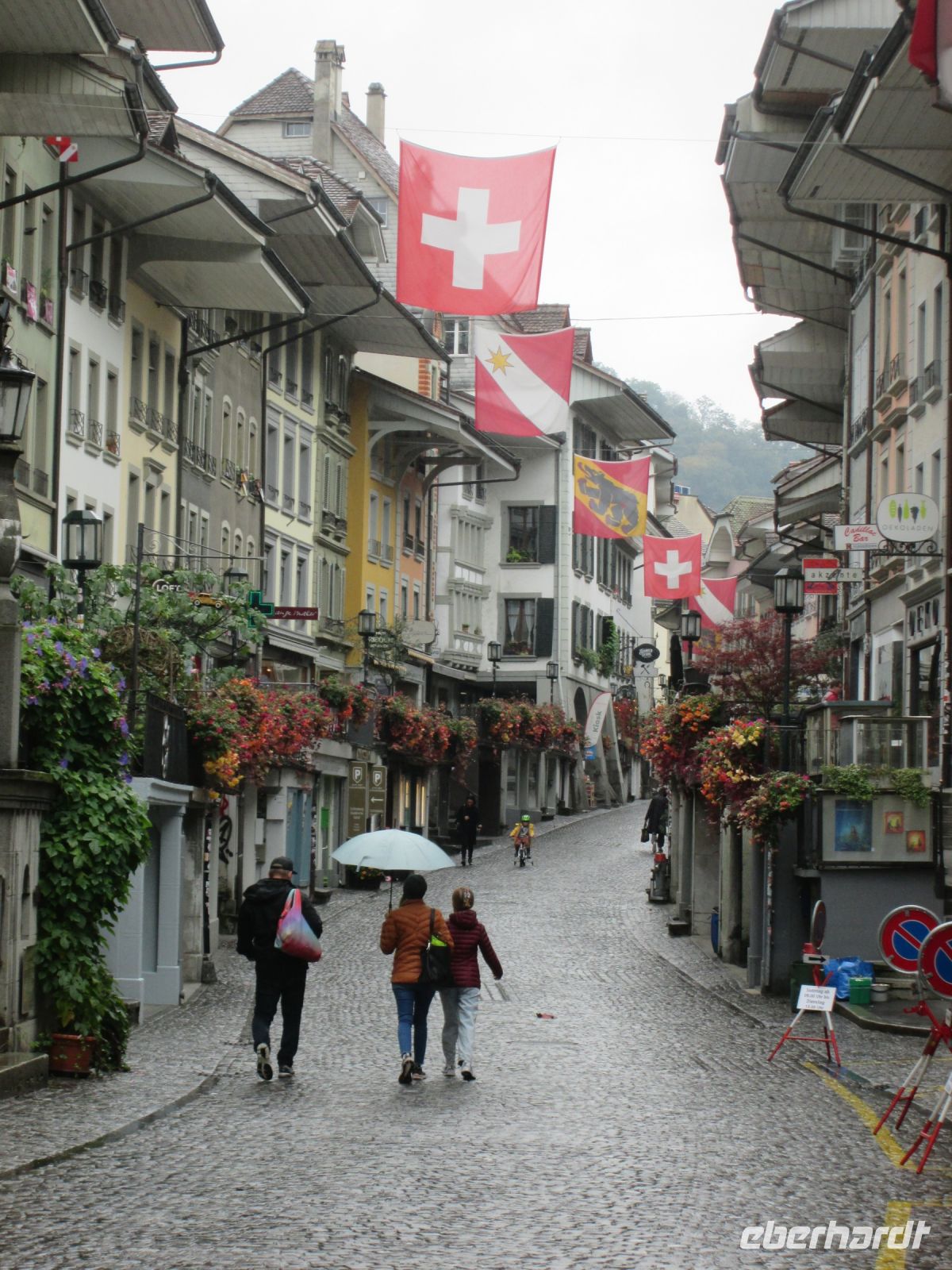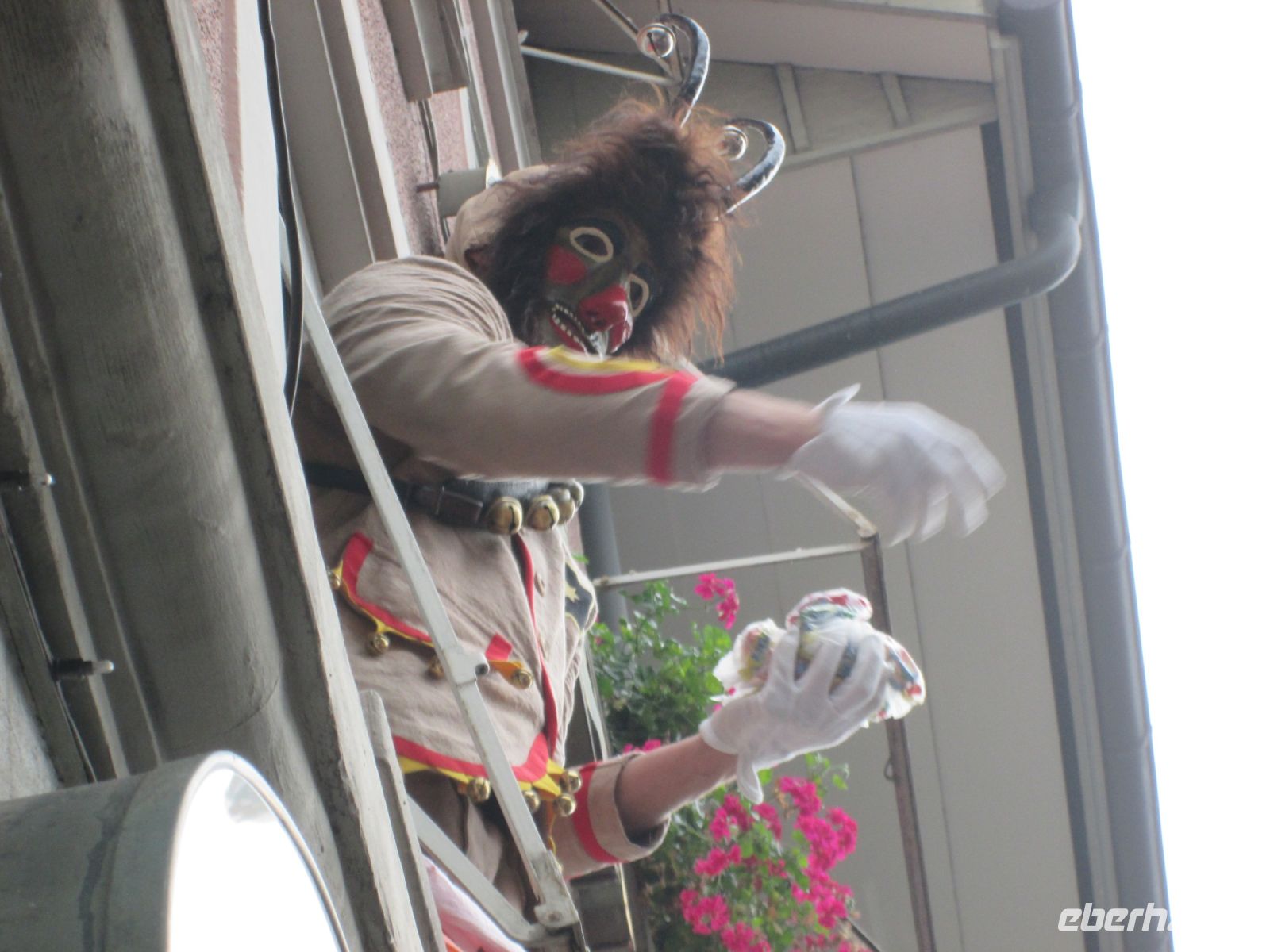 Schon die ersten Worte unserer charmanten Stadtführerin Nicola wurden von lautem Geschrei begleitet. Dem Ursprung näher kommend, sahen wir im Fenster eines Wohnhauses einen kostümierten Mann, der Süßigkeiten an Kinder verteilte. Da jedes Kind besonders viel haben wollte, wurde dies natürlich mit viel Geschrei bekräftigt. Alljährlich zu Beginn der Herbstferien zieht der "Fulehung" , der faule Hund, durch die Gassen von Thun. Bereits 5.00 Uhr in der Früh erscheint er auf dem Rathausplatz und zieht anschließend durch die Stadt. Dies geht zurück auf die Schlacht von Murten im 15. Jahrhundert, als Thuner den Hofnarren von Karl dem Kühnen festnahmen.
