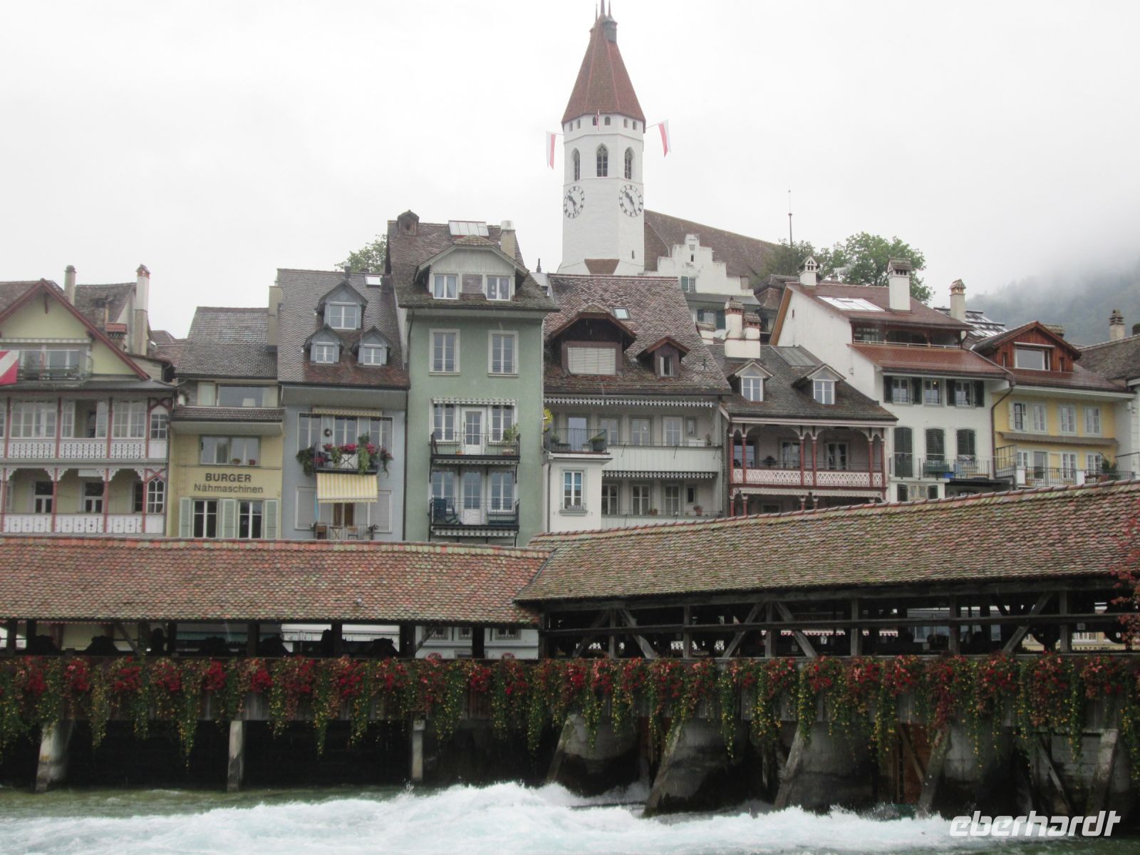 Die Sehenswürdigkeiten in Thun sind fußläufig gut zu erreichen. Vorbei an den vielen Zunfthäusern, weiter über die Aarebrücken, spazierten wir zum Schloss, welches stolz über der Stadt thront. Einst Sitz der Herzöge von Zähringen, dann der Berner, ist es heute historisches Museum mit Ausstellungen zur Stadtgeschichte.