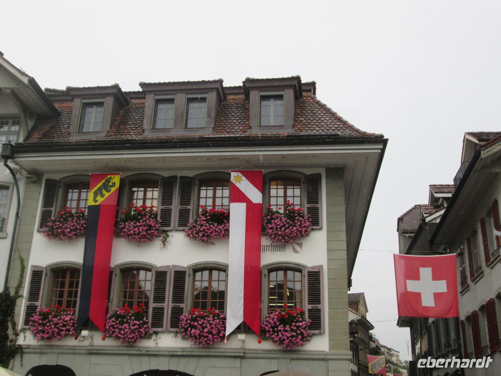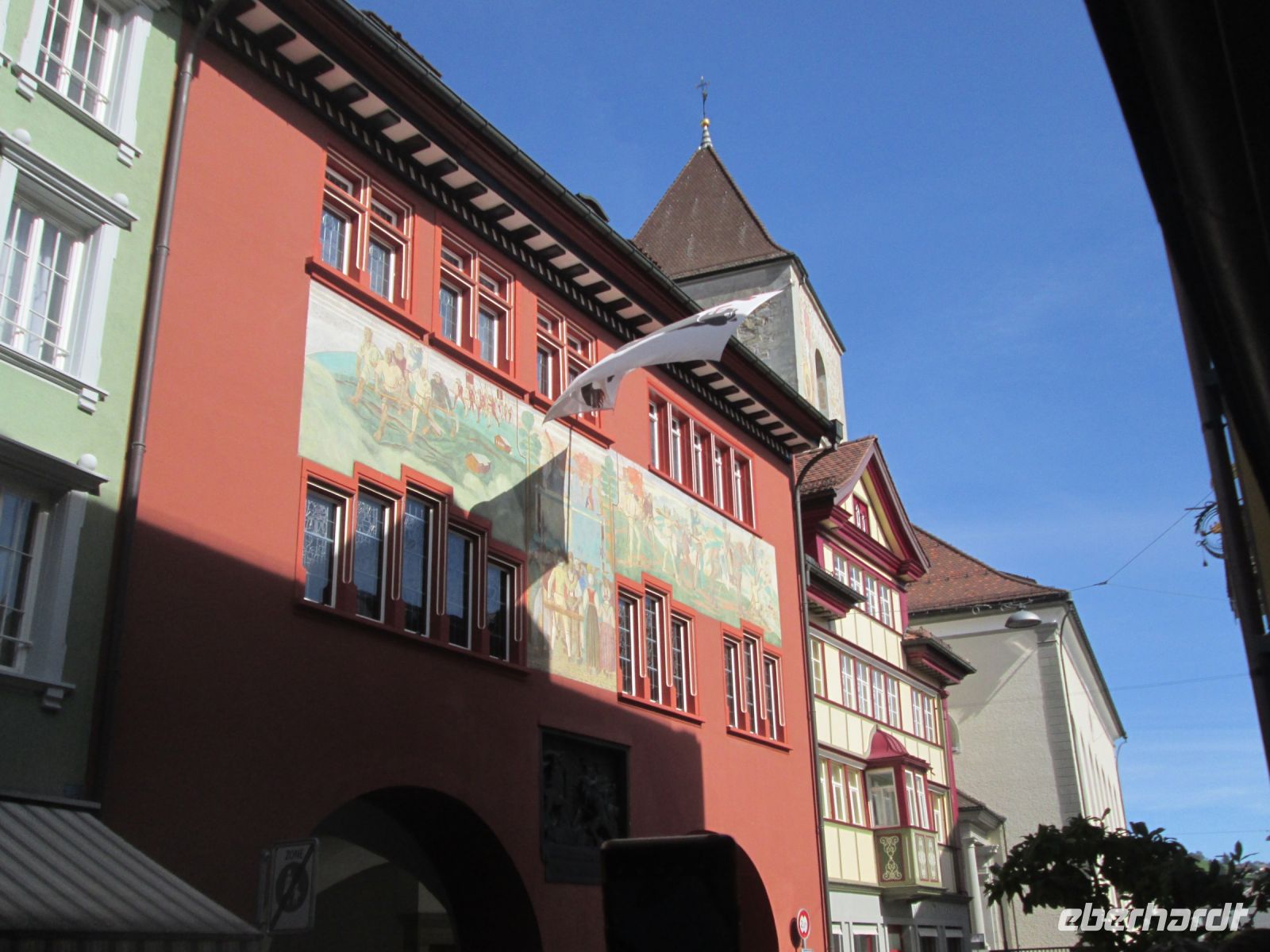 Zunächst gab es einen kurzen Spaziergang in dem kleinen Städtchen zu der katholischen Pfarrkirche St. Mauritius, dem Rathaus und der Löwen-Drogerie mit seinen auf der Fassade aufgemalten 13 Kräutern. Danach konnte man noch gemütlich auf einen Kaffee einkehren oder seinen Einkauf des guten Appenzeller und Urnäscher Käses tätigen.