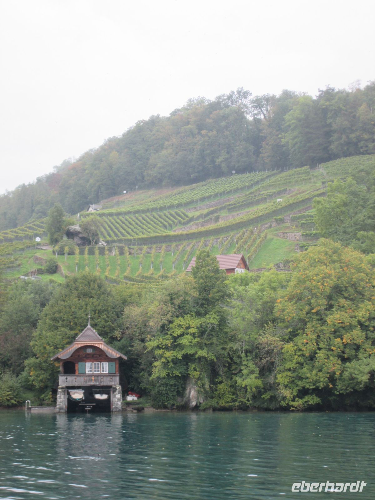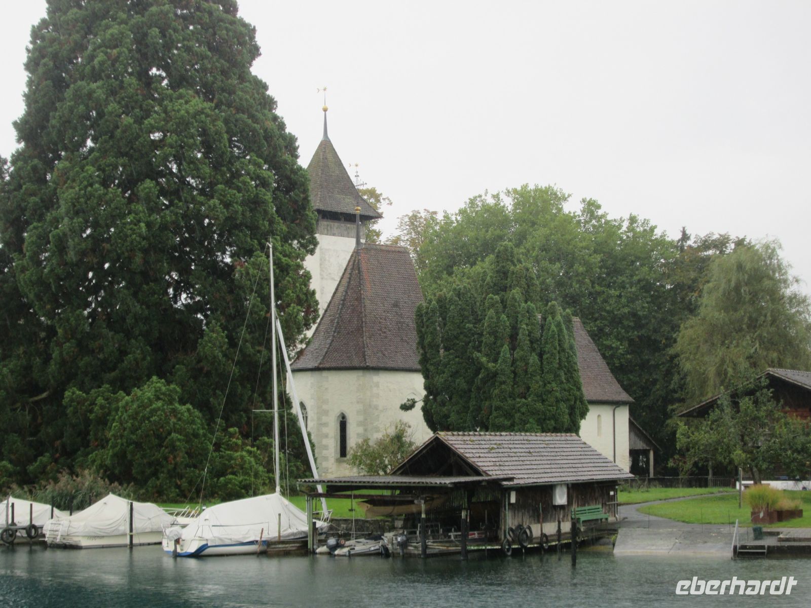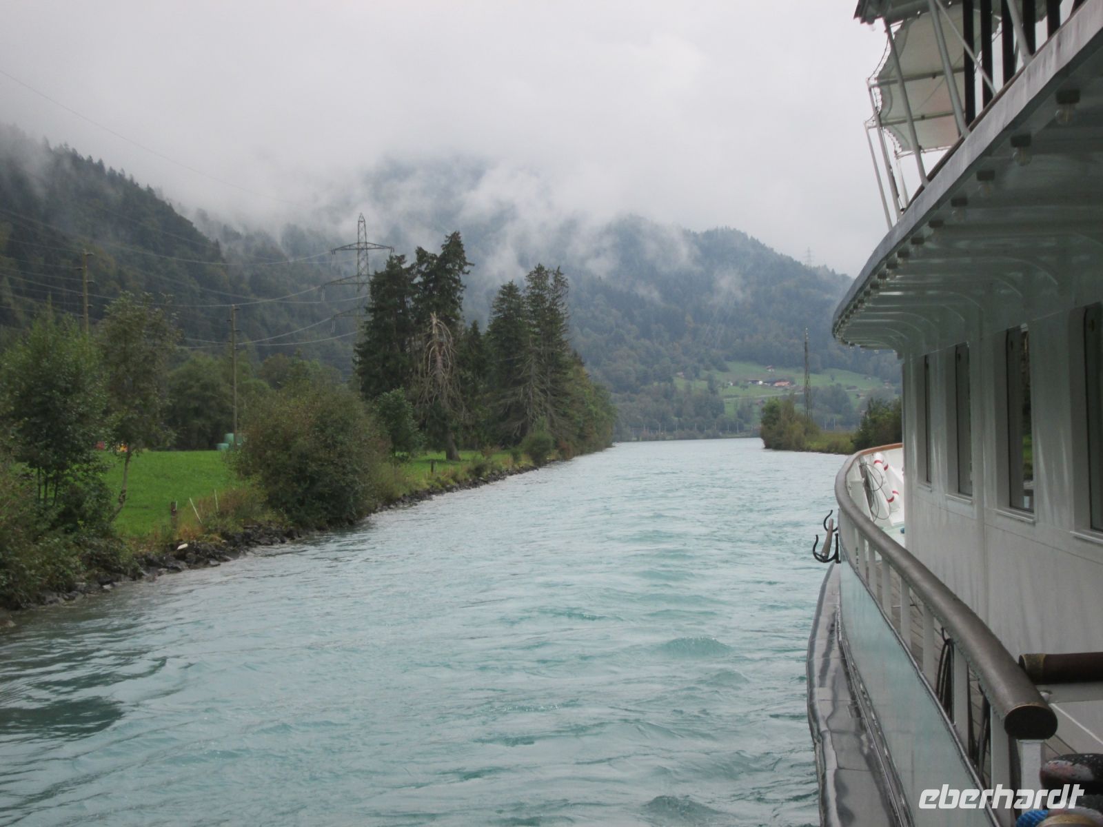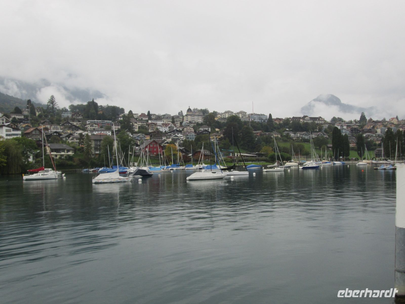 Nach einer kurzen Freizeit trafen sich einige, um die Umgebung des Thuner Sees vom Schiff aus zu genießen-so gut es eben ging, denn es regnete und alles war wolkenverhangen. Auf den ersten freien Blick auf den markanten Niesen , oder das Stockhorn oder gar das Dreigestirn Eiger/Mönch/Jungfrau mussten wir noch warten.