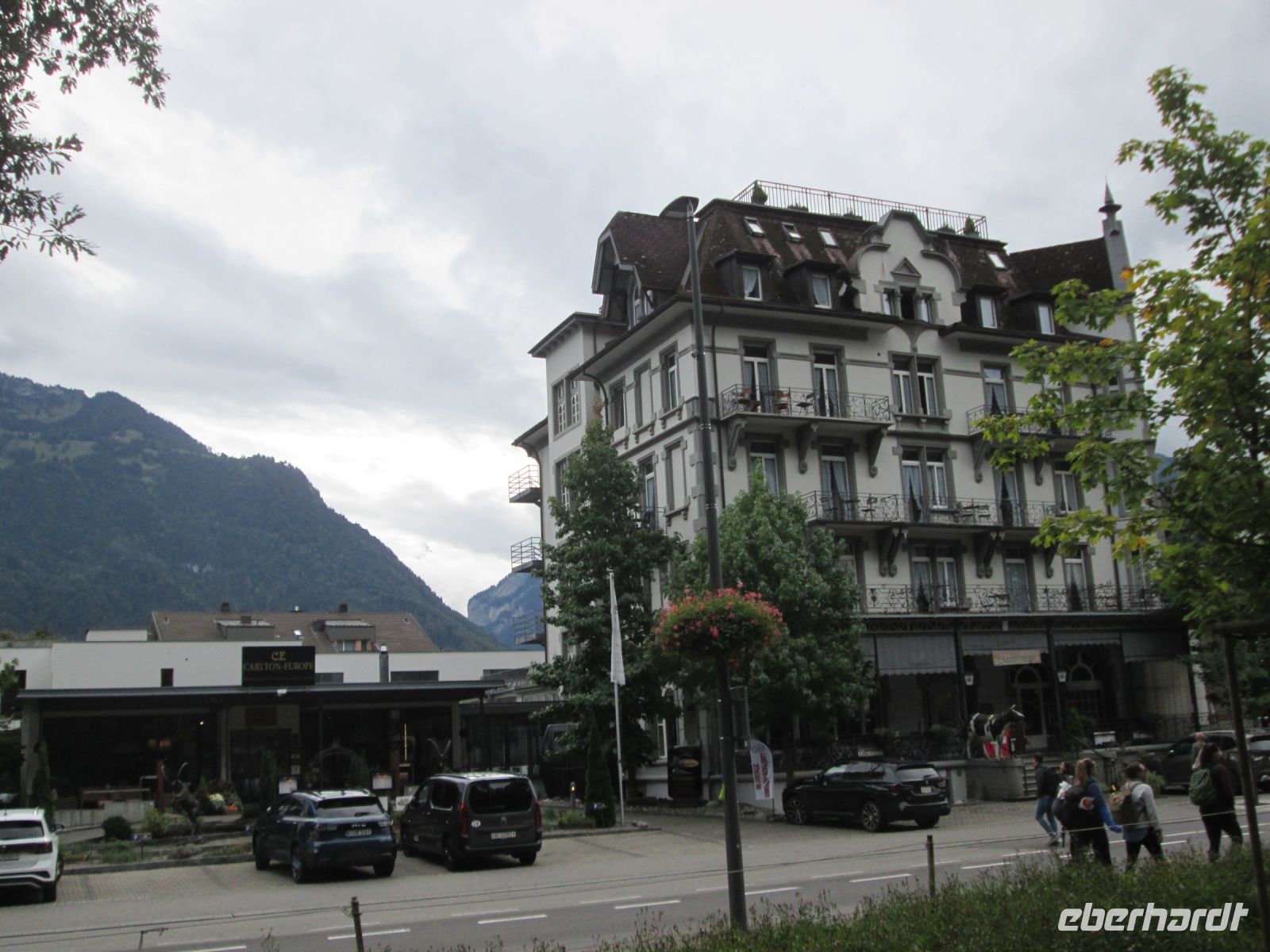 Nach der über 2stündigen Schifffahrt führte uns ein abschließender Spaziergang von Interlaken West nach Ost zu unserem Hotel Carlton-Europe mit Informationen zur Geschichte und den Sehenswürdigkeiten.