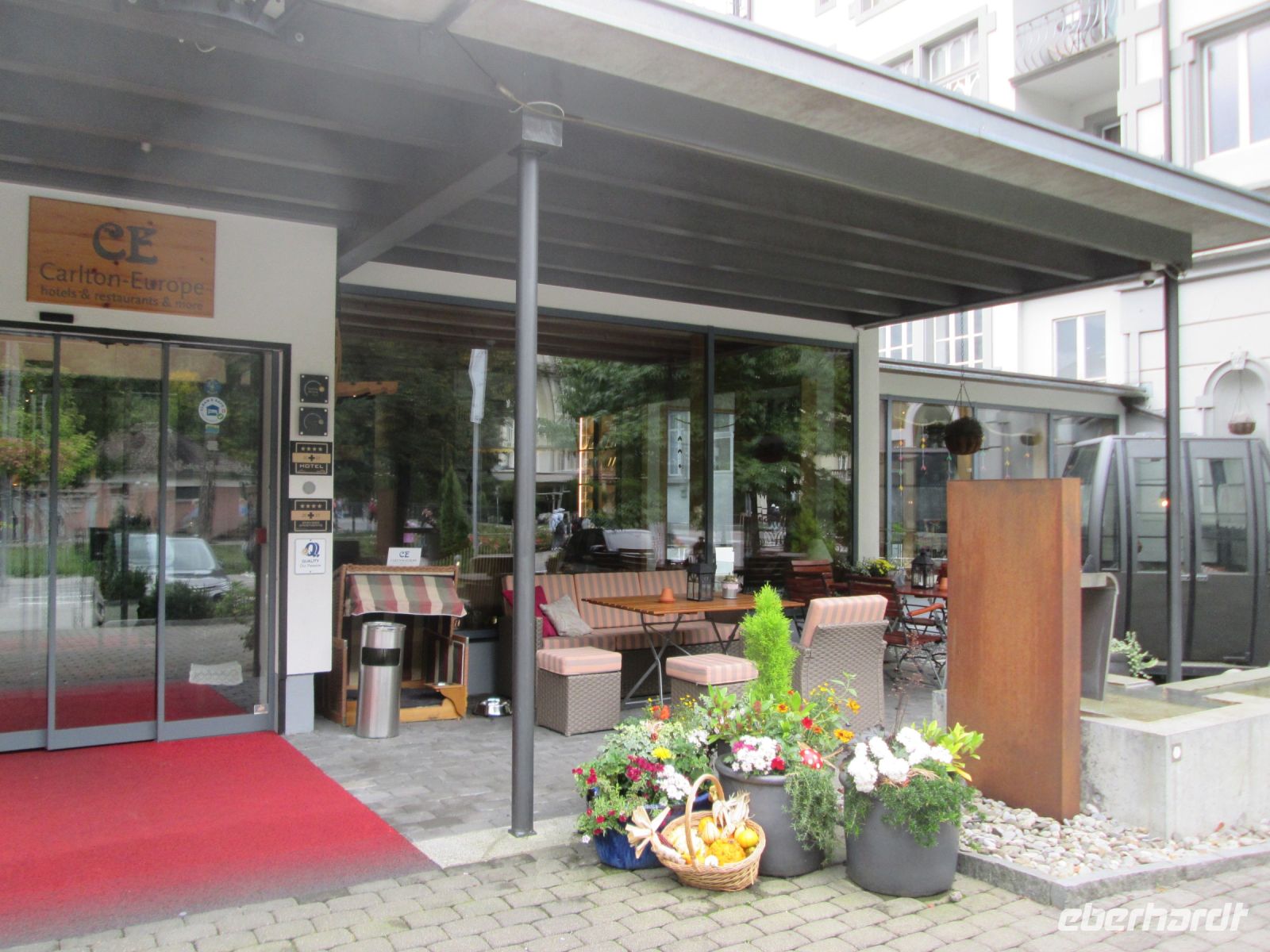 Das Hotel Carlton-Europe feiert im Jahr 2024 sein 126jähriges Bestehen und besteht aus 2 Teilen, dem "Europe" und dem "Carlton". Beide wurden durch einen Mitteltrakt von 2006, in dem sich heute Rezeption und Restaurant befinden, verbunden. In einer Hotelbroschüre kann man nachlesen, dass das "Europe" einst im Besitz eines Beamten aus Muri war. Das "Carlton" war ebenfalls ein privates Hotel mit dem Namen "Hotel Brünig et l' Univers", das nur im Sommer geöffnet war und "mit seinen Privatbadezimmern, Heizung und Lift als sehr modern galt".