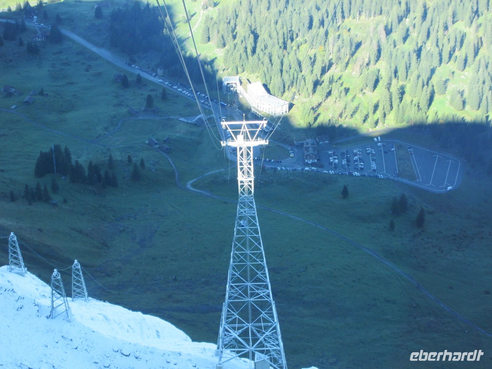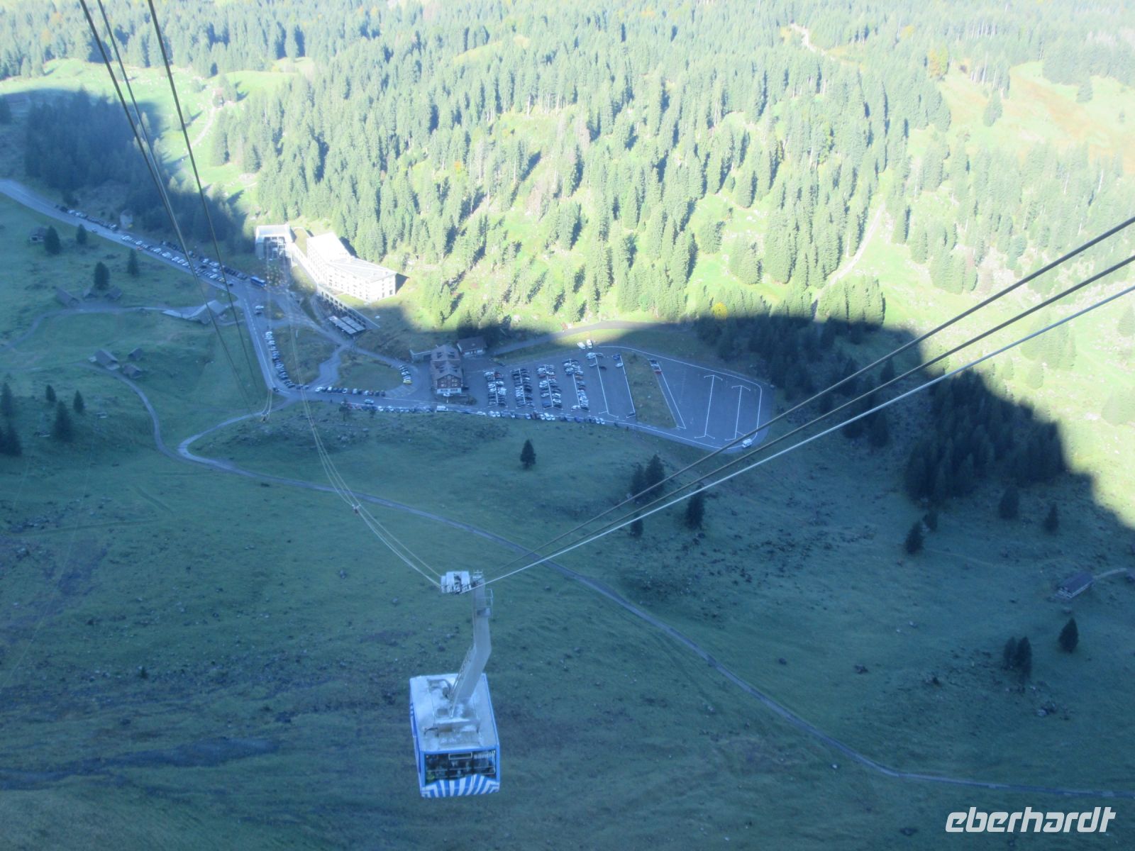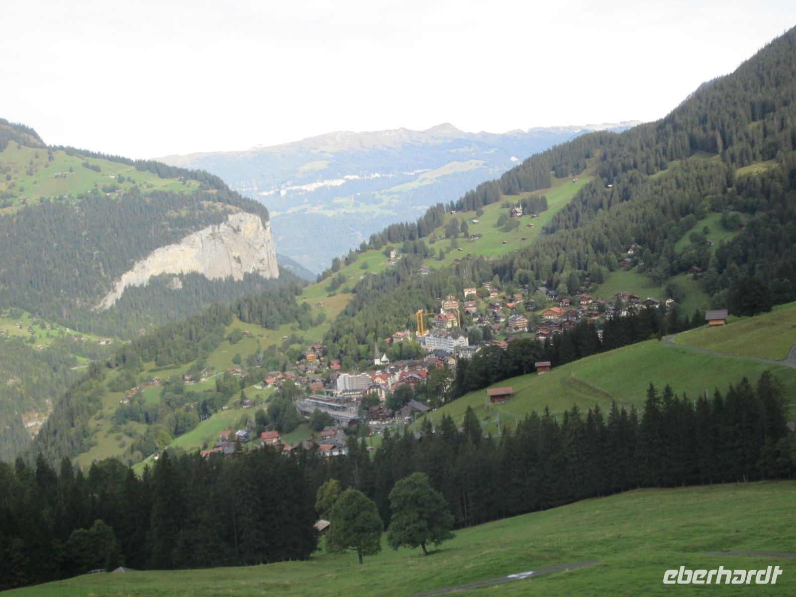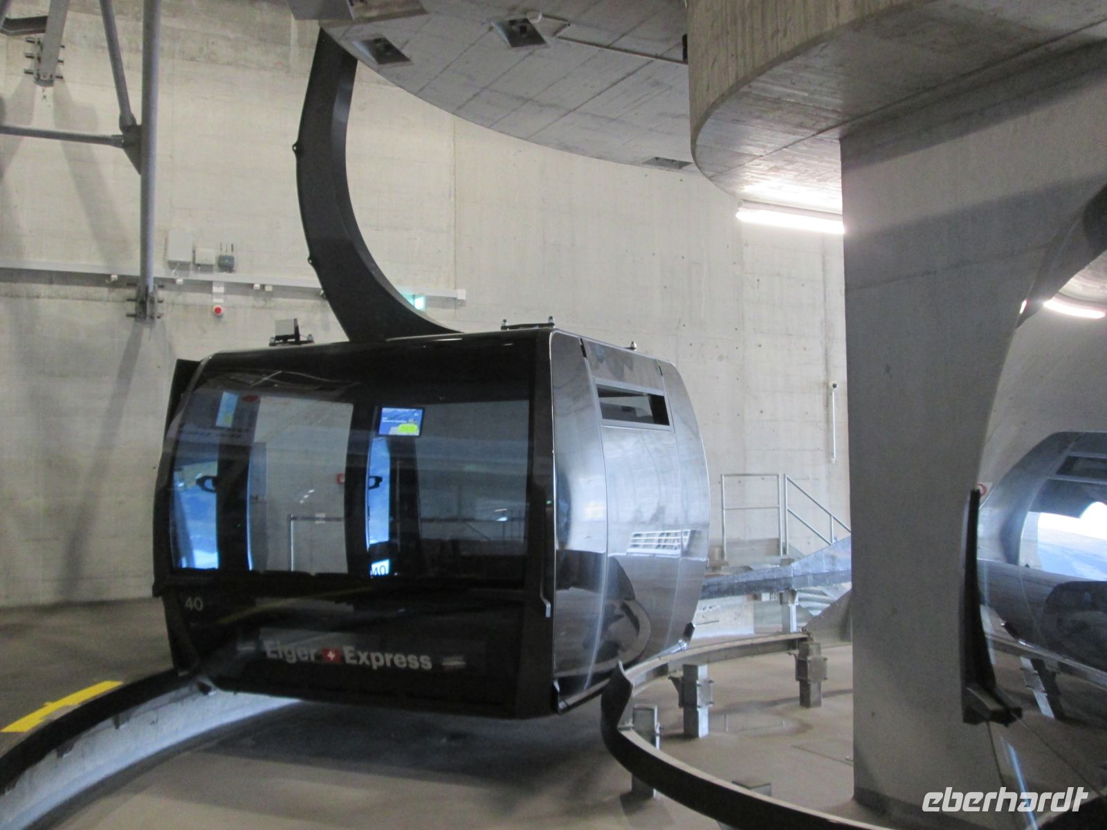 Der sogenannte "Eiger Express", 2020 in Betrieb genommen, bringt die Besucher von etwa 2300 Höhenmetern in rasantem Tempo in den bekannten Wintersportort auf etwa 950 m. Der Weitblick war hervorragend und die Eigernordwand begleitete uns noch eine Weile.