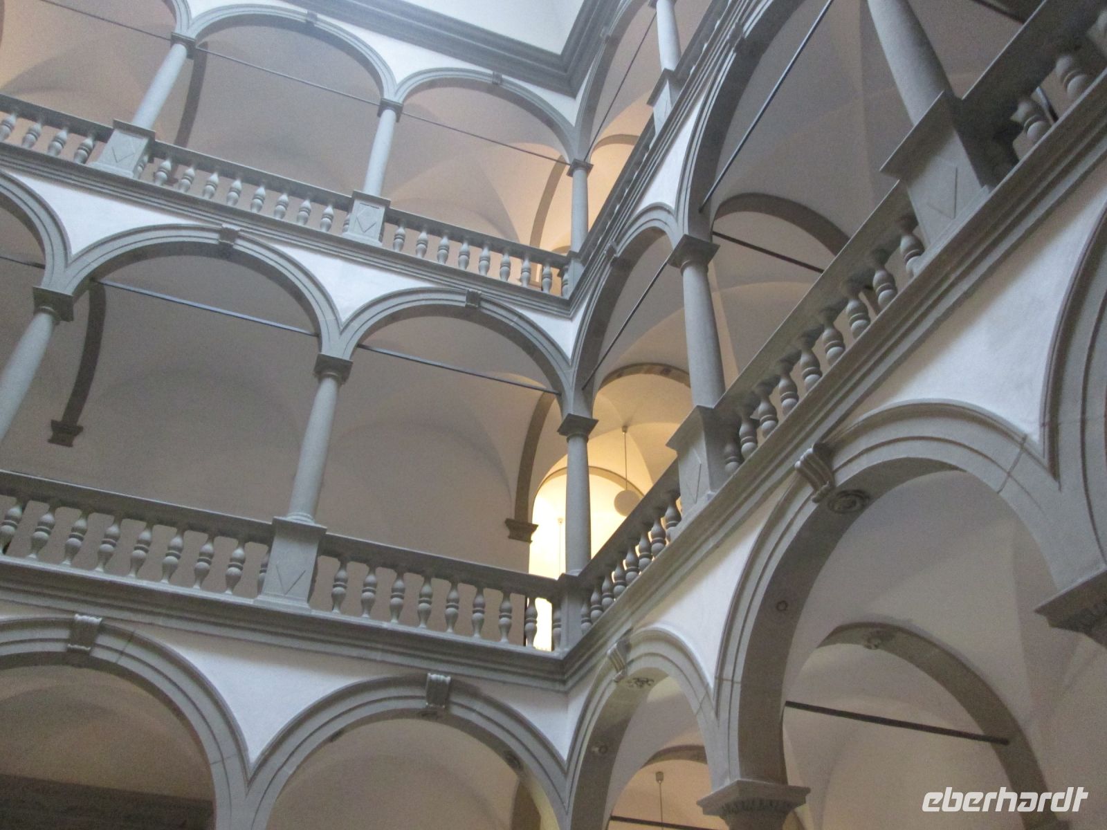 Ein weiteres Objekt beschäftigte uns, eine Spielkarte an der verzierten Decke des Saals. Wie kam die Karte nach oben, warum hielt sie dort und fiel nicht herunter. Das war Magie...