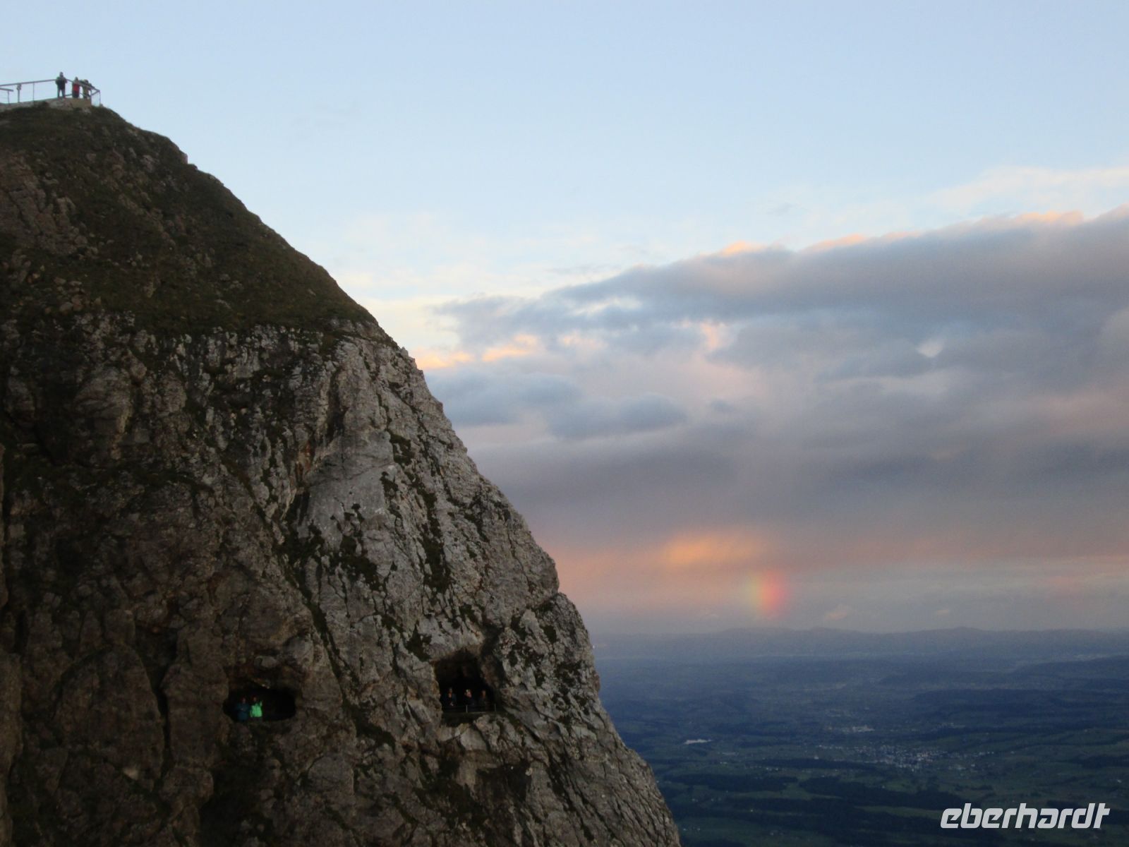 Nach dem Frühstück lud uns Jolanda zu einer spannenden Tour auf dem Säntis ein. Das Wetter und die obige Wetterstation, mit der sogar ein Mord verbunden ist, die Geschichte der Säntis-Bergbahnen, u.v.m. spielten dabei eine Rolle, kurz, es war ein bunter Mix interessanter Informationen.