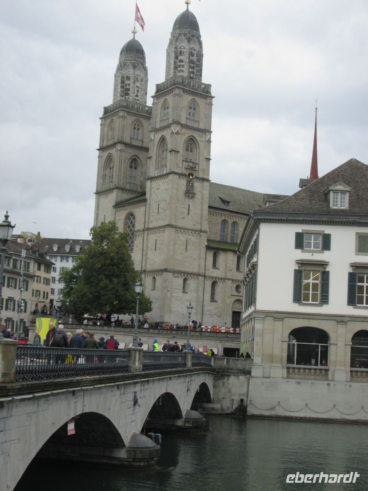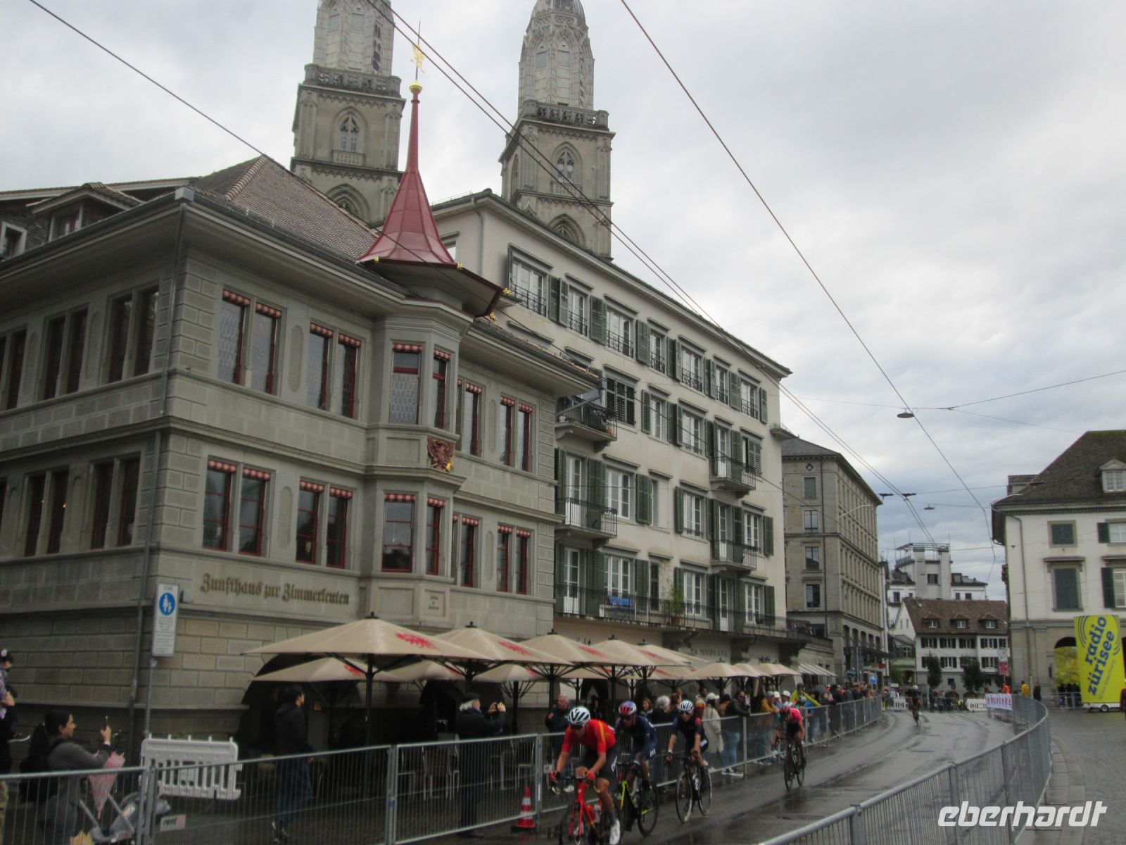Da vom 21.09. bis 29.09. die UCI Rad-und Para-Cycling Straßen-Weltmeisterschaften stattfanden, gab es einige Einschränkungen im Straßenverkehr. Das direkte Stadtzentrum blieb uns aber für Besichtigungen offen. Das Fraumünster mit den Glasfenstern von Chagall war interessant, ebenso die vielen Zunfthäuser entlang der Limmat. Einen Schutz vor dem Regen boten die vielen Arkaden. Wir waren uns einig, Petrus zeigte sich bei den Bergtouren von seiner guten Seite, in den Städten öffnete er stets seine Schleusen.