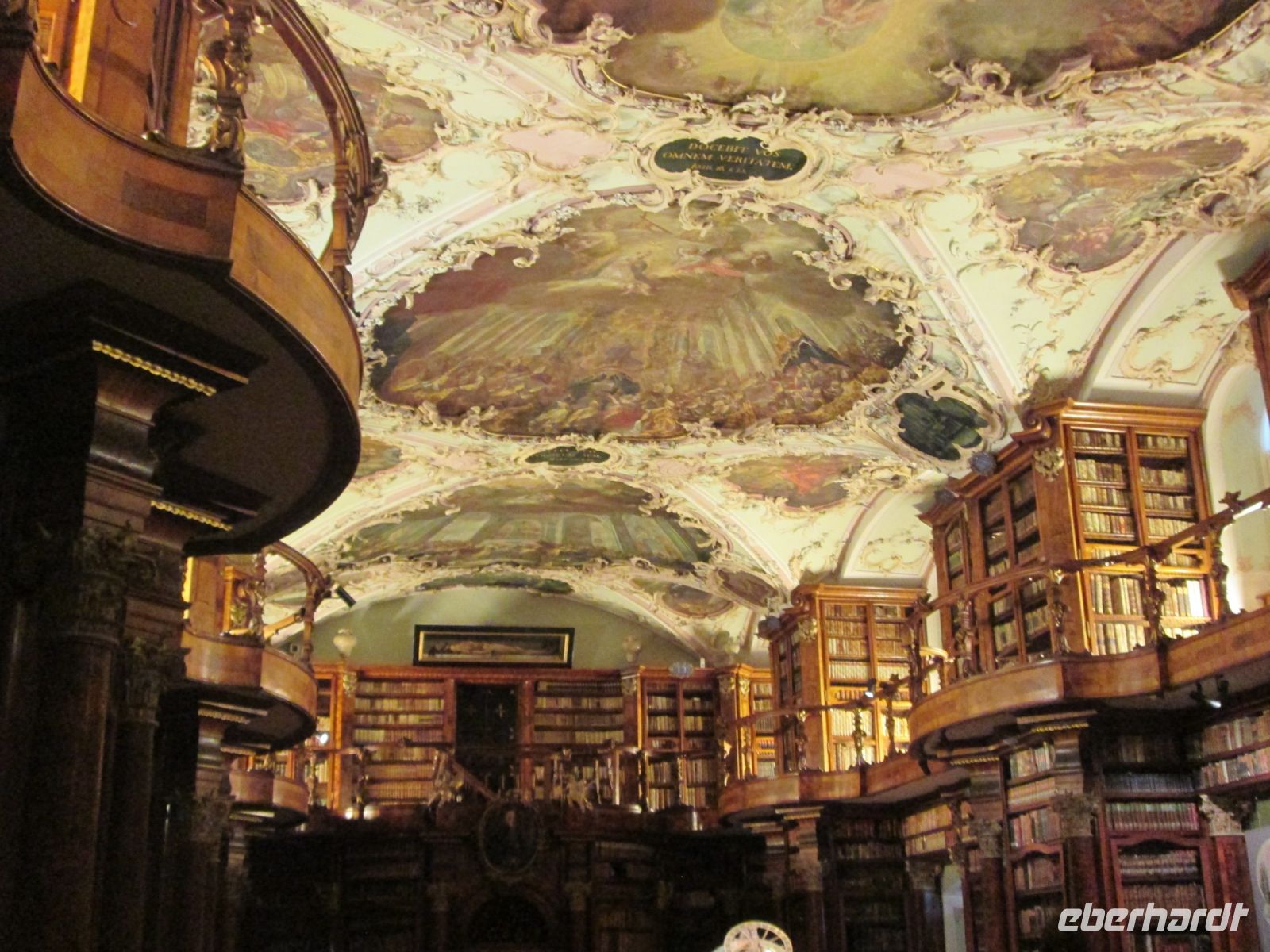 Mit einem Umweg kamen wir schließlich etwas verspätet in St. Gallen an, wo die Stadtführerin Ulrike uns schon wartete. Sogleich ging es zügig zum UNESCO-Weltkulturerbe Stiftbibliothek. Der herrliche Barocksaal mit seinen 30000 Bücher, davon 400, welche vor dem Jahr 1000 geschrieben wurden, entlockte uns schon ein Staunen. Unweit befinden sich die ebenfalls im Barock erbaute Kathedrale, viele Zunfthäuser und Denkmäler, die an den Heiligen Gallus erinnern. Der irische Mönch kam im 7. Jahrhundert in diese Gegend, und nach ihm gründete Otmar ein Kloster.