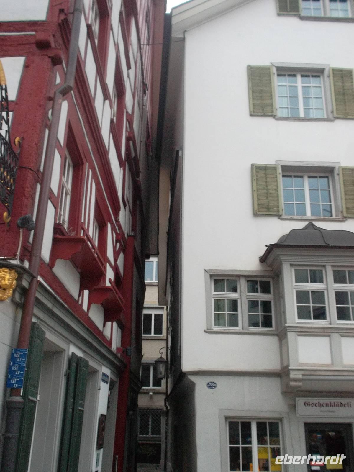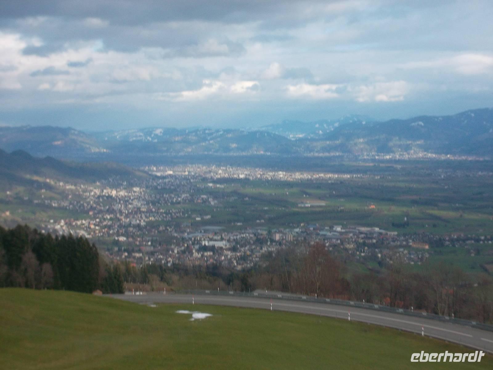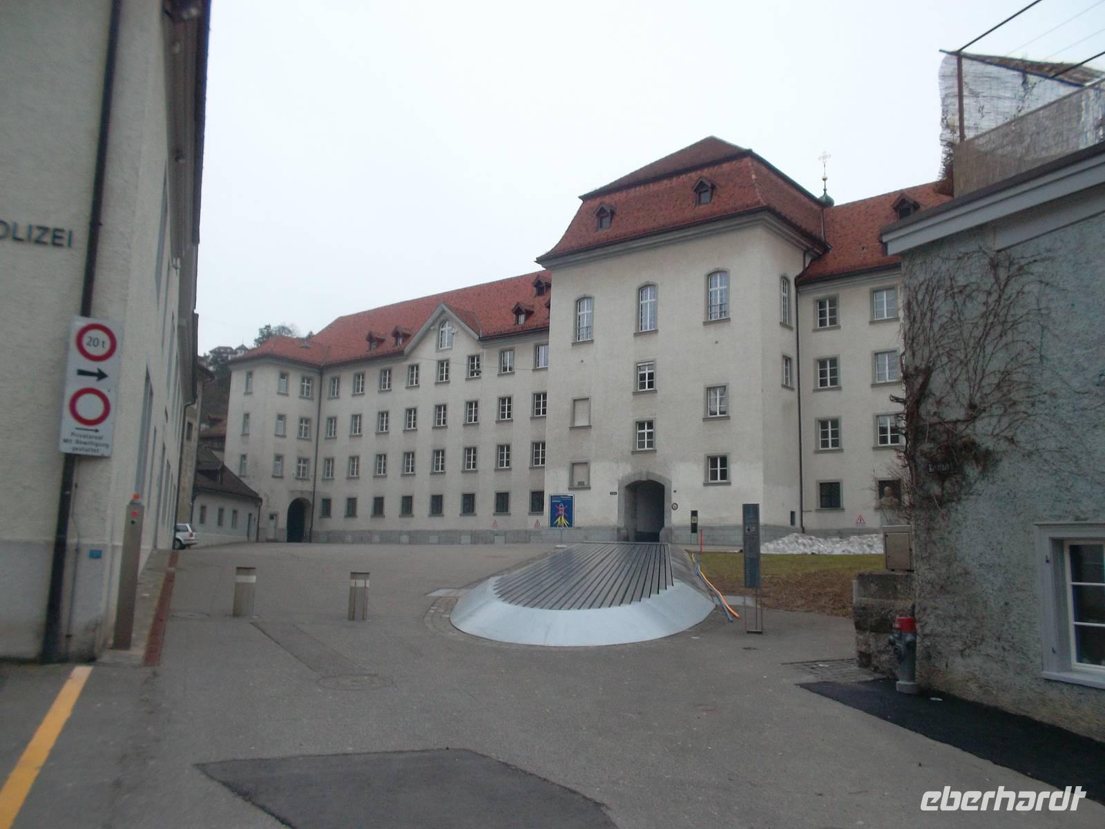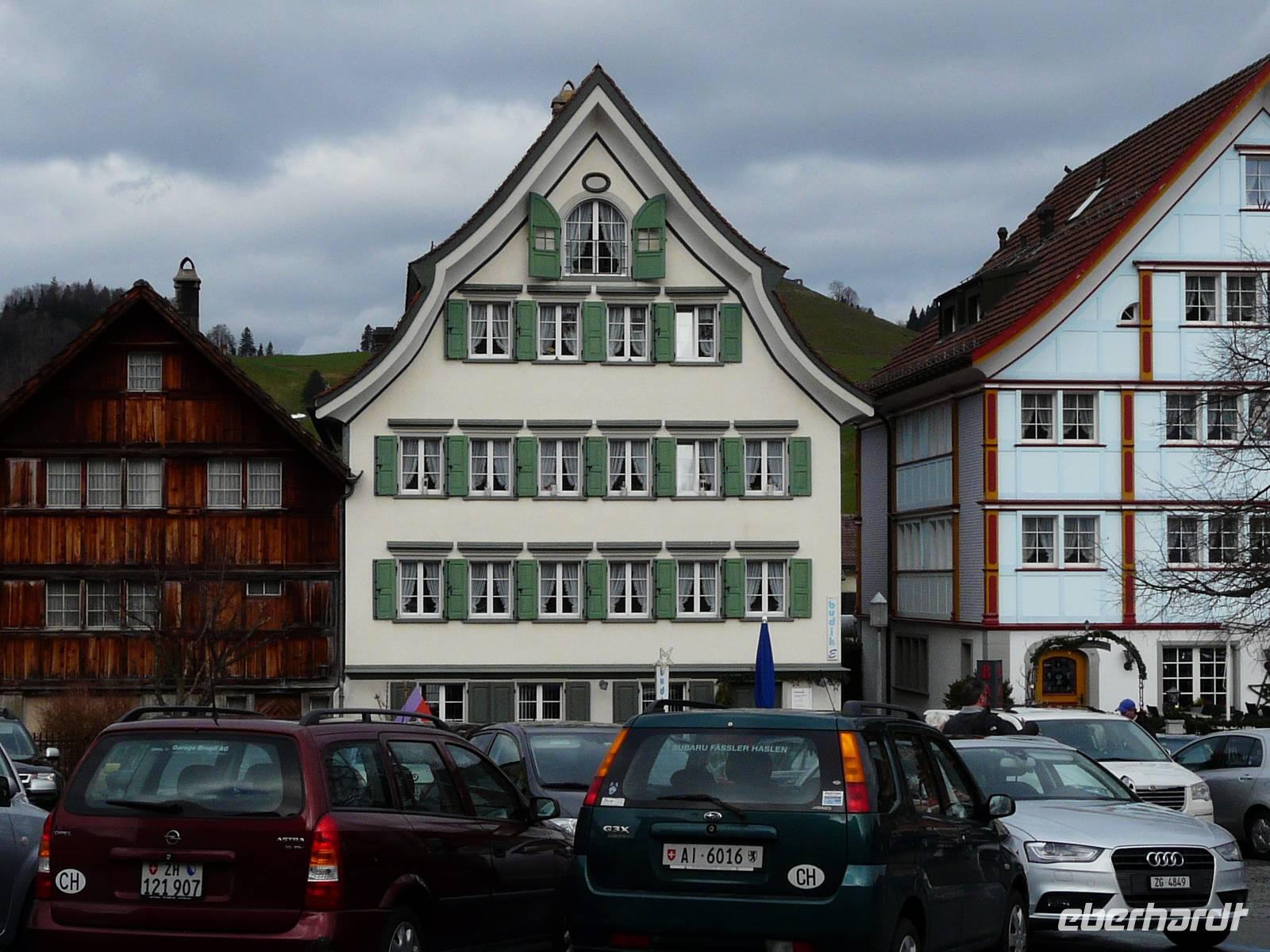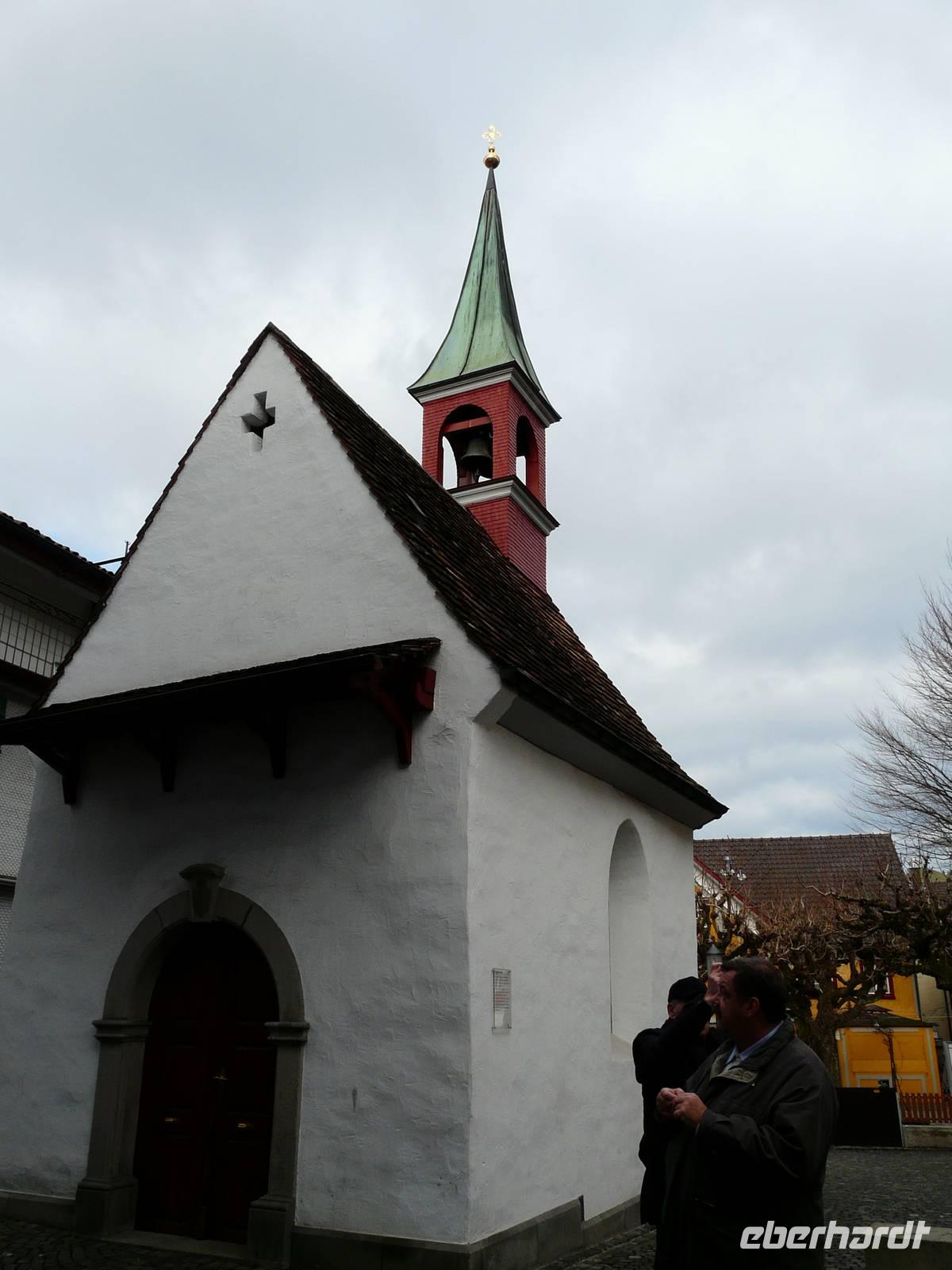 Auf der Weiterfahrt gab es wieder ein kleines Extra im Eberhardt-Stil: Chauffeur Alf Langer brachte uns dicht an die abgesperrte Altstadt von Herisau, dem Hauptort von Innerrhoden. Hier sahen wir auf einem Spaziergang durch das hübsche Zentrum rund um den Kirchenberg erneut viele Silvesterchläuse, deren Kostüme bei gleichem Grundinhalt doch etwas von denen der Urnäscher abwichen. Nächstes Ziel war dann die Schaukäserei für den würzigen Appenzeller Käse im Ortsteil Stein. Hier kann man zwar - aus Hygienegründen - nicht direkt die „Werkhalle" betreten, in der das streng-würzige, weit über die Landesgrenzen der Schweiz bekannte Milchprodukt hergestellt wird. Durch Glasscheiben konnten wir aber einen Blick auf die Produktionsstätte werfen und erfuhren dabei, wie die Milch mit Fermenten durchsetzt zum Gerinnen gebracht, gebrochen und neu zusammengesetzt wird, bis man sie in die Form der runden Käselaibe presst und - regelmäßig mit „geheimer" Gewürzmischung bestrichen und immer wieder gewendet - lange Zeit reifen lässt. Der Erfolg dieser Prozedur lässt sich riechen und - schmecken. Wir konnten ein paar Käsebrocken des klassischen Appenzeller verkosten und auch die verschiedenen Reifestufen im angeschlossenen Geschäft kaufen. Vielleicht hat der würzige Landkäse aus der Ostschweiz nun ein paar Fans mehr, denn es gibt ihn auch mitunter bei uns in den Supermärkten zu kaufen - im speziellen Käseladen sowieso!
