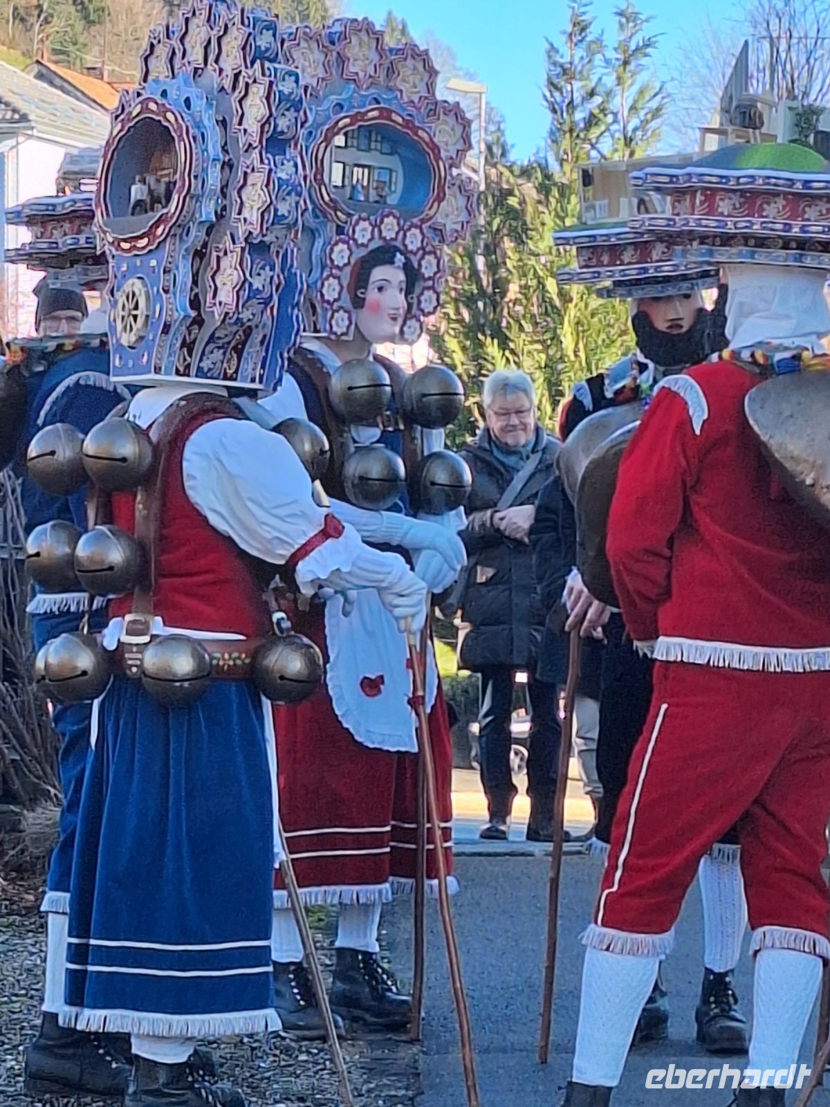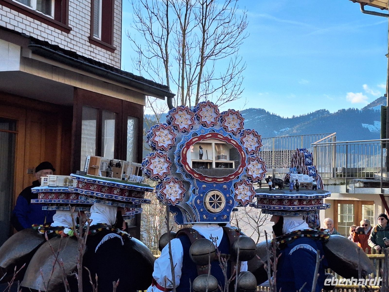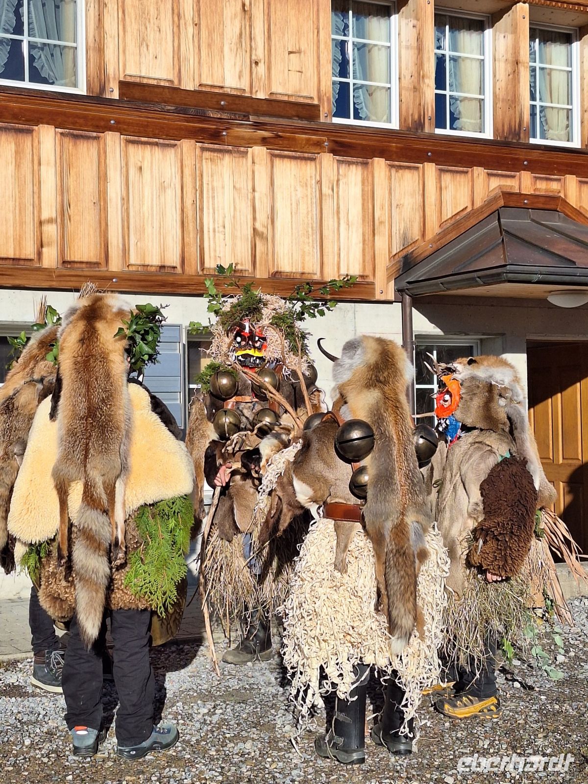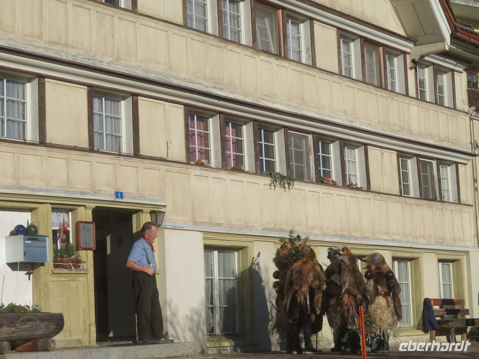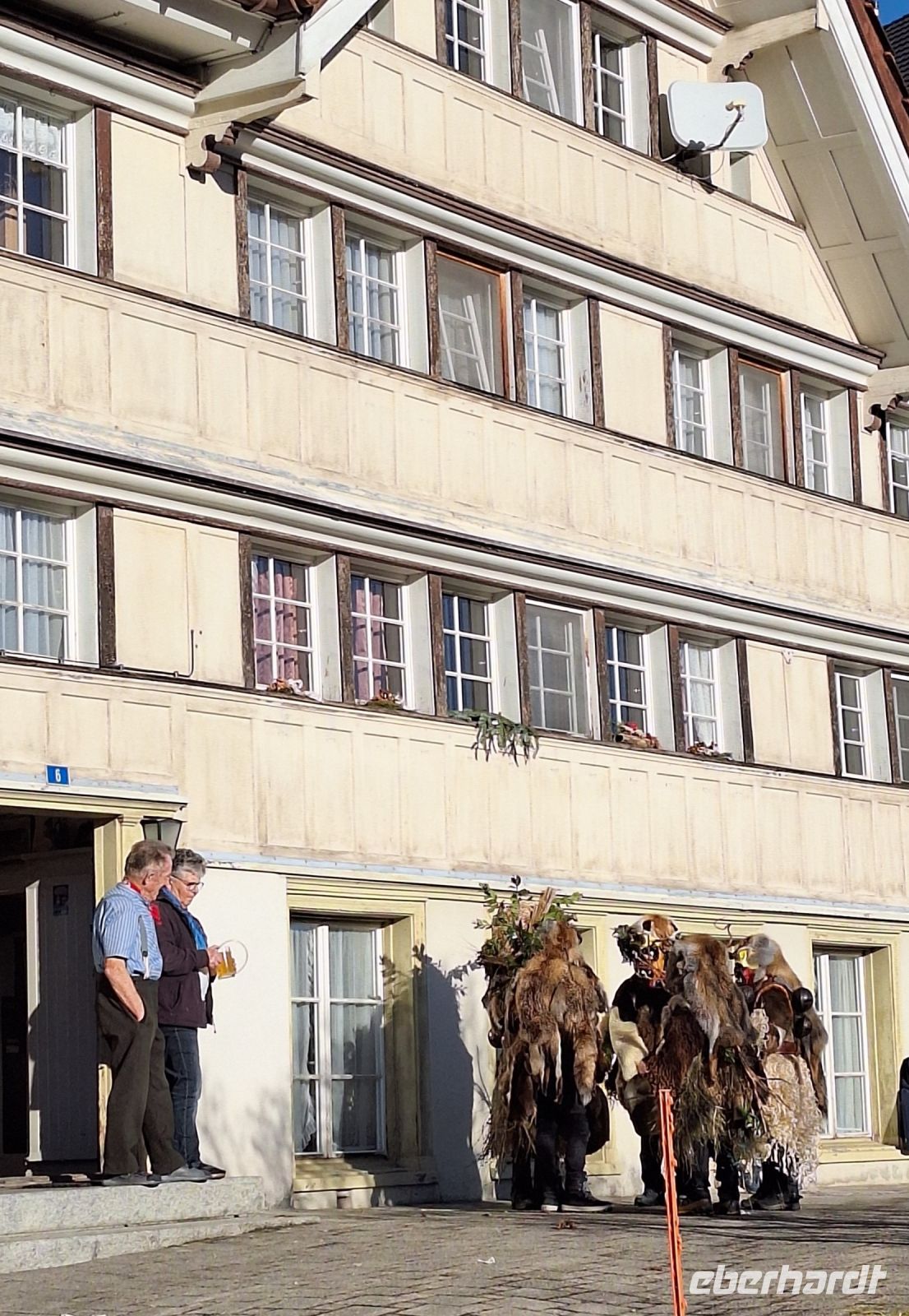 Heute erwartet uns ein ganz besonderes Erlebnis bei traumhaftem Wetter mit Sonnenschein: In Urnäsch dürfen wir lebendiges Brauchtum erleben – das Silvesterchlausen. Dieser alte Winterbrauch wird bis heute hauptsächlich in Urnäsch und den umliegenden Orten mit Hingabe gepflegt wird. In den frühen Morgenstunden und am Tag ziehen die Chläus, welche auch Silvesterklaus genannt werden, durch den Ort. Mehrere Gruppen der jungen Burschen in unterschiedlichsten traditionellen Kostümen beobachten wir. Die Chläuse sind in verschiedenen Gruppen unterwegs: die Schönen, die Schön-Wüsten und die Wüsten. Charakteristisch sind die unterschiedlichen Kostüme. Die Schönen sind mit Samtkleidung, teilweise auch als Frauen bekleidet. Auf dem Kopf tragen sie kunstvoll gestaltete Hauben mit Darstellungen des dörflichen Lebens. Die Kostüme der Schönwüsten bestehen aus Anzügen aus Naturmaterialien, wie Tannenreisig und Laub. Ihre Hüte sind ebenfalls aus Naturmaterial mit Darstellungen aus der Natur gestaltet. Die Wüsten tragen Kostüme aus Naturmaterial und furchterregende Masken. Alle Gruppen führen Schellen und Rollen (Glocken und runde Schellen) mit sich und ziehen von Haus zu Haus. Vor den Häusern stellen sie sich im Kreis auf und schellen und rollen mit ihren Glocken nach einem bestimmten harmonischen Ritual. Dabei stimmen Sie schließlich ihre beeindruckenden "Zäuerli" an. Es sind wortlose Appenzeller Jodler. Als Dank bekommen Sie einen Schluck Weiß- oder Glühwein von den jeweiligen Hausherren und wünschen ihnen „E guets Neus", also ein gutes neues Jahr. Dann ziehen sie zum nächsten Haus weiter.