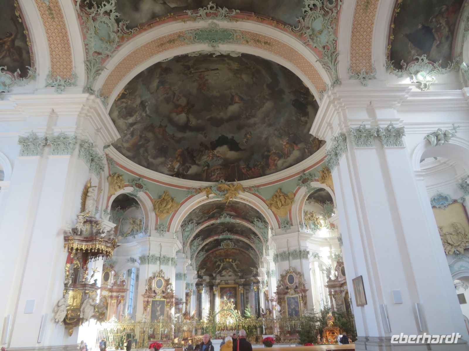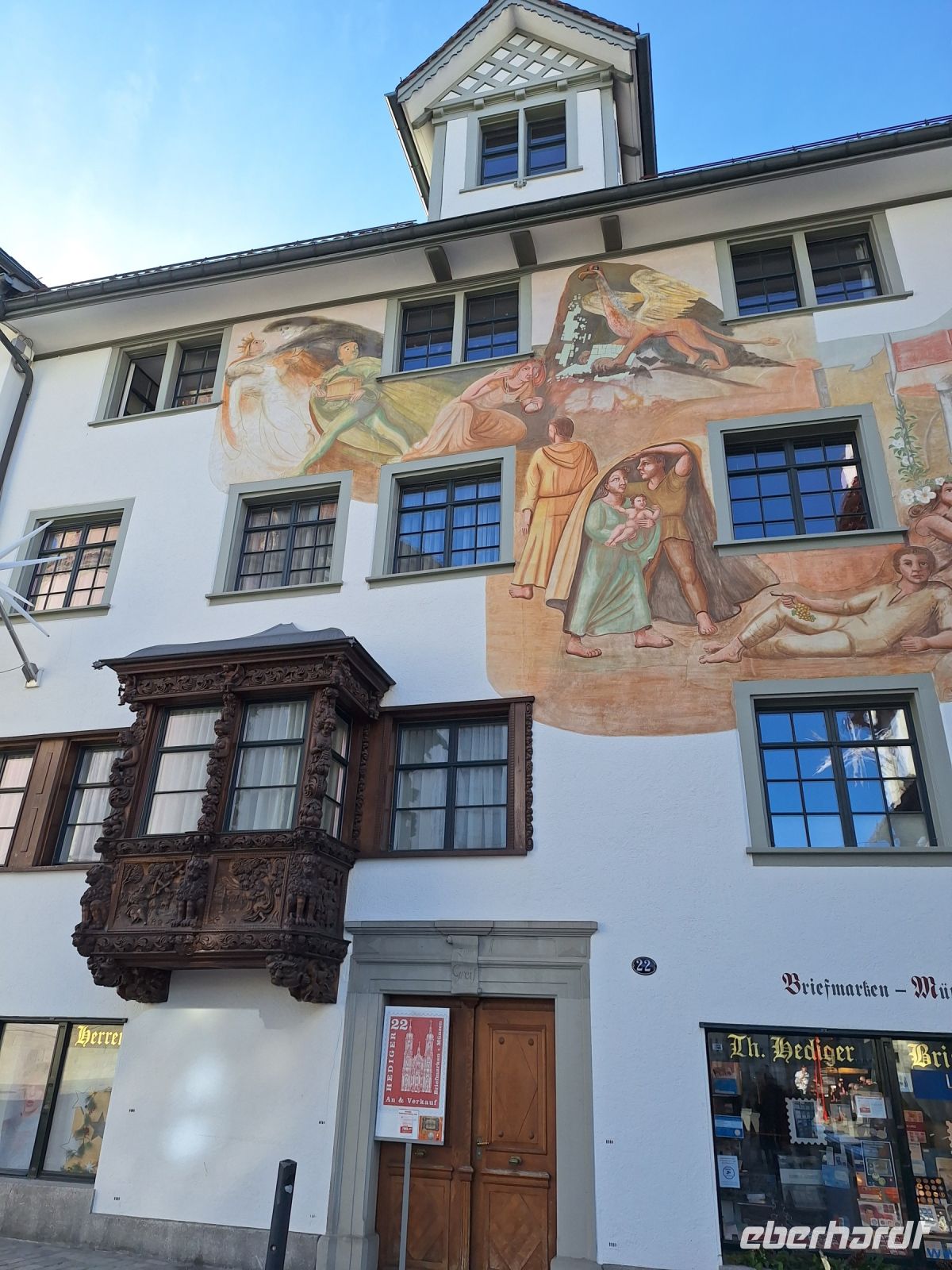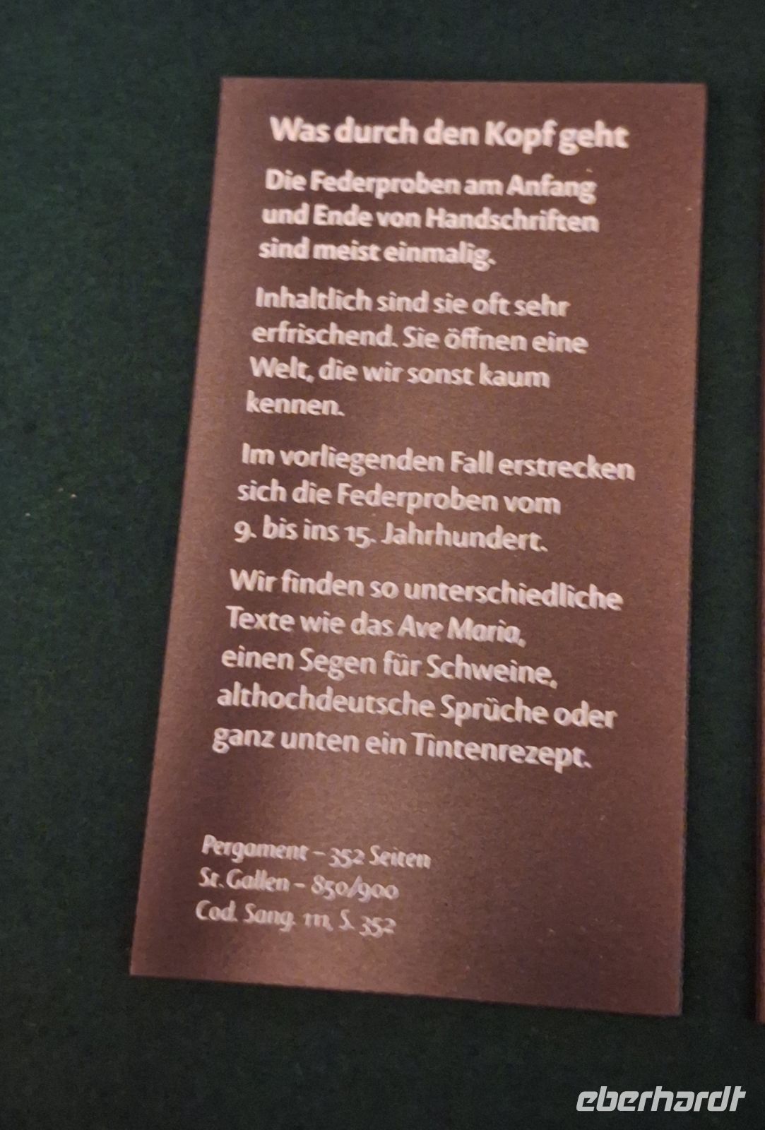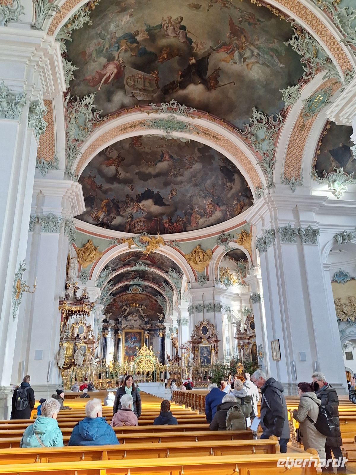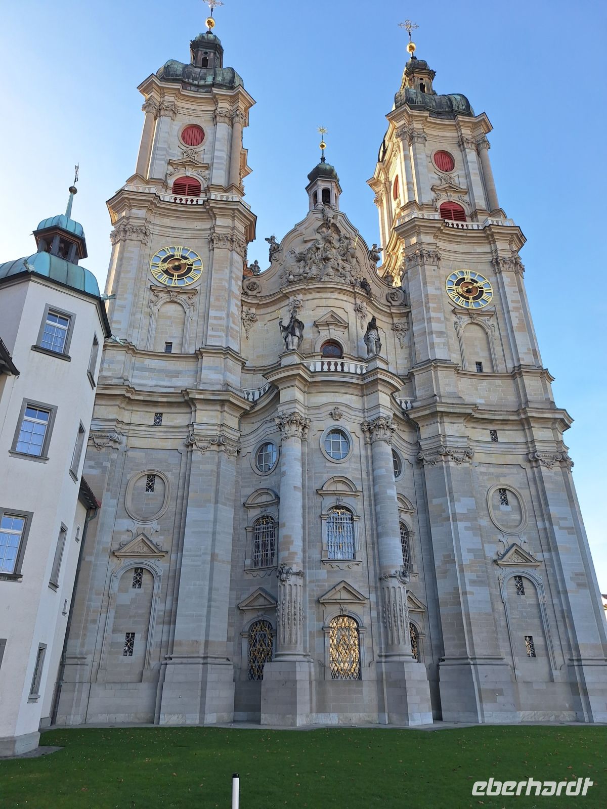Selbst die Kleinsten sind schon als Chläuse unterwegs. Diese wunderbare Tradition wird so von Generation zu Generation weitergegeben. Wir sind fasziniert und begeistert! Am Mittag reisen wir nach St. Gallen. Unsere Stadtführer spazieren mit uns durch die Altstadt und das Klosterviertel. Die prächtig geschmückten Bürgerhäuser aus dem 16. bis 18. Jahrhundert sind faszinierend. Typisch für diese sind die verschiedenen reich und kunstvoll verzierten Erker, die wir mehrfach bewundern können. Ihren Reichtum erlangte die Stadt durch die Textil- und Spitzenherstellung. Unser Weg führt uns in den Stiftsbezirk mit der weltberühmten Kathedrale. Im Jahr 1983 wurde der gesamte Stiftsbezirk durch die UNESCO zum Weltkulturerbe erklärt. Unsere Stadtführer erzählen uns interessante Details aus der Geschichte der Stadt. Wir sehen die Galluskapelle, die dem Mönch Gallus, welcher als Gründer der Stadt gilt, gewidmet ist. Die prunkvolle Kathedrale mit ihrer reichen barocken Ausstattung besuchen wir und sehen die evangelische Kirche. Unsere Stadtführer zeigen uns die Schitmauer, welche die Stadt im 15. Jahrhundert in den reformierten evangelischen Teil und den katholischen Teil teilte. Anschließend besuchen wir die Stiftsbibliothek. Der wunderbare barocke Saal beherbergt einen Teil der über 160.000 Bücher, über die die Klosterbibliothek verfügt. In den Vitrinen sehen wir wertvolle Bücher. Dieses Jahr werden einige der ältesten, von Mönchen handgeschriebenen Bücher gezeigt. Darunter eines aus dem 9.Jahrhundert. Es ist faszinierend, vor so einem wertvollen alten Buch stehen zu dürfen. Anschließend bummeln wir individuell durch die hübschen Gassen oder stärken uns in einem Café.