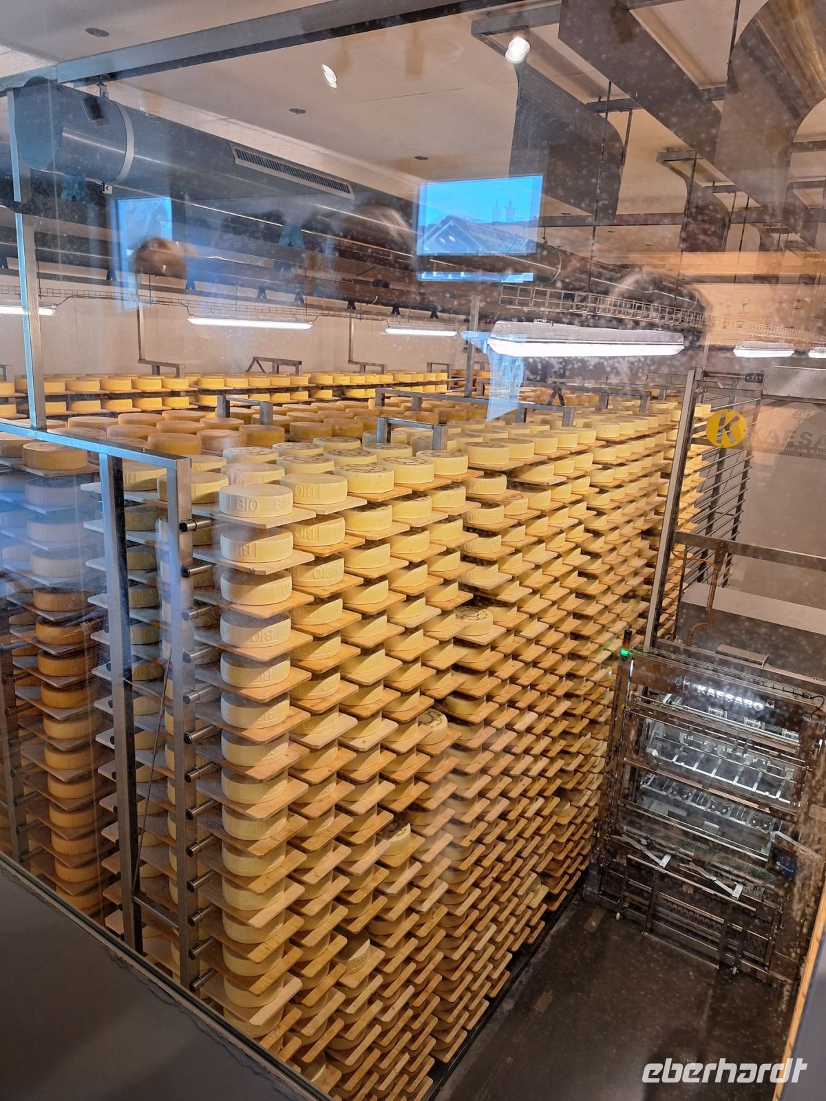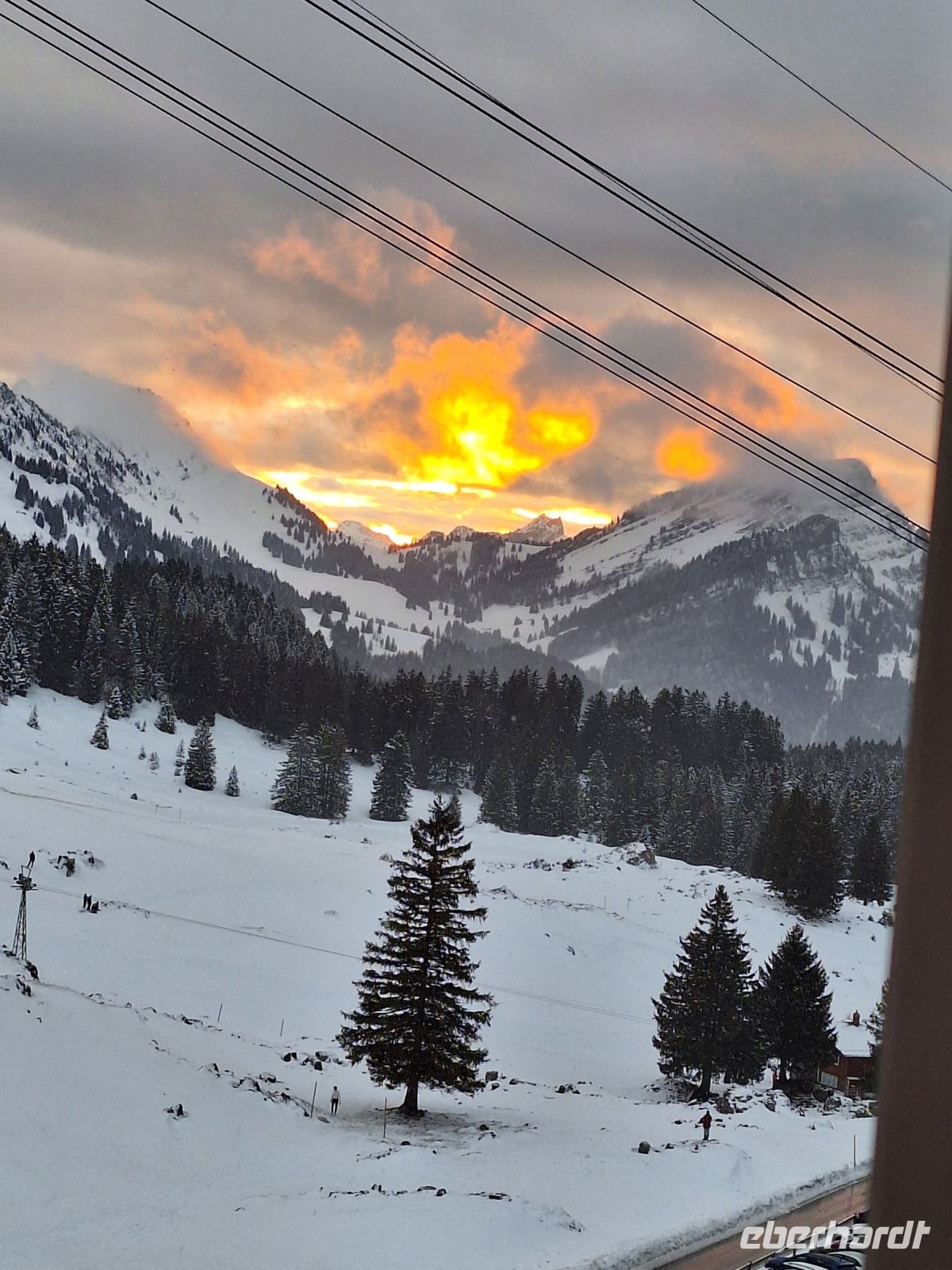 Den Neujahrstag starten wir gemütlich mit einem späten Frühstück. Gut gestärkt fahren wir im Sonnenschein nach Stein. In der Appenzeller-Schaukäserei erwarten uns interessante Geschichten über das Appenzellerland und dessen Bräuche. Natürlich interessiert uns, wie der wohlschmeckende Appenzeller Käse hergestellt wird. Wir schauen in die Produktionshalle und in den Käsekeller. Aber das Rezept für die geheime Sulz, mit der der Appenzeller Käse behandelt wird, damit er seinen typischen Geschmack erhält, bleibt ein wohlgehütetes Geheimnis. Wir verkosten die verschiedenen Käsesorten. Unser Bus bringt uns zur Schwägalp zurück. Bei unserer Rückkehr ist gutes Wetter und wir nutzen den Nachmittag wir ganz individuell. Einige spazieren auf dem Laternliweg durch den frisch verschneiten Wald und erfreuen sich an der schönen Winterlandschaft. Die Laternli-Bar lädt zum Genuss eines Glühweins oder Jagertees ein. Wir sehen noch den beginnenden Sonnenuntergang, der die Landschaft in ein ganz besonderes Licht taucht. Den Tag beenden wir wiederum mit einem ausgezeichneten Schweizer Menü.