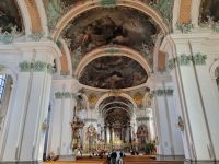 Das Wetter hatte uns gleich am ersten Morgen auf der Schwägalp nicht im Stich gelassen und wir starteten somit gut gelaunt in den Tag. Bei bester Sicht fuhren wir bereits früh am Morgen mit der Säntis-Schwebebahn zur Bergstation des gleichnamigen Gipfels. Nach nur etwa 10 Minuten Fahrt erreichten wir eine Höhe von ca. 2.500 Metern und damit auch den Endpunkt unserer Fahrt. Im Panoramarestaurant genossen wir zunächst ein ganz besonderes Frühstück, wobei man sich kaum auf das Essen konzentrieren konnte, denn die Aussicht war grandios, welche sich uns direkt vor unserem "Frühstückstisch" ergab. Danach hatte jeder von uns die Möglichkeit, die einzelnen Aussichtspunkte auf dem Säntis zu besuchen. Nach diesem traumhaften Start in den Tag unternahmen wir einen Ausflug in das nur etwa 35 Kilometer entfernte St. Gallen. Die Stadt liegt südwestlich vom Bodensee in einem schmalen Hochtal der Voralpen und ist sowohl der wirtschaftliche Mittelpunkt als auch das kulturelle Zentrum der Nordostschweiz. Im 7. Jahrhundert gründete hier der irische Wandermönch Gallus eine Einsiedelei. Aus dieser entstand dann Anfang des 8. Jahrhunderts ein Kloster und bald darauf unter dem Abt Otmar die Benediktinerabtei, die vom 9. bis zum 11. Jahrhundert eine Hochblüte erlebte und durch Schule und Bibliothek zu einem der kulturellen Höhepunkte nördlich der Alpen wurde. Aus einer