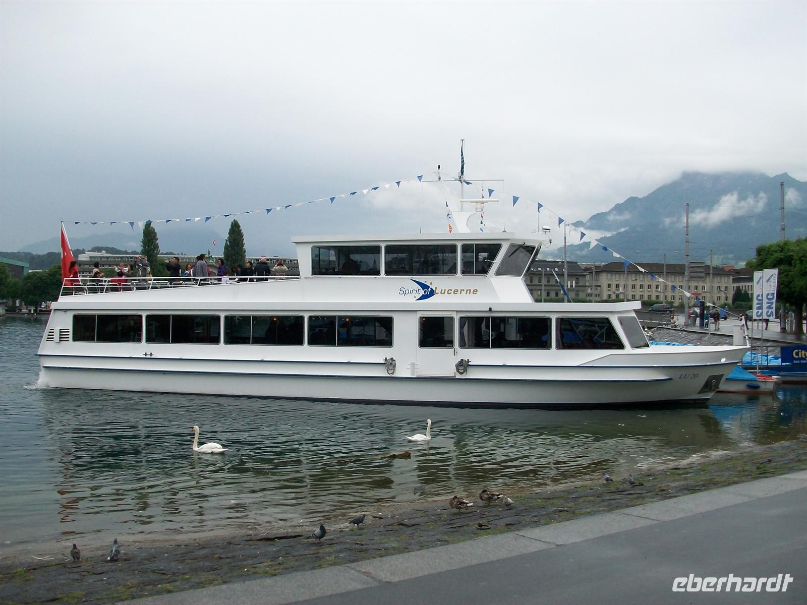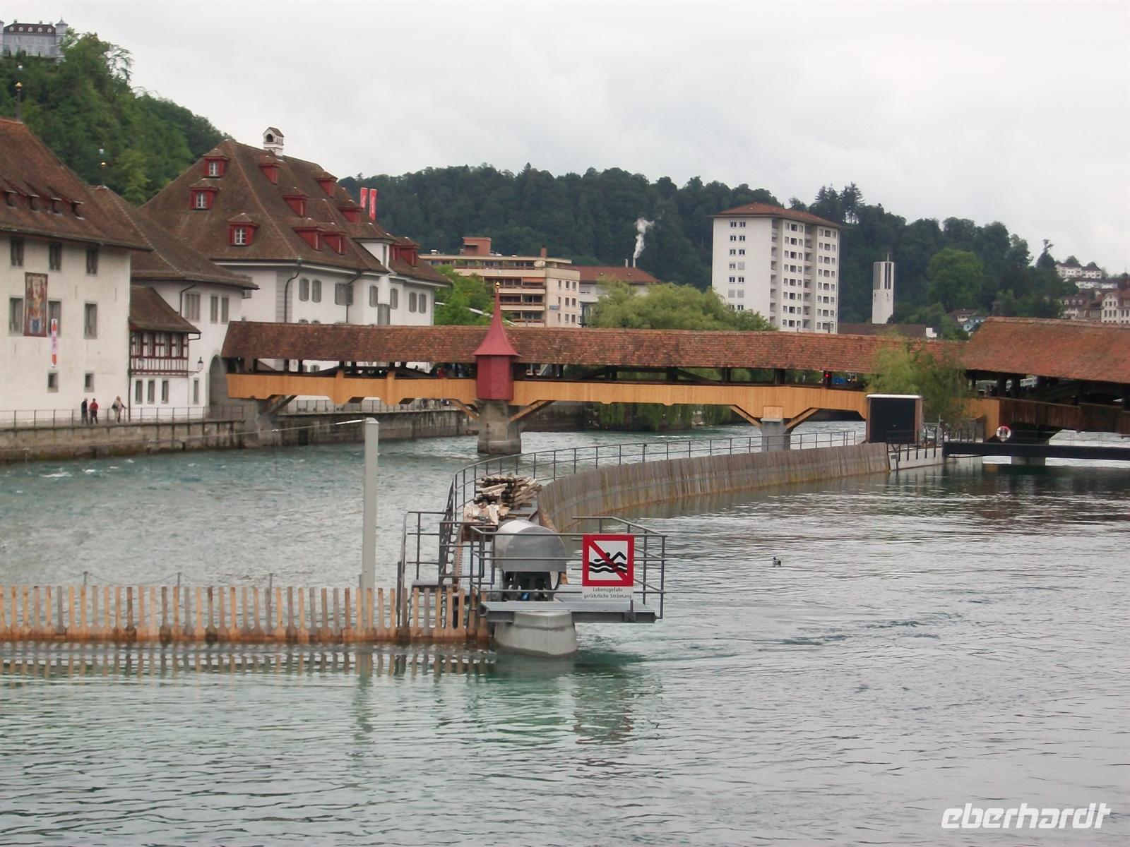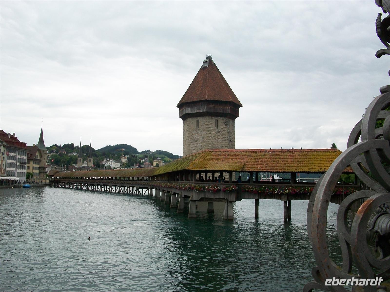 dann gegen halb neun schon unterwegs in Richtung Luzern. Die Berge haben sich hinter den Wolken versteckt, bald taucht auf unserer rechten Seite der Vierwaldstätter See auf an dessen Westende die Stadt Luzern liegt. Diesen reizvollen Ort werden wir später kennenlernen, jetzt steht erst einmal ein besonderes Ereignis auf dem Programm: eine Schifffahrt auf dem Vierwaldstätter See. Unser Schiff liegt schon für uns bereit, das nette Team begrüßt uns und 9.30 Uhr geht die etwa einstündige Fahrt los. Über den Bordlautsprecher erfahren wir interessante Einzelheiten über den See und die Orte die an ihm liegen. Spielt doch dieser See, der im Herzen der Schweiz liegt, in der Geschichte dieses Landes eine wichtige Rolle. Es ist eine ruhige und schöne Fahrt auf diesen Wassern, sie endet gegen 10.30 Uhr. Schon an der Anlegestelle erwartet uns die Stadtführerin die uns in den nächsten knapp zwei Stunden Luzern näher bringen wird. Zählt doch das Stadtbild mit zu dem schönsten Europas und trotz des trüben Wetters wird der Rundgang zum Genuss. Wir erfahren viel über die wechselvolle Geschichte, überqueren die mit schönem Blumenschmuck versehene Kapellbrücke und langen an deren anderen Ende an der
