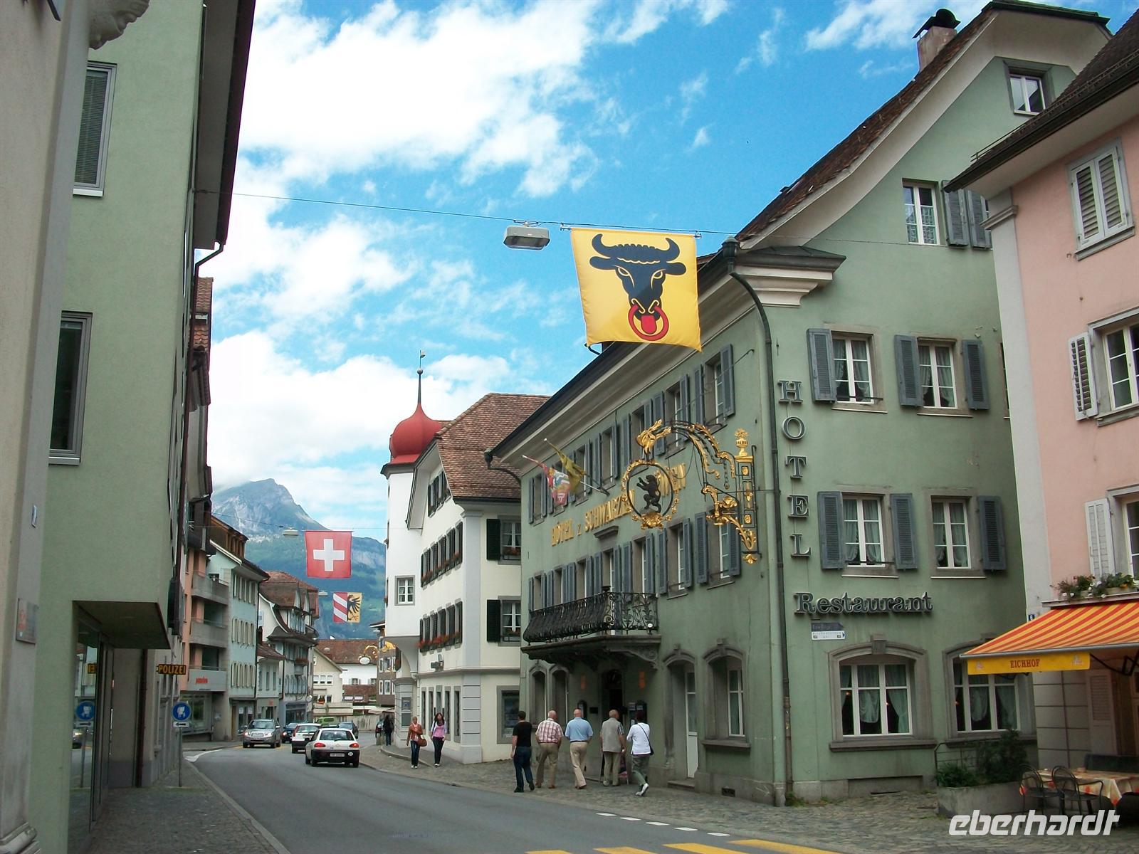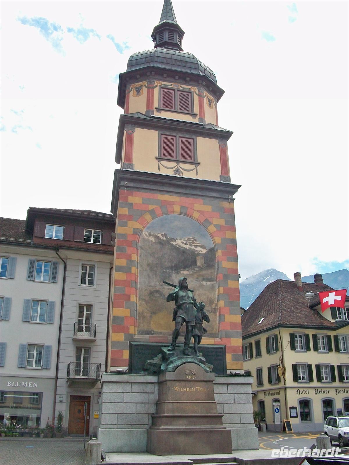 Doch dann geht es schon weiter, unser nächstes Ziel heißt Altdorf. Es ist die Kantonshauptstadt von Uri und Schauplatz der berühmten Apfelschussszene Tells. Natürlich darf der Besuch dieses wichtigen Ortes nicht fehlen; hier hat man Tell ein schönes Denkmal gebaut und den Besucher erfreut ein schönes Ortsbild. Unsere Gäste erkunden individuell die Stadt, später sind wir dann unterwegs nach Bürgeln, dem für heute letzten Ort auf der Spurensuche des berühmten Schweizers.