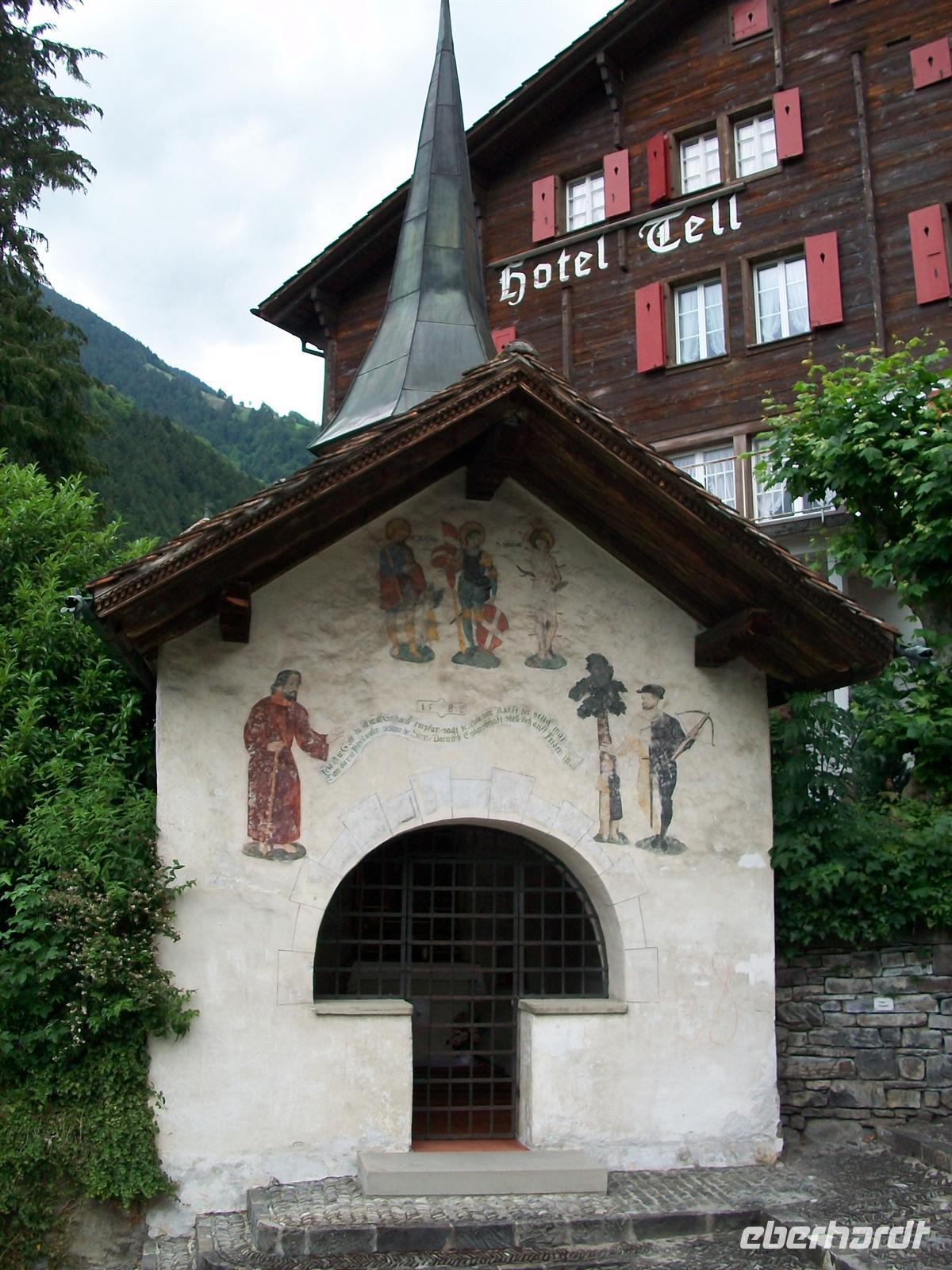 hier geboren wurde, über seine Zeit und die Menschen die seine Zeitgenossen waren. Legenden verweben sich mit realer Geschichte, dieser Mix fasziniert den Interessierten und etwas nachdenklich verlassen wir das Museum. Es bleibt noch Zeit einen Abstecher zur nahen Tellkapelle zu unternehmen, der Kirche, dem Friedhof und dem Beinhaus einen Besuch abzustatten und schließlich sind wir dann gegen 15.00 Uhr wieder unterwegs zum Hotel. Dieser Tag hat uns alle etwas klüger gemacht, wir haben viel gelernt über die Geschichte der Schweiz, die ohne die Wirkung von Wilhelm Tell wohl ganz anders verlaufen wäre…