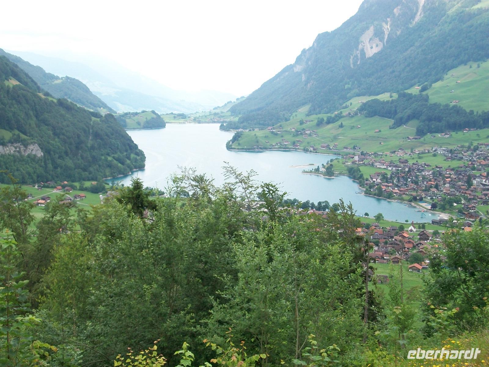 kleines Trostpflaster noch einen Abstecher ins Berner Oberland zu unternehmen. Unser Weg führt uns hinauf zum Brünigpass und von hier hinunter zum Brienzer See. Hier ist nun doch etwas besseres Wetter und somit umrunden wir diesen eindrucksvollen See, durchfahren den reizvollen Ort Brienz der bekannt ist durch die zahlreichen Holzschnitzereien. Diese schöne Fahrt bei passablem Wetter entschädigt nun doch etwas für das Trübe des Vormittages und gegen halb fünf erreichen wir unser Hotel in Giswil.