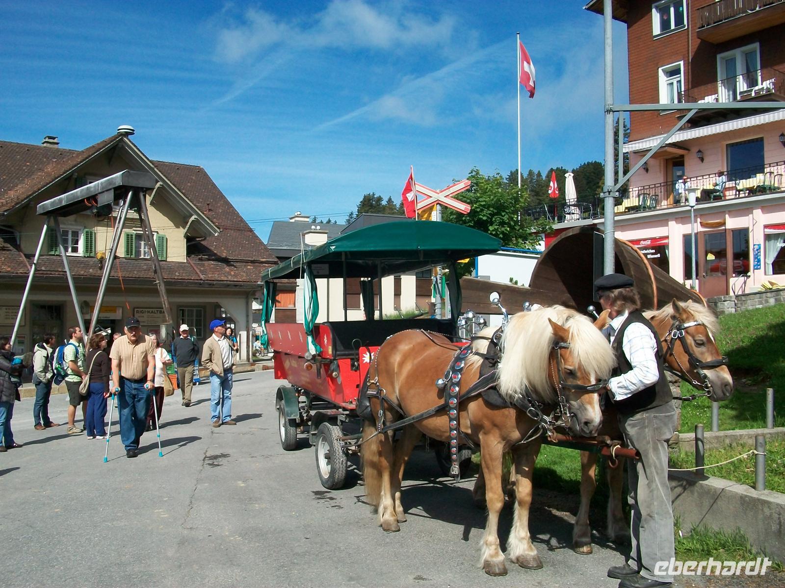 Die Fahrt führt uns nach Küssnacht zur Hohlen Gasse und an diesem Ort begegnen wir unserem alten Bekannten Wilhelm Tell wieder. Schiller legt hier dem Helden die Worte in den Mund: „ “, was auch 1307 der Fall war; der habsburgische Landvogt Gessner ließ nach diesen Worten an diesem Ort sein Leben. Durch diese hohle Gasse gingen auch wir um danach zum Hotel zurückzukehren, noch etwas Zeit um vor dem Abendessen durch den Ort Giswil einen kleinen letzten Bummel zu unternehmen. Denn morgen heißt es nun schon leider von hier Abschied nehmen, wie schnell doch die Zeit verging…