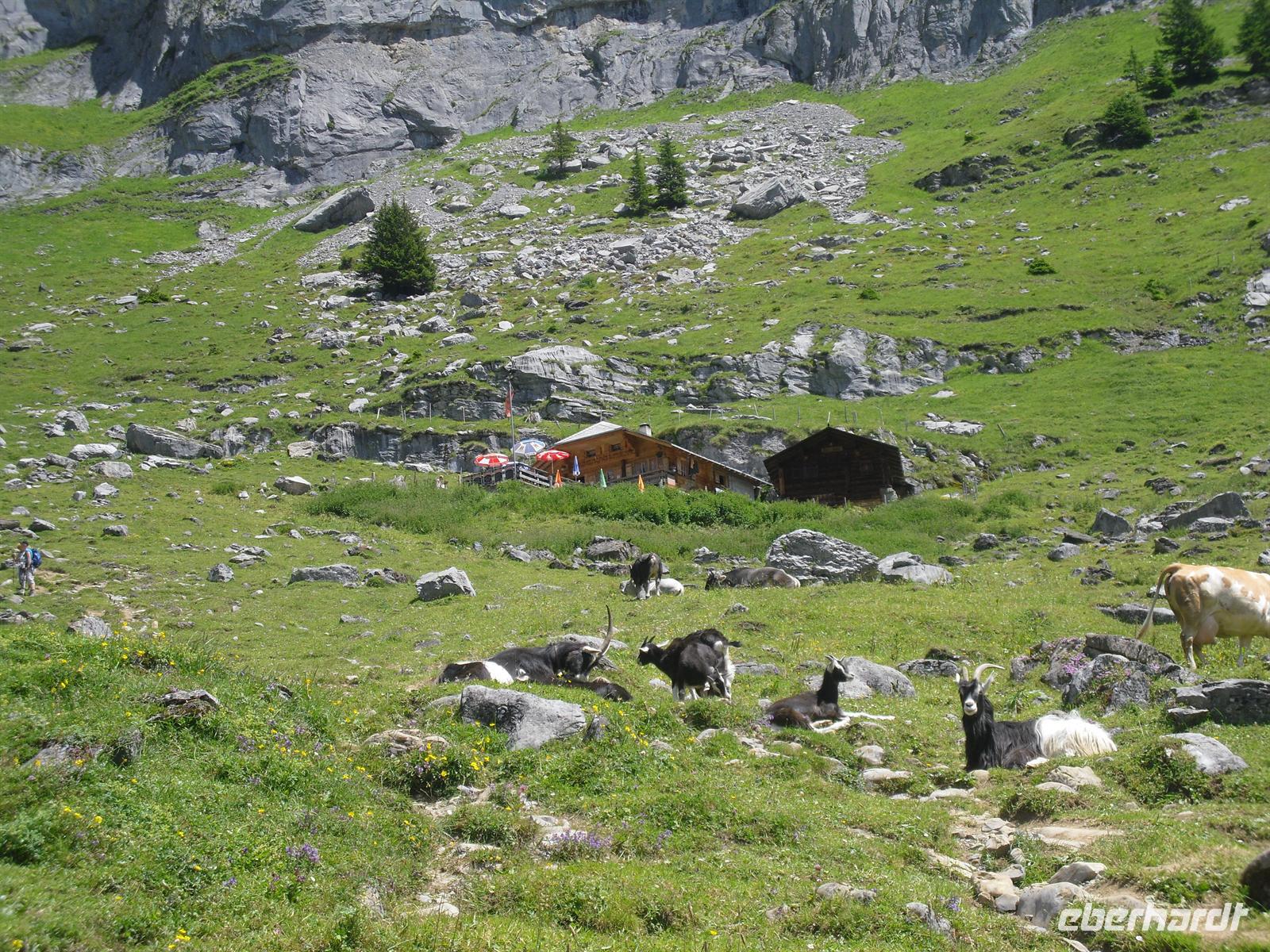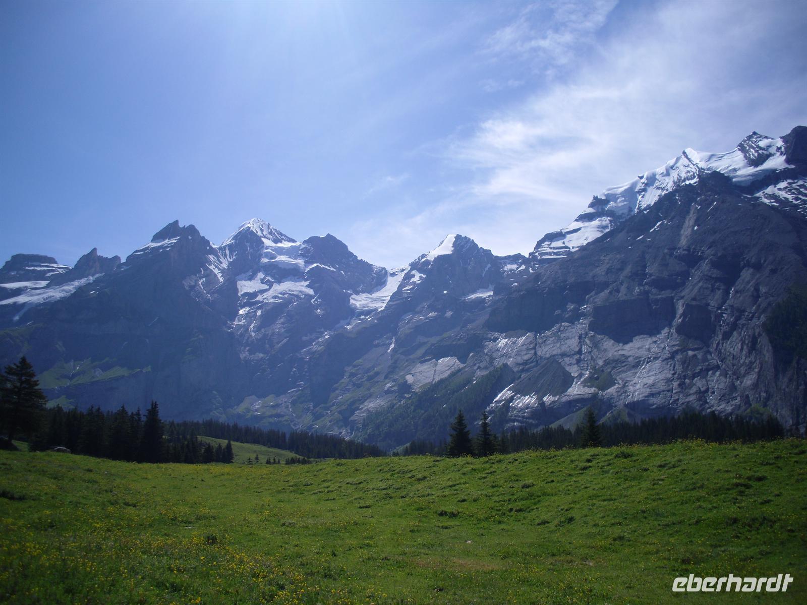 Der heutige Tag steht für Erholung und Entspannung! Das Wetter ist wieder mal phantastisch. Wir treffen uns alle erst gegen 10.30 Uhr und spazieren gemeinsam zur Talstation der Oeschinen-Bahn.