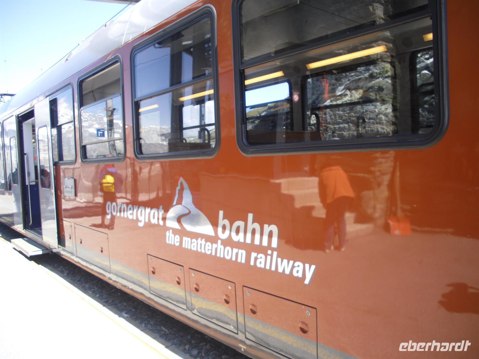 Am Morgen spazieren wir gemeinsam zum Bahnhof von Kandersteg und steigen schließlich in einen Zug der Lötschbergbahn nach Brig - unser Bus steht nach wie vor dort. Nach etwa 40 Minuten kommen wir an und unser Buschauffeur Thoralf erwartet uns bereits mit dem Bus am Bahnhof in Brig. Jetzt fahren wir weiter in Richtung Zermatt.