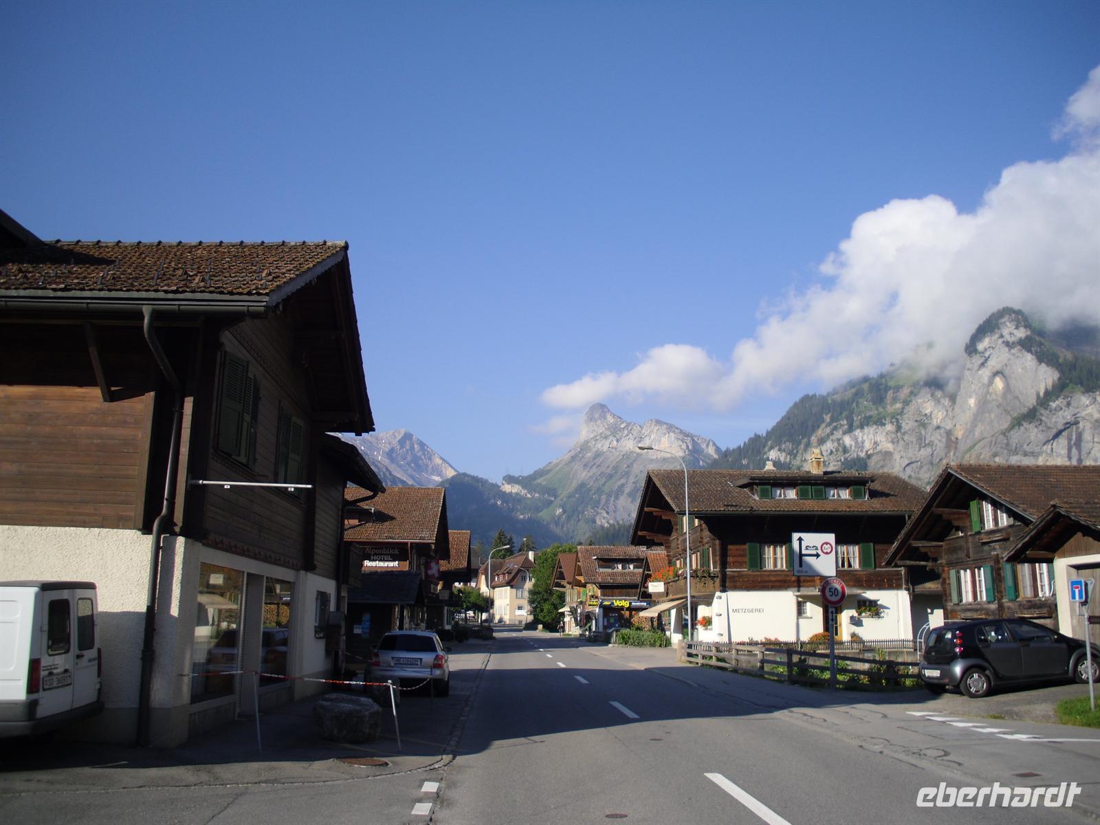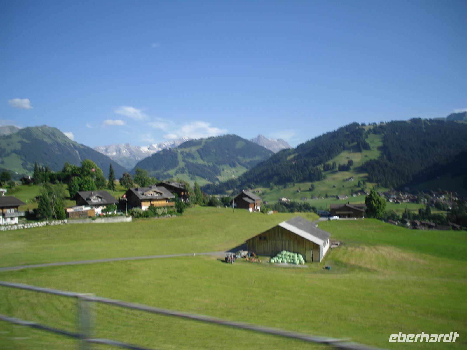 Einige Gäste bummeln übrigens auch durch den Ort Zermatt, hier gibt es schließlich auch eine Menge zu entdecken. Sehenswert sind vor allem die Häuser im Ortsteil Alt-Zermatt; etliche der alten Häuser stehen auf runden Steinplatten, um besonders Mäuse und Ratten abzuhalten. Nach einem Bummel auf der Bahnhofstrasse nehmen wir den Pendelzug zurück nach Täsch. Dort erwartet uns direkt am Bahnhof unser Bus und wir fahren zurück ins Rhonetal. Der Rhone-Fluss ist die Lebensader des Schweizer Kantons Wallis. Besonders die landschaftlichen Gegensätze machen das Rhonetal so reizvoll. Es ist vor allem bekannt für den intensiven Weinbau. Schweizer Weine werden übrigens zum Grossteil in der Schweiz getrunken; nur 1-2 % der in der Schweiz erzeugten Weine werden exportiert. Bei Aigle verlassen wir schließlich das Rhonetal und fahren über den 1.445 Meter hohen Passübergang des Col des Mosses. Die regional recht bedeutende Passstrasse verbindet das Rhonetal mit dem Pays d´Enhaut. Auch überregional wird die Verbindung oft genutzt, um vom Unterwallis ins Berner Oberland zu gelangen. Die Fahrstrasse über den Col des Mosses wurde 1868 erbaut, und ab 1869 verkehrte ein Pferdepostkurs über den Pass. Weiter geht es nun durch das Saanenland und das Simmental zurück nach Kandersteg.
