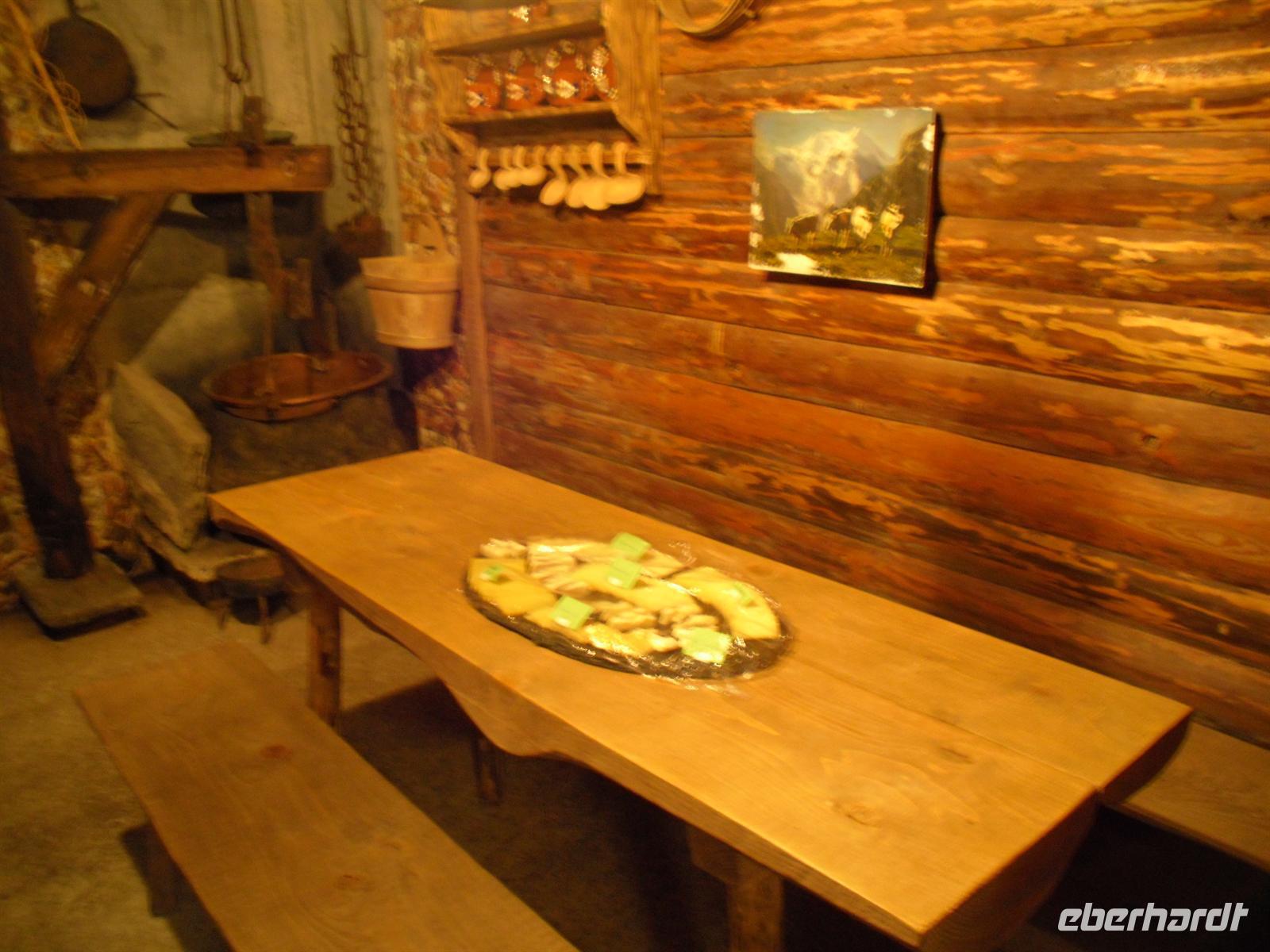 Zuerst besuchen wir heute den Käsekeller in Kandersteg. Hier lagert der von den Bauern des Ortes über das Jahr hergestellte Käse.