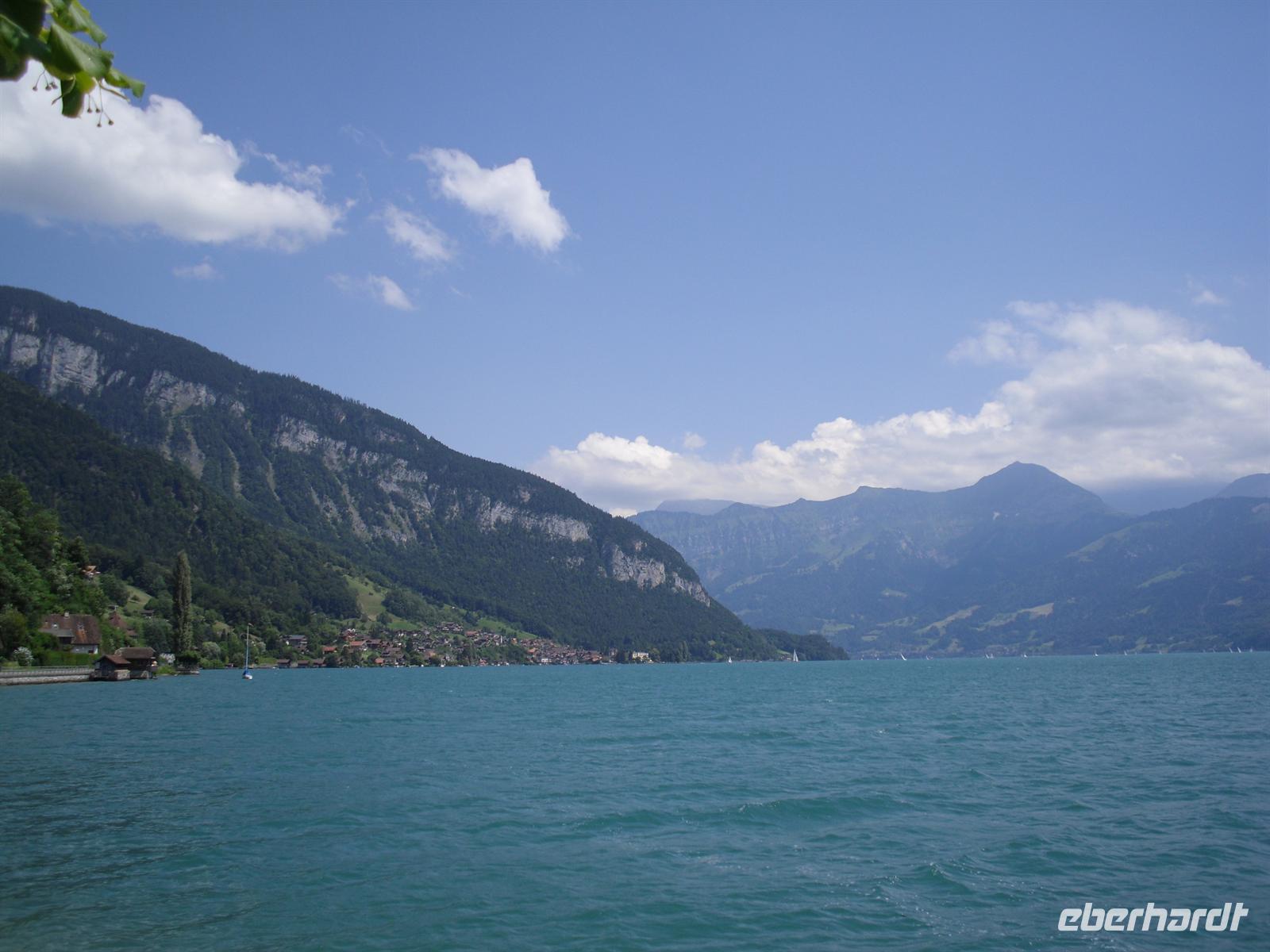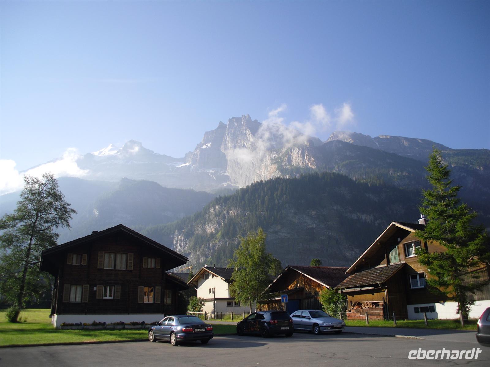 Unsere Stadtführerin nehmen wir in der Nähe des Bärenparks auf und schon kann unsere kleine Rundfahrt durch die Stadt beginnen. Einen ersten Stopp legen wir am Rosengarten ein - von hier aus bietet sich uns ein wunderbarer Blick auf das komplette Stadtbild von Bern. Wahrzeichen der Stadt ist der aus dem 12. Jahrhundert stammende „Zytgloggeturm“, einst Westtor der ersten Stadterweiterung. Die viel bestaunte astronomische Uhr mit Glockenspiel an seiner Ostseite setzt ihre Figurenschar kurz vor jeder vollen Stunde in Bewegung. Weiterhin sehen wir unter anderem das Münster, das Bundeshaus und das Konzerthaus. Nach etwa eineinhalb Stunden und einer Menge Informationen über die Stadt haben wir etwas Freizeit in der Innenstadt, die jeder individuell für sich gestalten kann. Am frühen Nachmittag verlassen wir Bern wieder und setzen unsere Fahrt auf der Norduferseite des Thuner Sees fort. Wir haben tolle Ausblicke auf den etwa 48 qkm großen See und machen sogar eine kleine Kaffeepause direkt am See. Kurz darauf erreichen wir Interlaken, wo man schon die majestätische Pracht der Bergwelt des Berner Oberlandes spüren kann. Vom Stadtzentrum aus kann man sogar mit etwas Glück die Jungfrauregion erblicken - die Jungfrau ist zwar heute nicht komplett zu sehen, aber immerhin... Am frühen Abend kommen wir mit vielen schönen Erlebnissen nach Kandersteg zurück und werden mit einem tollen 4-Gänge-Menü zum Abendessen im Hotel verwöhnt.
