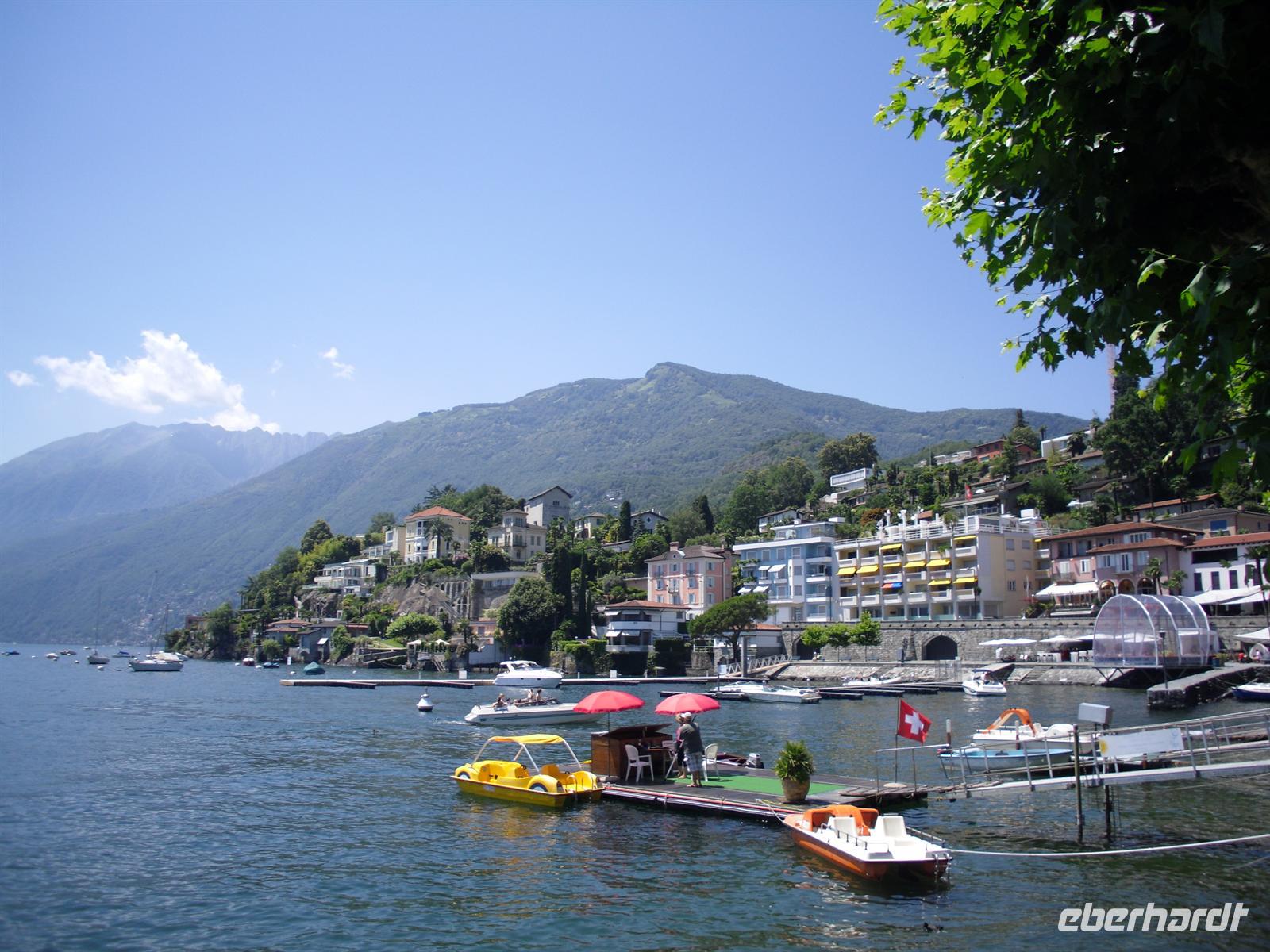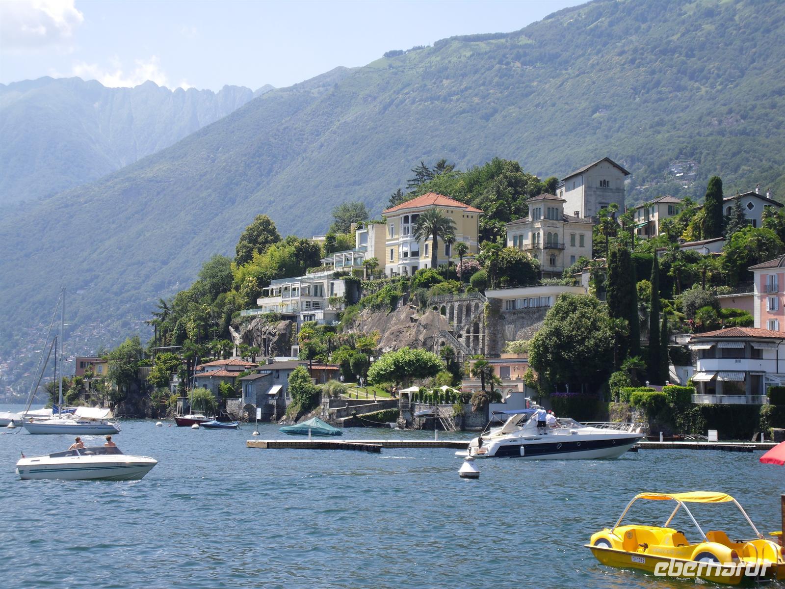Der Sankt Gotthard ist übrigens auch als der Wettermacher bekannt. Während man in Airolo mediterranes Wetter und italienisches Flair vorfindet, erlebt man im Norden das raue alpine Klima. Man durchquert eine herrliche Natur, wird vom Mythos des Gotthard beflügelt, und wenn man Glück hat, begegnet man sogar der uralten Postkutsche, die immer noch über den Pass fährt. Wir fahren nun weiter über Airolo und duch das Val Leventina bis Bellinzona, dem Hauptort des Kantons Tessin. Von hier aus ist es nunmehr nur noch ein Katzensprung bis zum Lago Maggiore. Unseren nächsten Aufenthalt legen wir in Ascona ein. Das neben dem größeren Locarno einst recht unscheinbare Fischerdorf hat heute 5.000 Einwohner und ist ebenso wie Locarno auf dem Schwemmlandkegel des Maggiadeltas erbaut. Es wurde erst durch Künstler und Intellektuelle, vor allem aus Deutschland, zu Beginn des 20. Jahrhunderts weltweit bekannt. Auf dem Monte Verità sammelten sich die Aussteiger und Weltverbesserer und verkündeten in einer einzigartigen Mischung freie Liebe, Vegetarismus, Anthroposophie, Anarchie und kommunistisches Gedankengut. Wir spazieren durch die hübsche Altstadt bis zum See und genießen so das mediterrane Flair des Lago Maggiores. Entlang der Westuferstrasse des Lago Maggiores erreichen wir kurz nach Brissago die Grenze zu Italien, denn der Großteil des Sees liegt auf italienischem Staatsgebiet. Über Cannobio und Verbania mit immer wieder reizenden Blicken auf den See kommen wir ins Ossola-Tal und in Richtung Simplon-Pass.